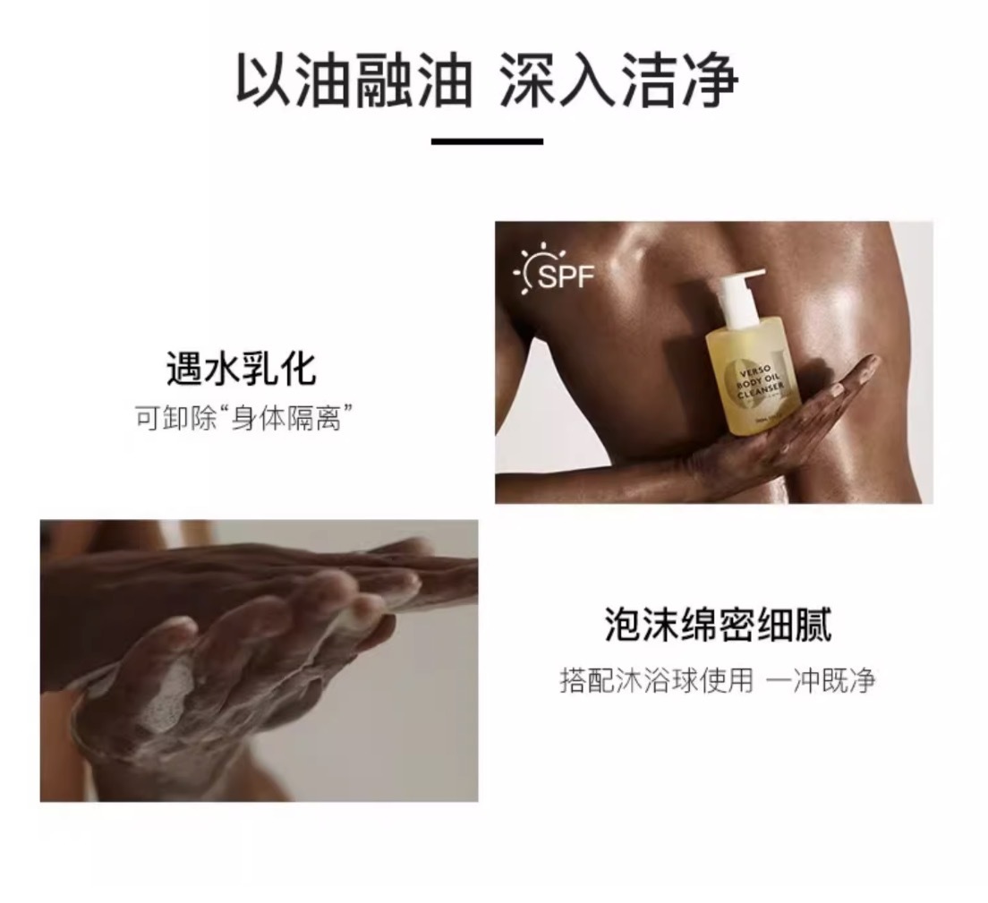 一瓶VERSO沐浴油=卸身体防晒+沐浴乳+身体乳