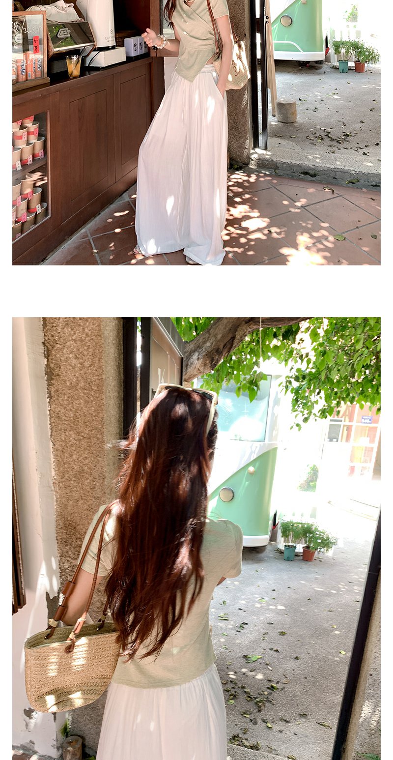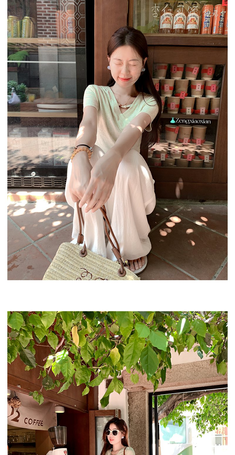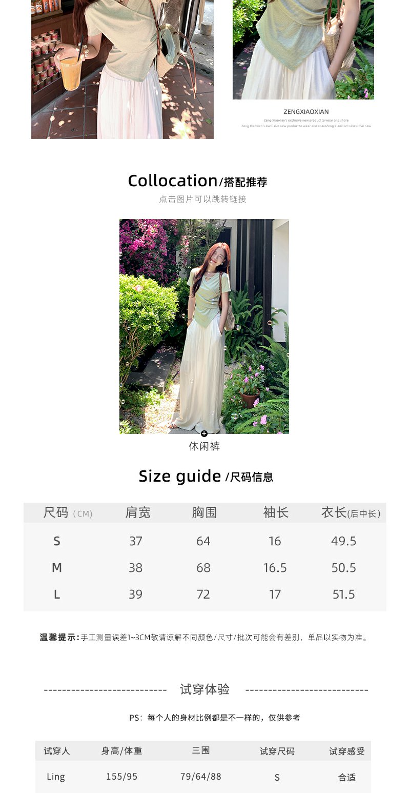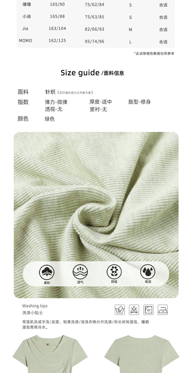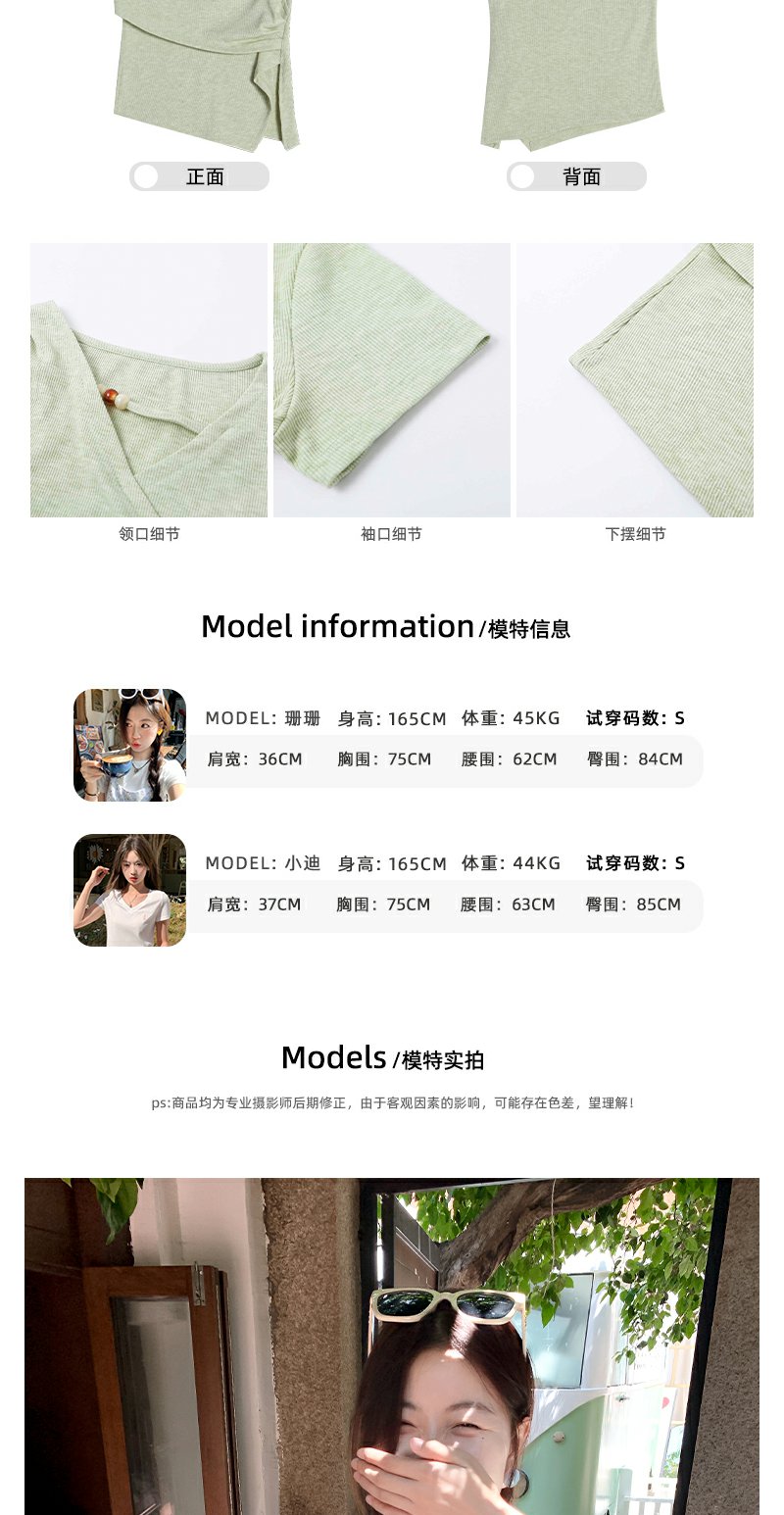 <曾小咸推荐>不规则绿色交叉v领收腰短袖T恤
