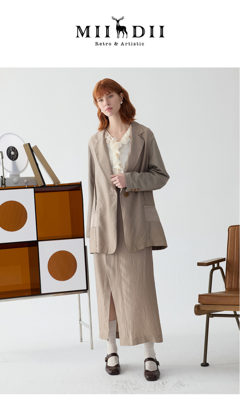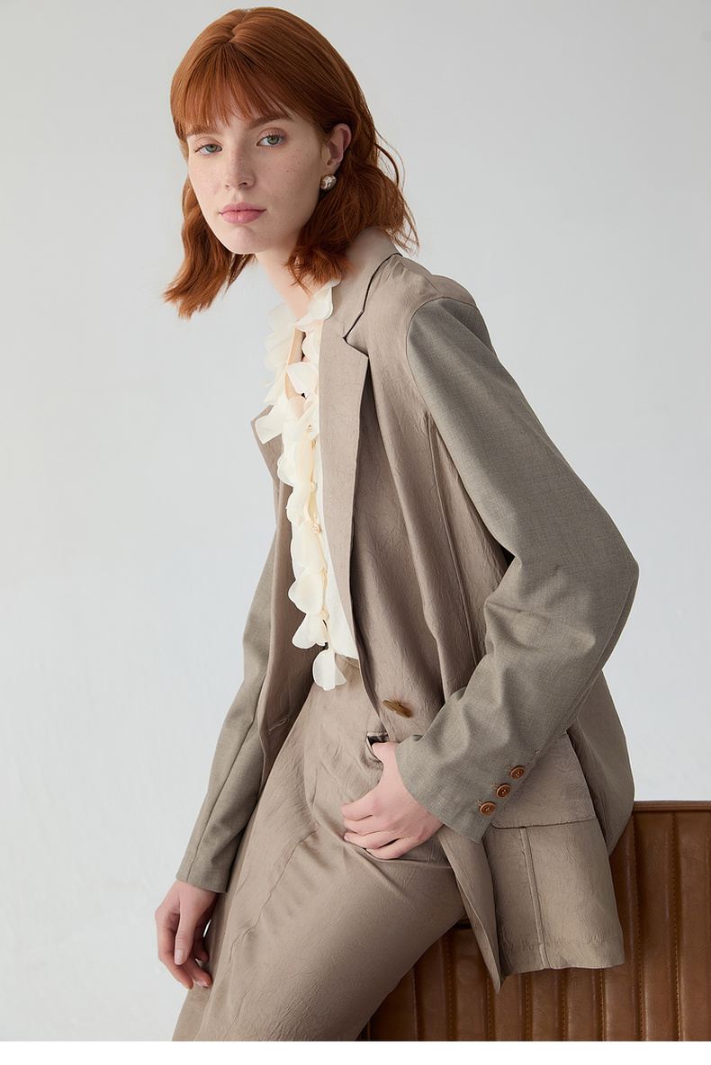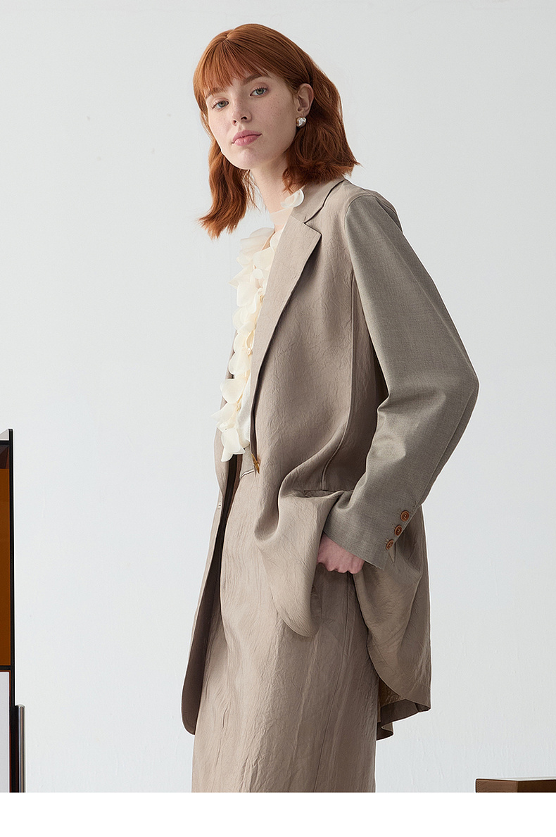 谜底西装外套女2025春季新品通勤风大廓形时尚醋纤西服251GW0110