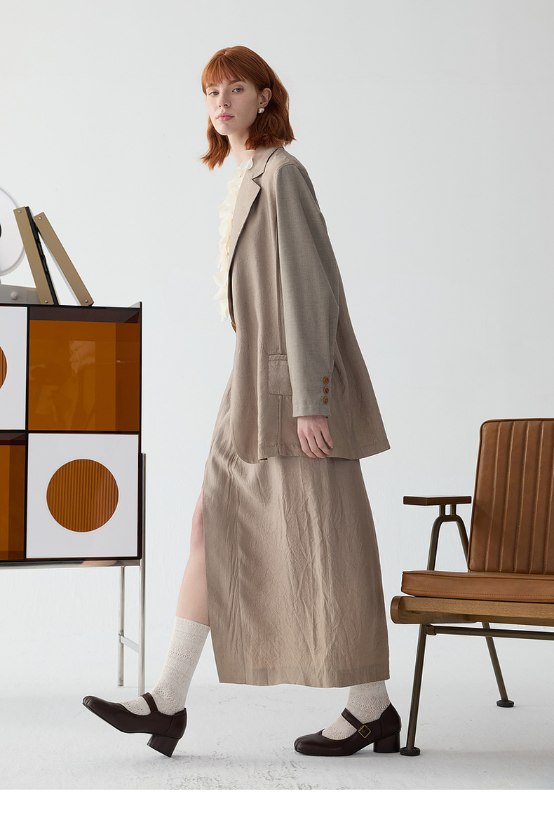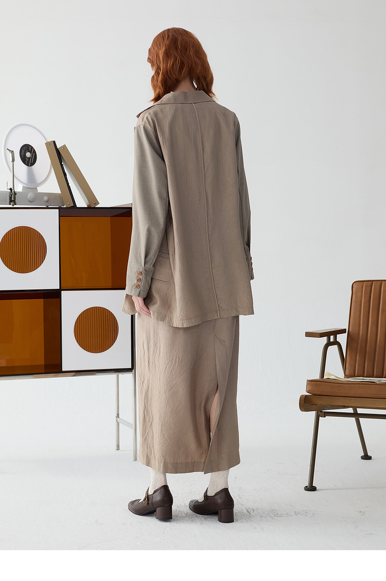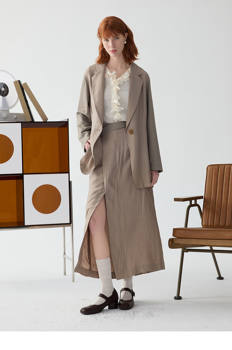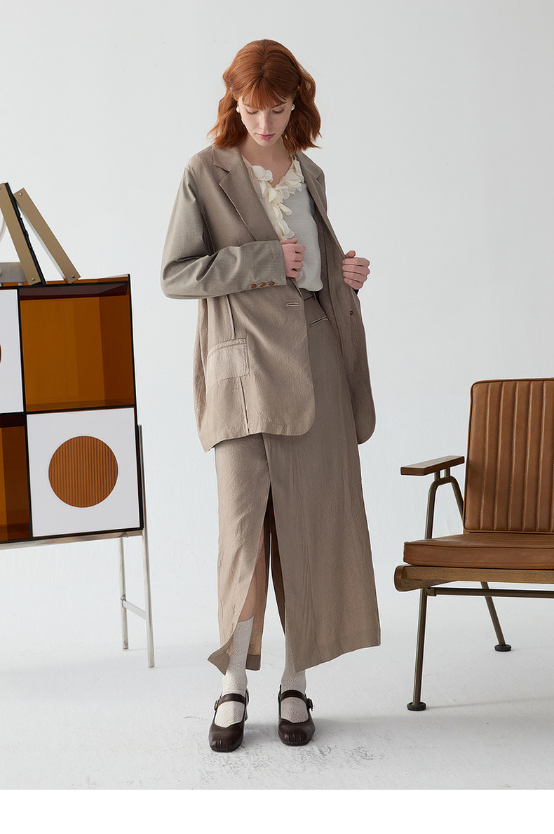 谜底西装外套女2025春季新品通勤风大廓形时尚醋纤西服251GW0110