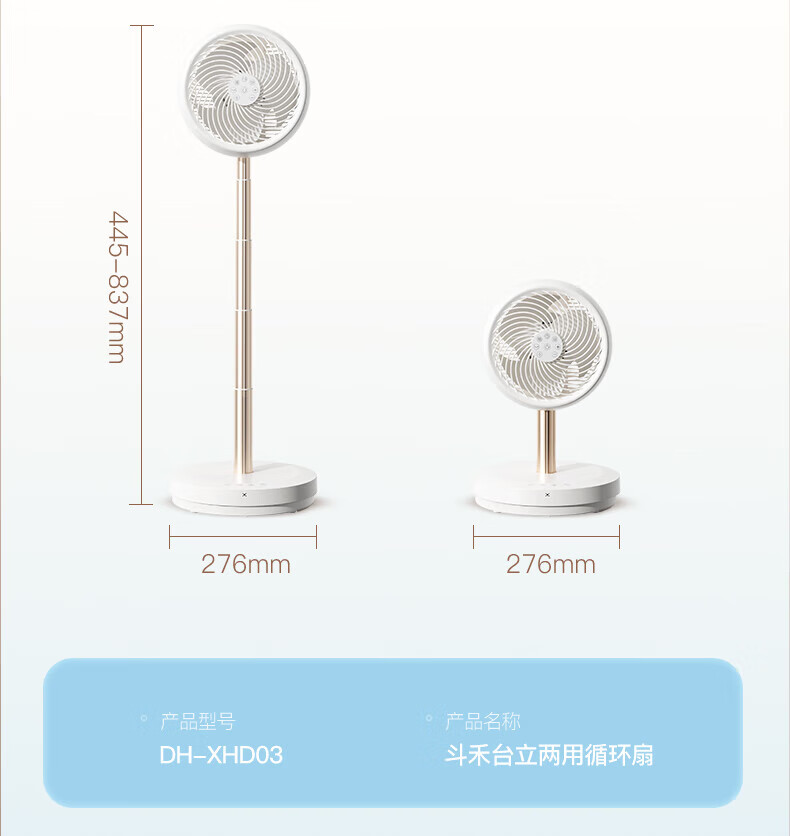 【小家电】斗禾空气循环扇家用大风量 台立两用落地扇 遥控式AI智能感温 母婴级静音电风扇XHD03白色 HF