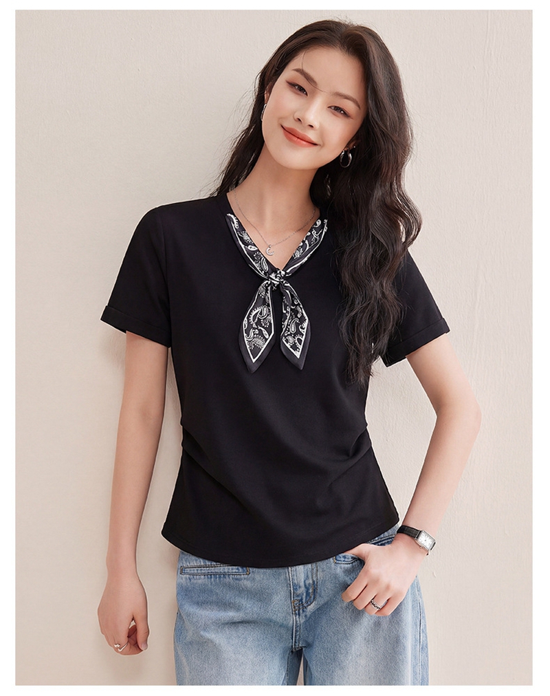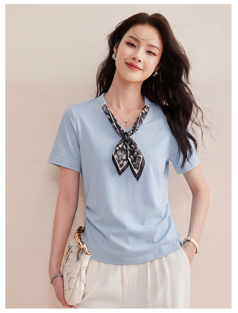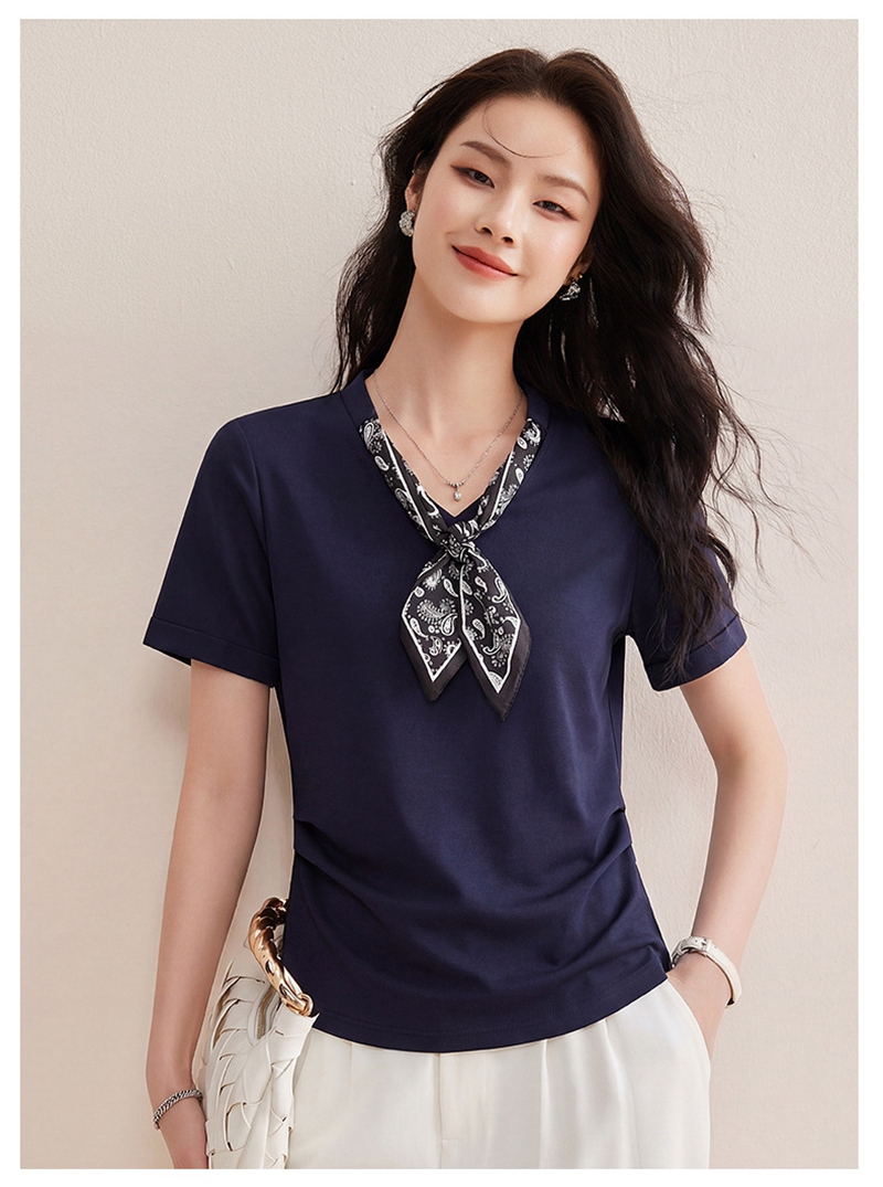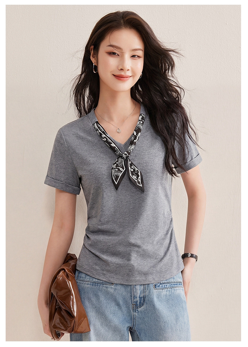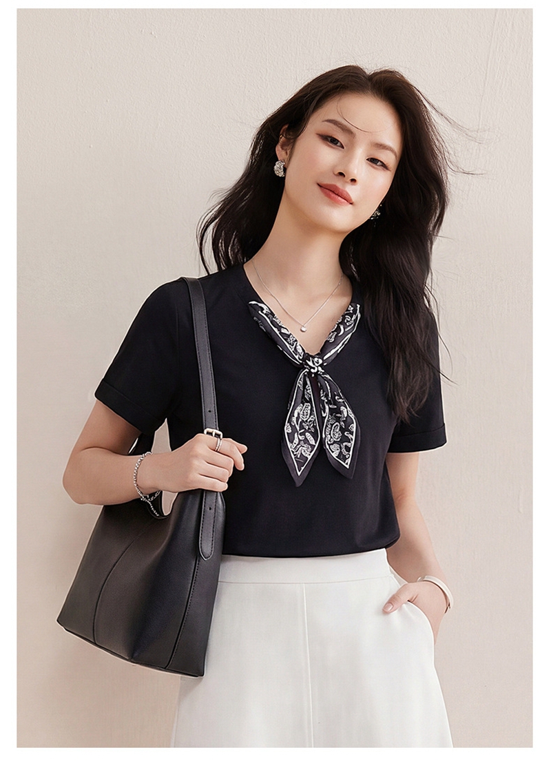 时尚圆领长袖鱼骨分割圆弧下摆T恤