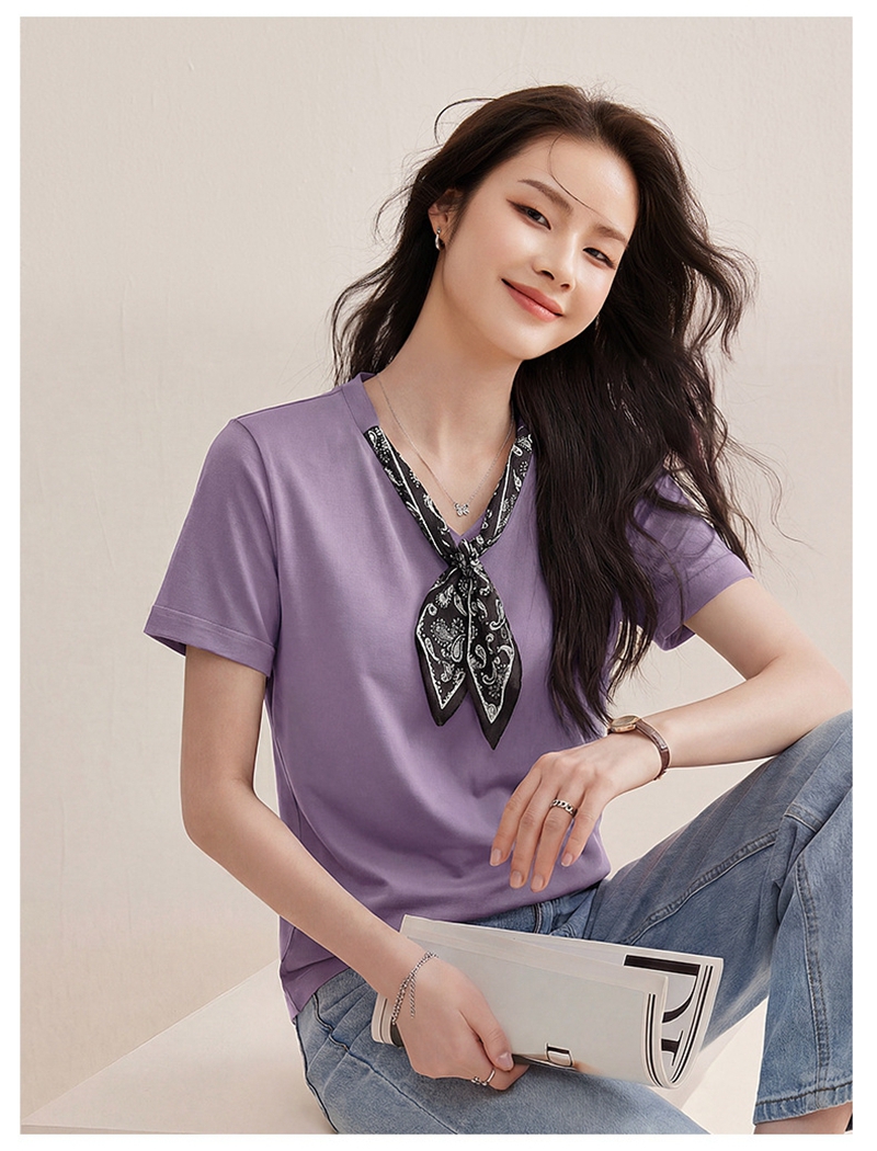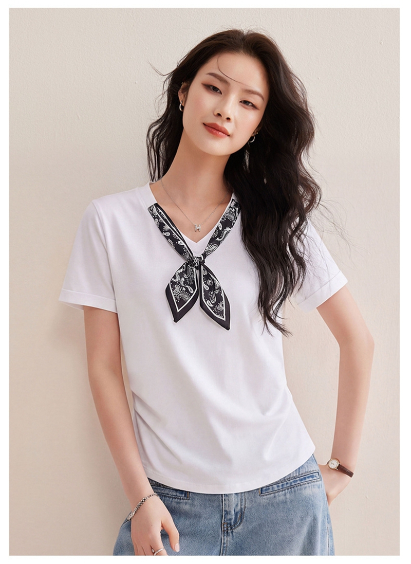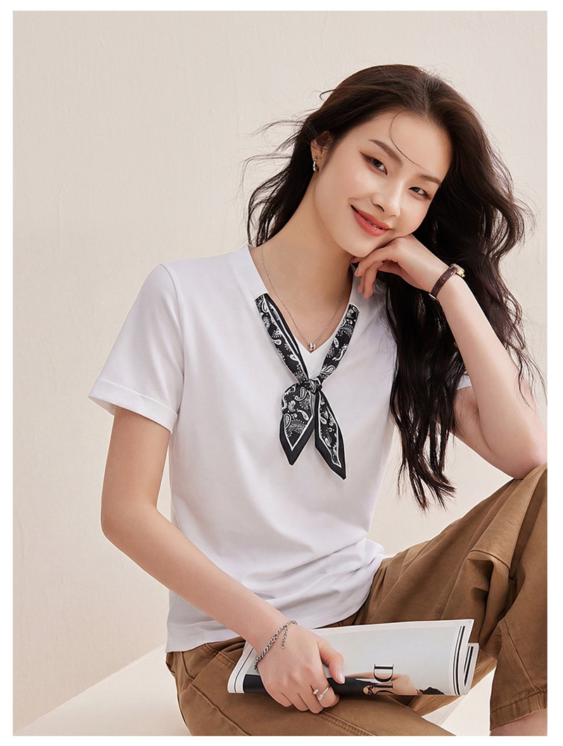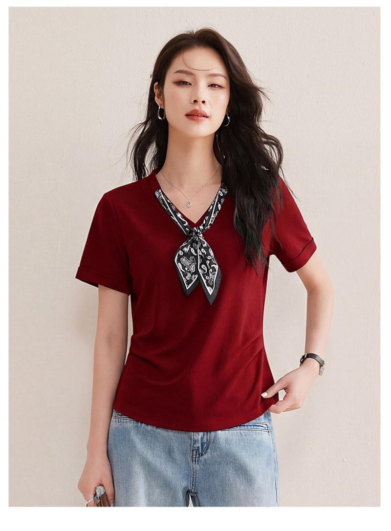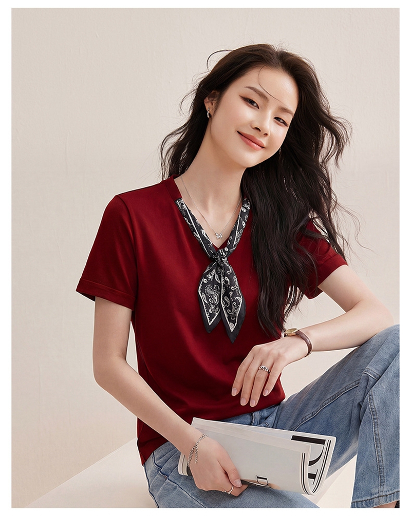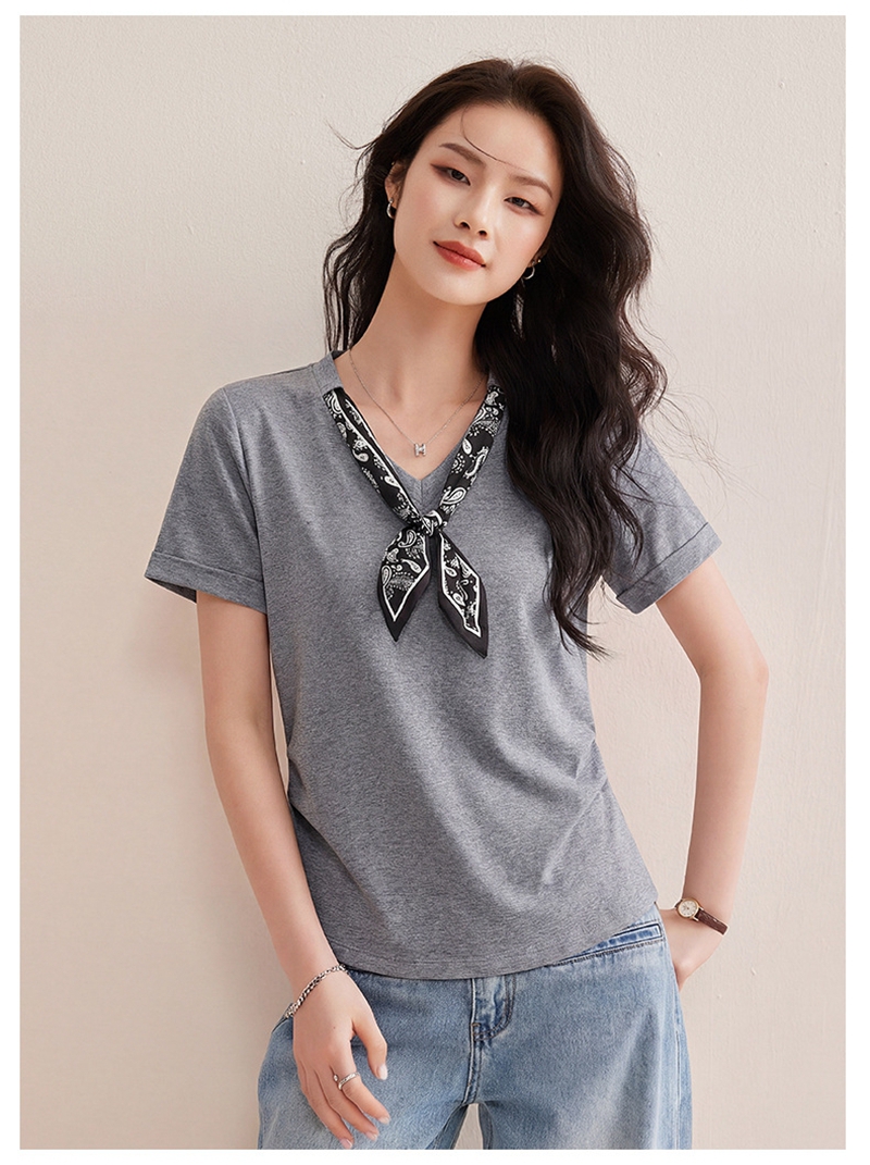 时尚圆领长袖鱼骨分割圆弧下摆T恤