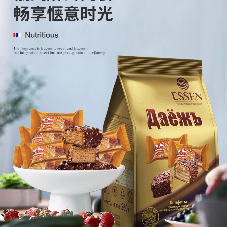 【中欧班列精选】俄罗斯进口新款阿孔特奥特焦糖巧克力拉丝饼干260g/袋