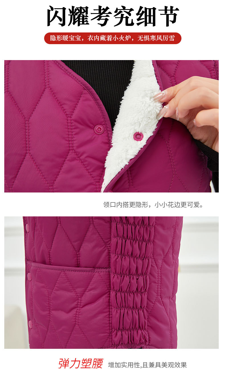 ✅️扣子和毛绒都做了加固,不会掉毛掉扣!马甲整体是修身的,侧边收腰包容性也强!既暖和又轻便,在北方穿到零下完全ok!
