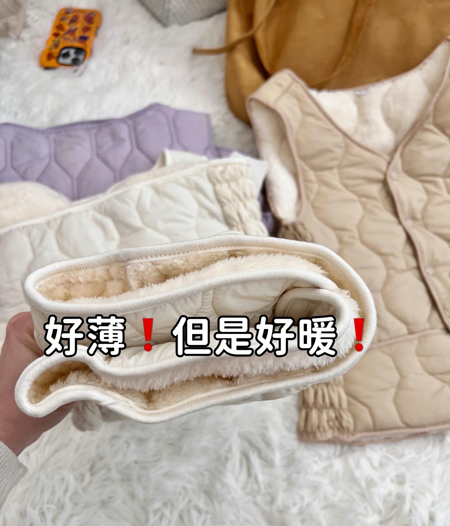 姐妹们,信我,这条羊羔绒的马甲,是羽绒棉填充,真的巨巨巨暖和!