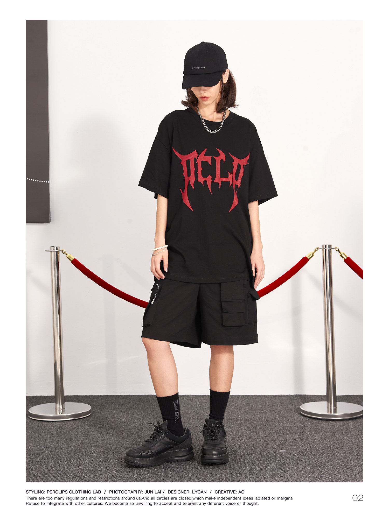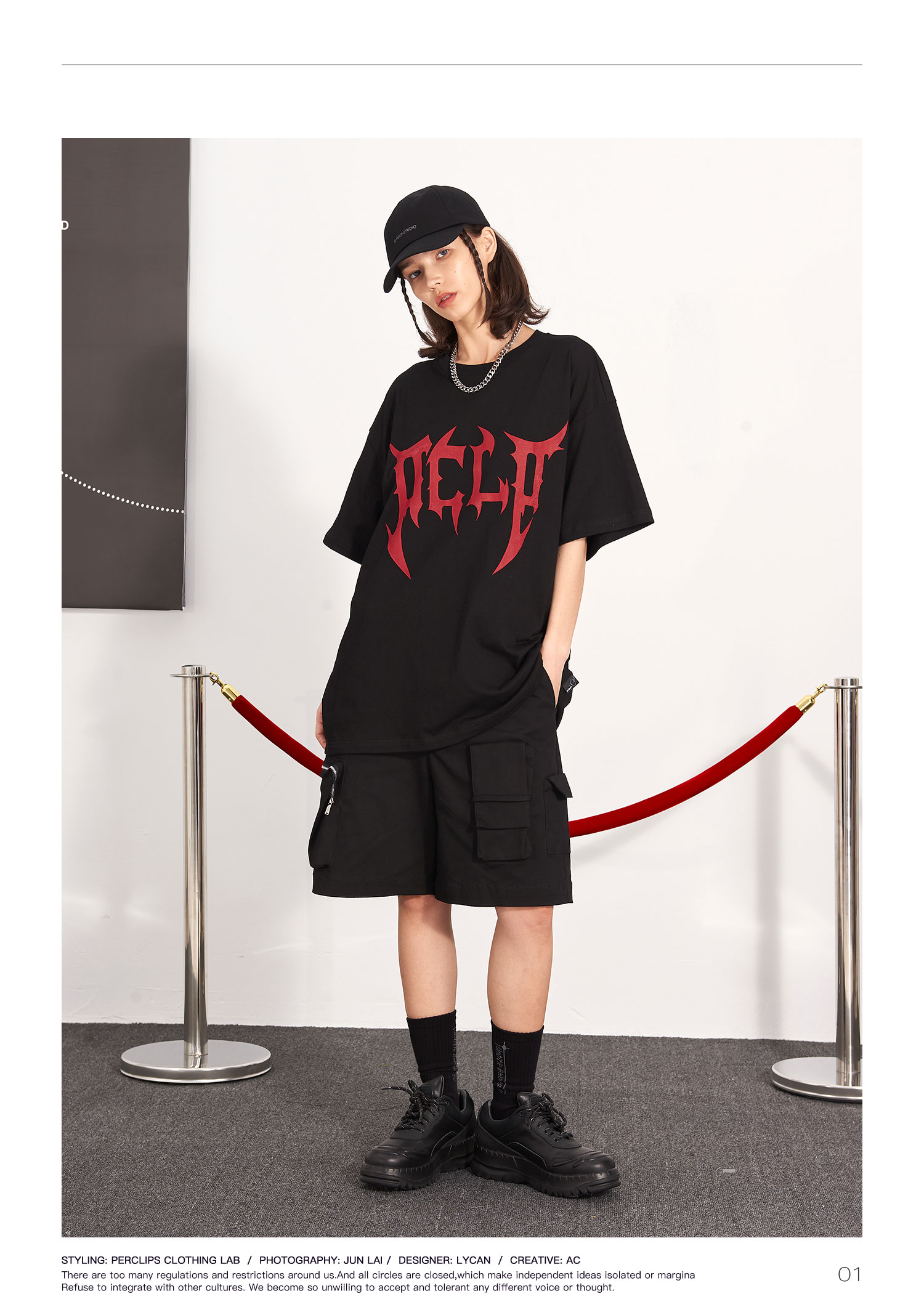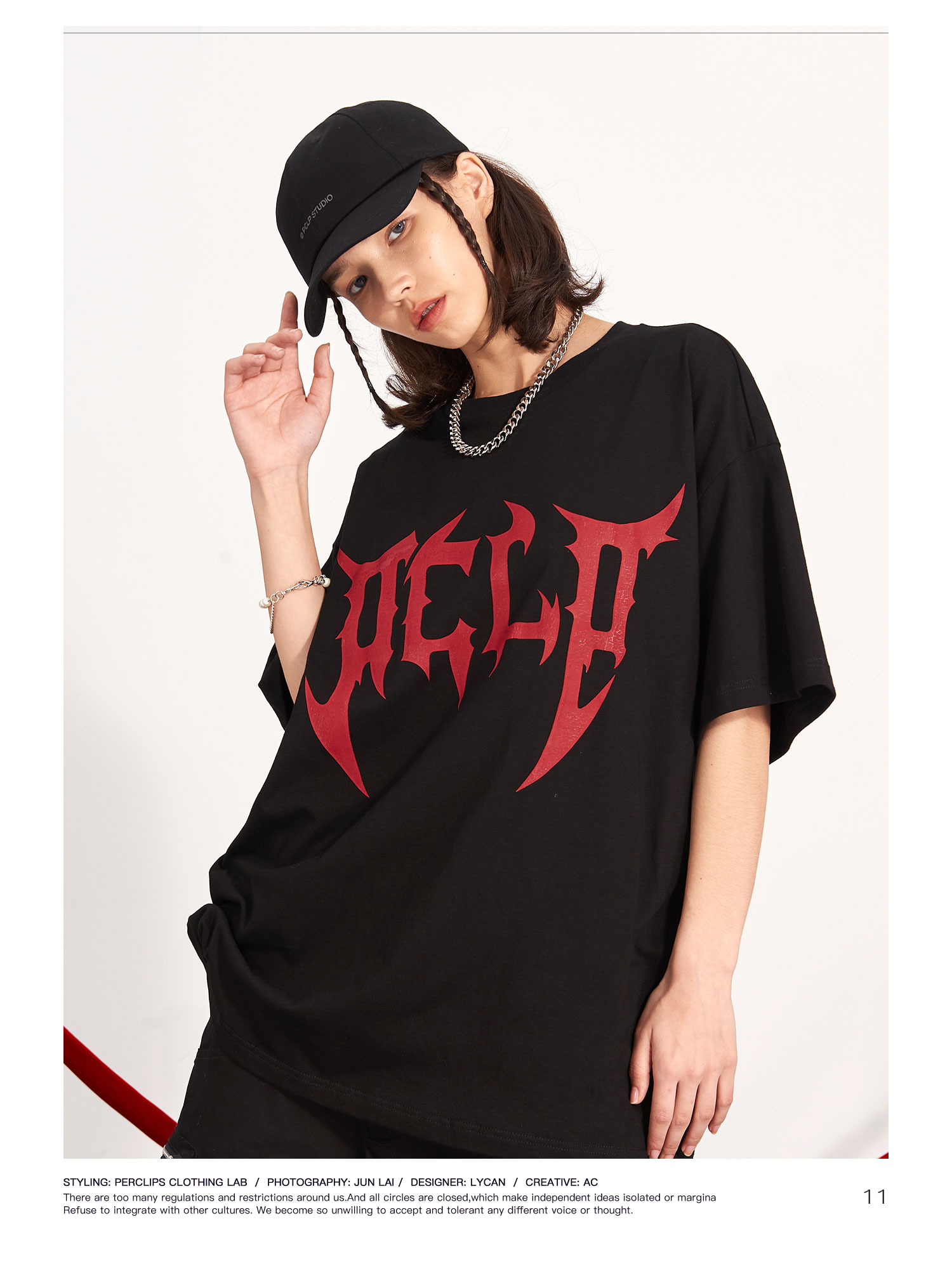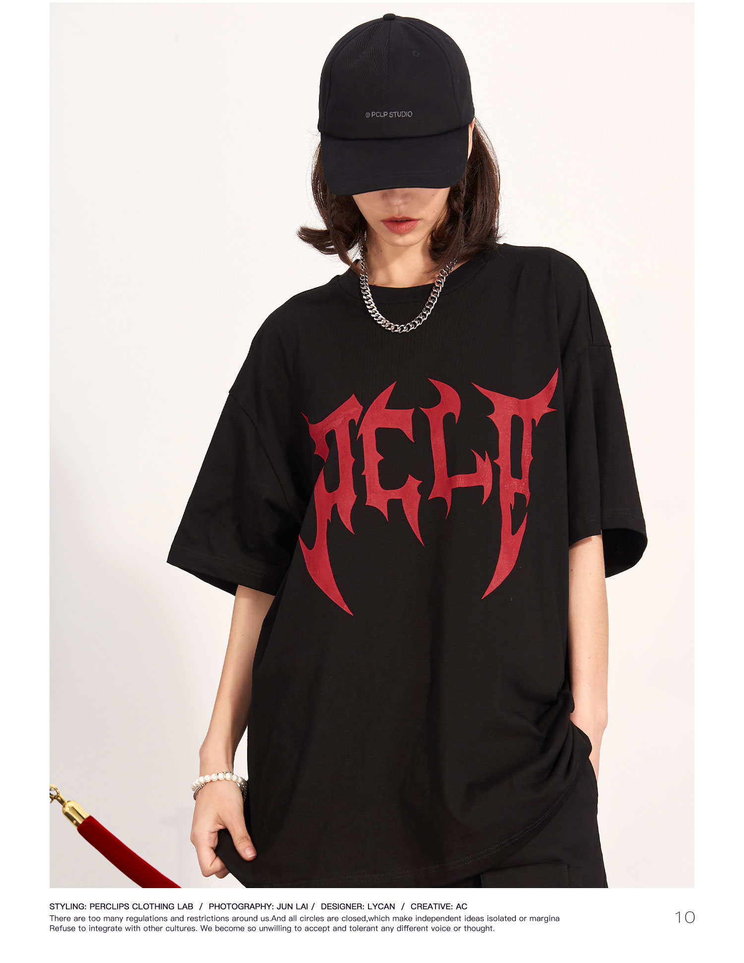 PCLP(PERCLIPS) 刀锋LOGO潮流印花短袖男国潮牌纯棉宽松半袖t恤男