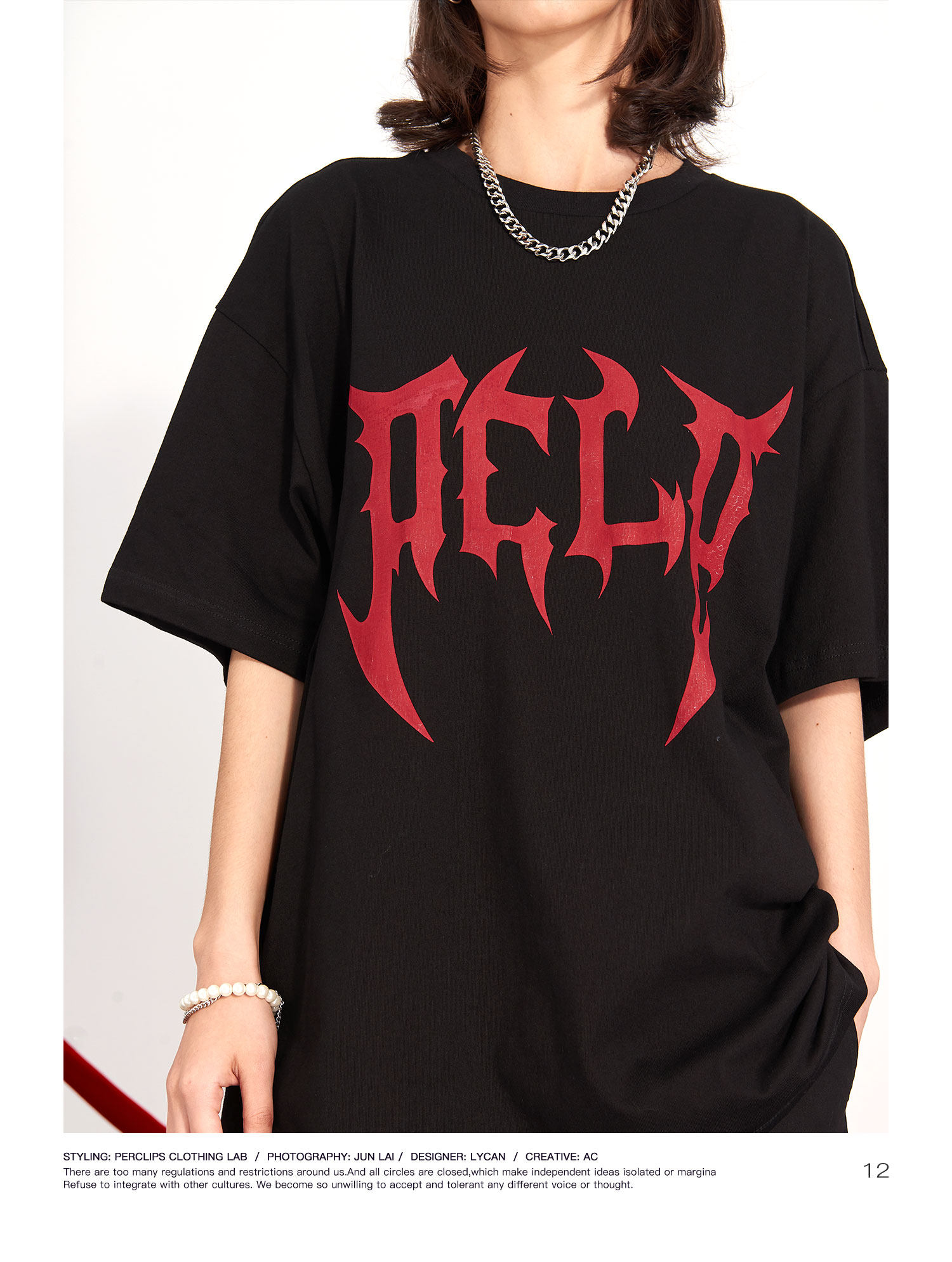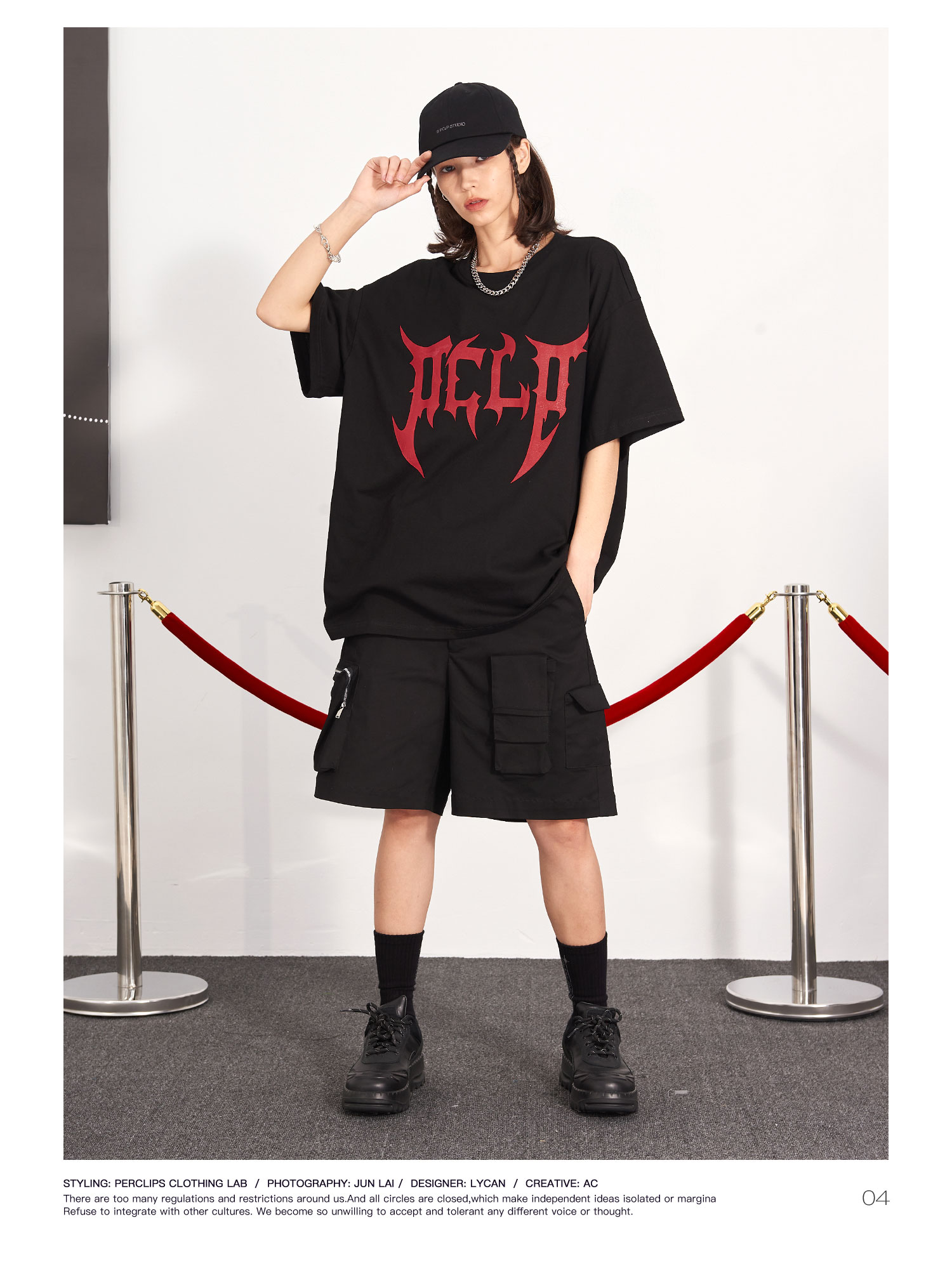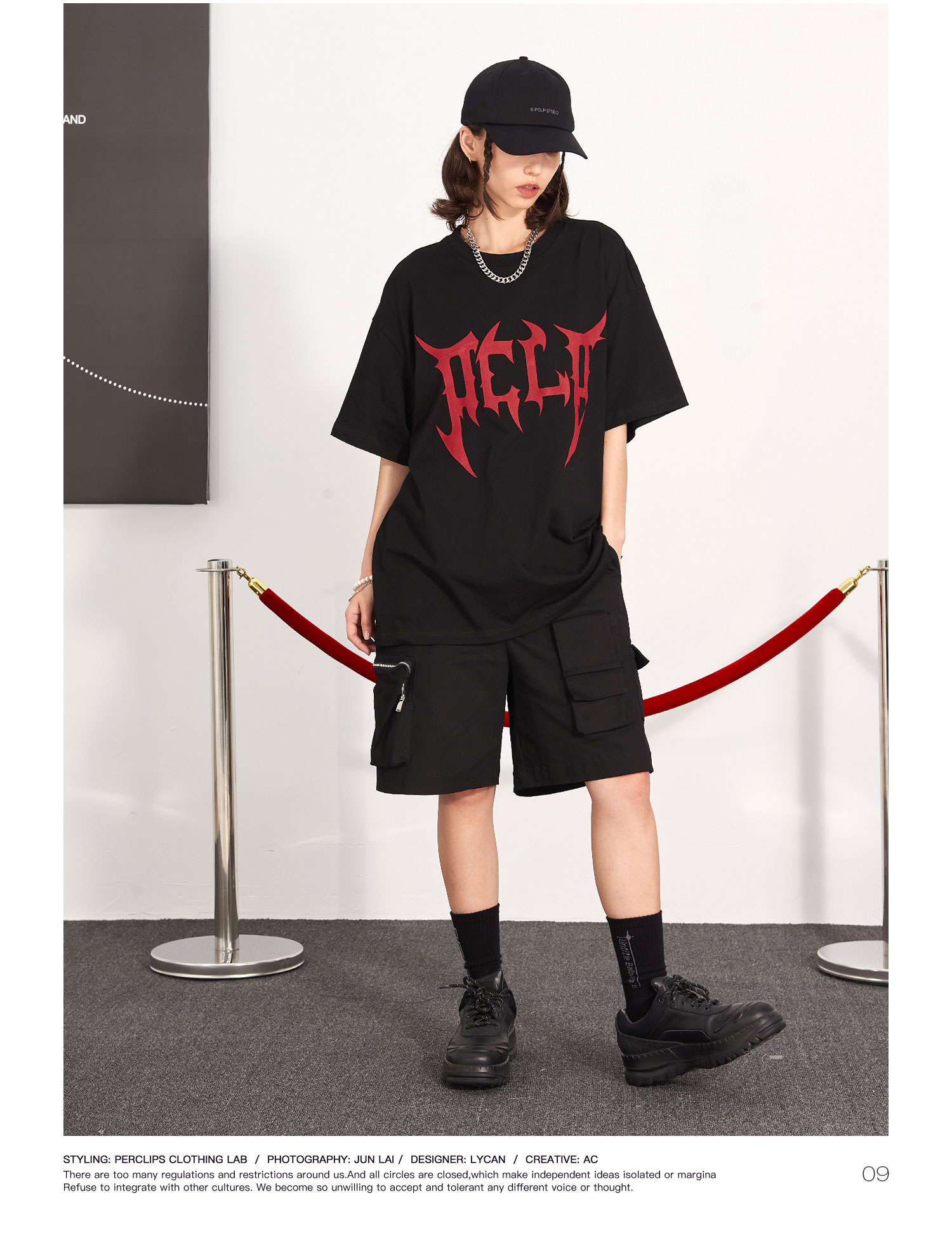 PCLP(PERCLIPS) 刀锋LOGO潮流印花短袖男国潮牌纯棉宽松半袖t恤男