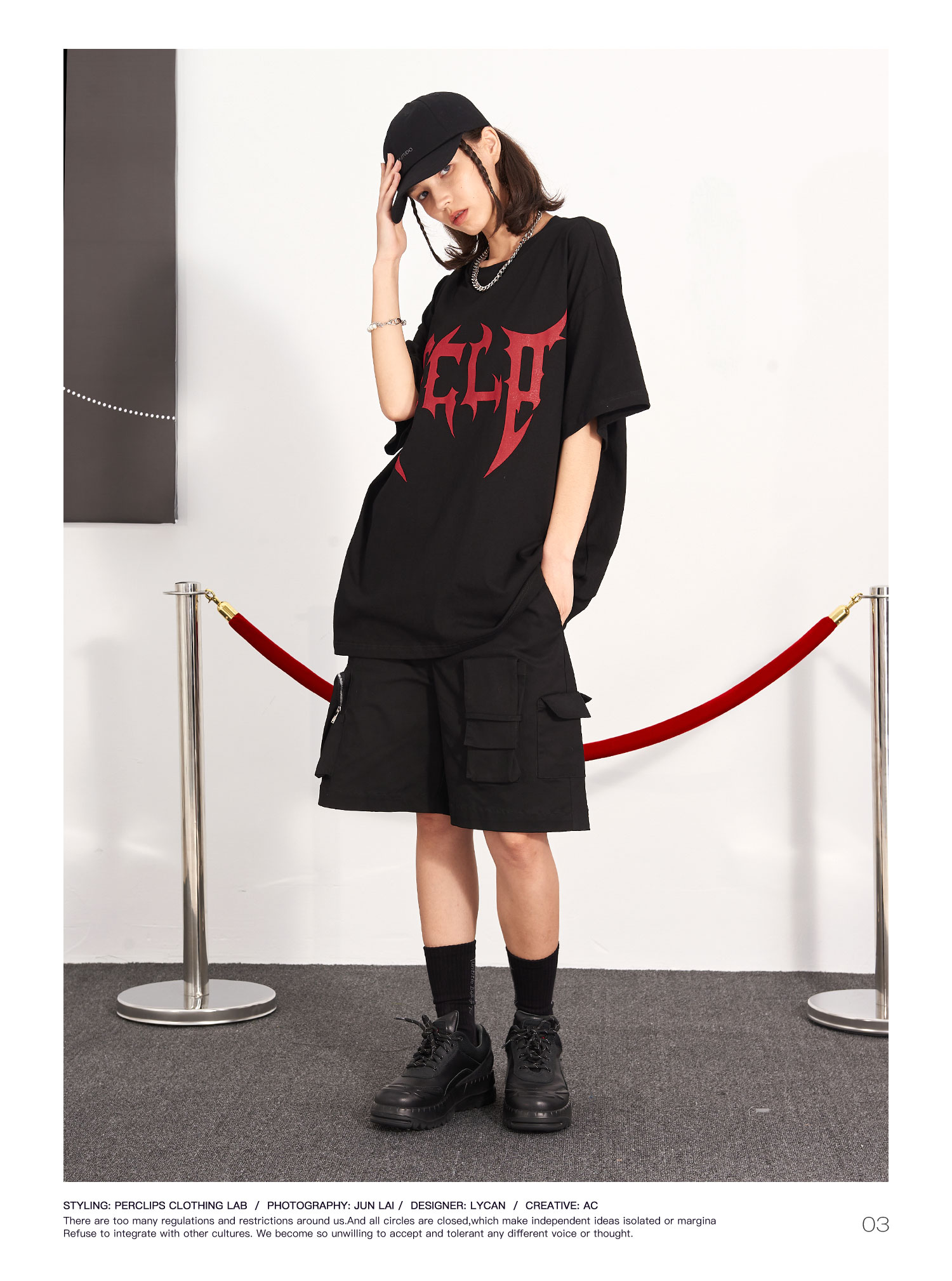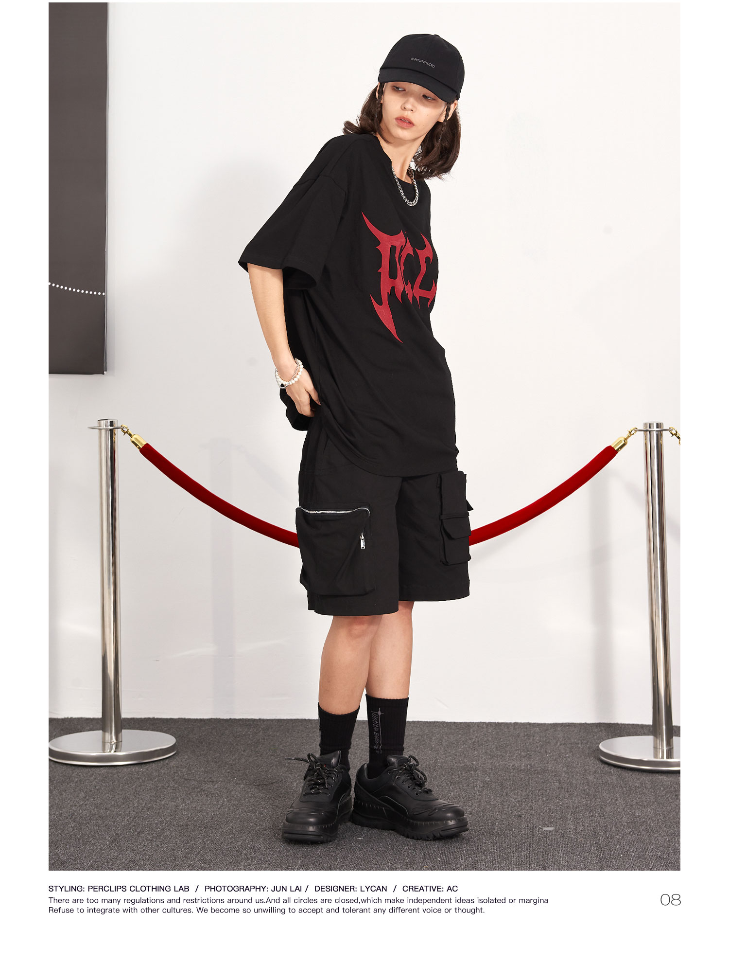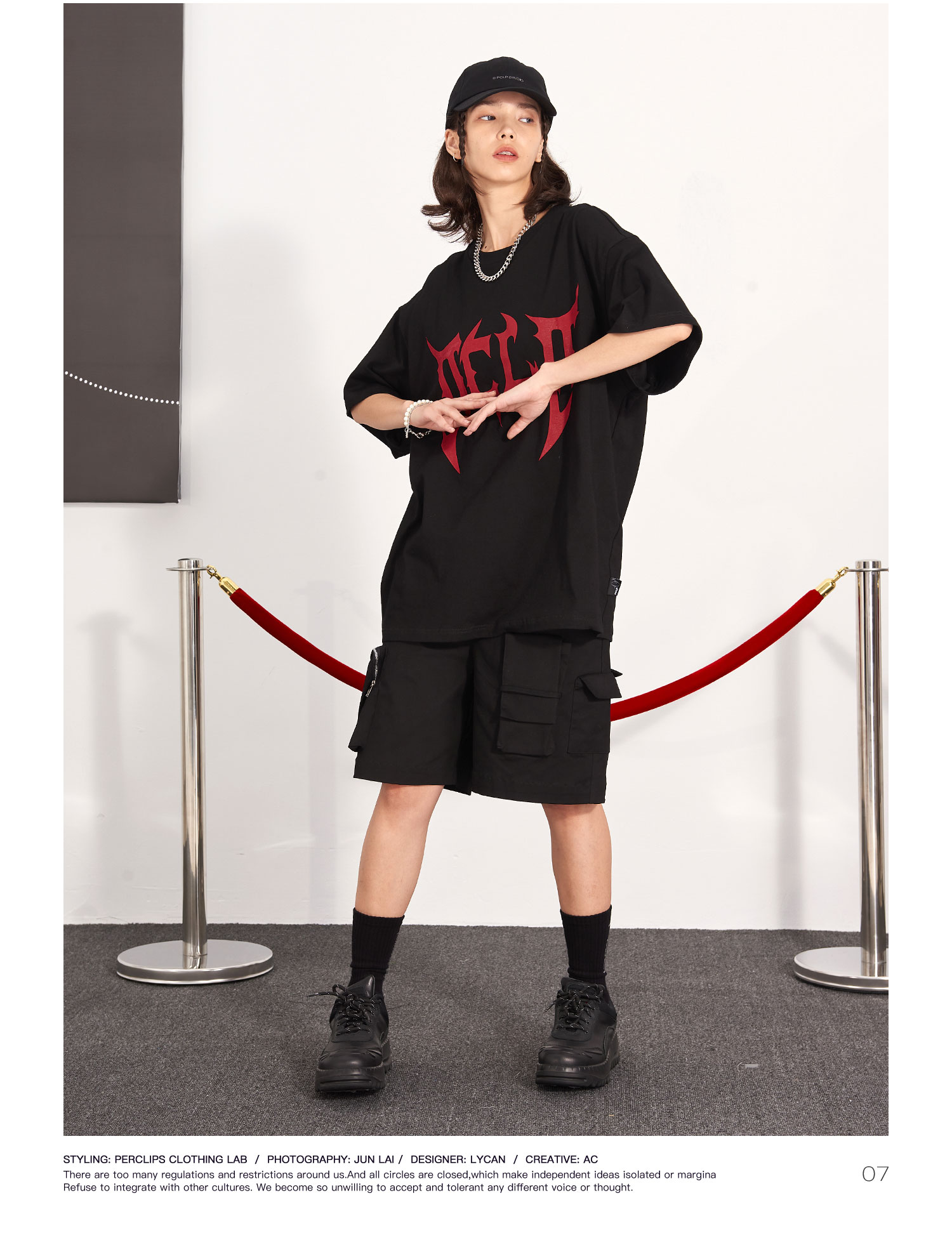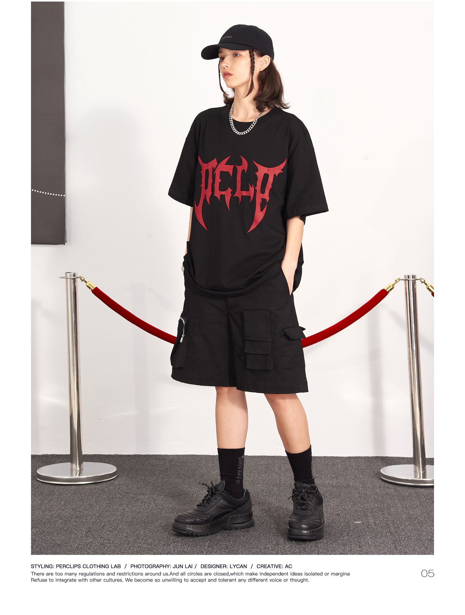 PCLP(PERCLIPS) 刀锋LOGO潮流印花短袖男国潮牌纯棉宽松半袖t恤男