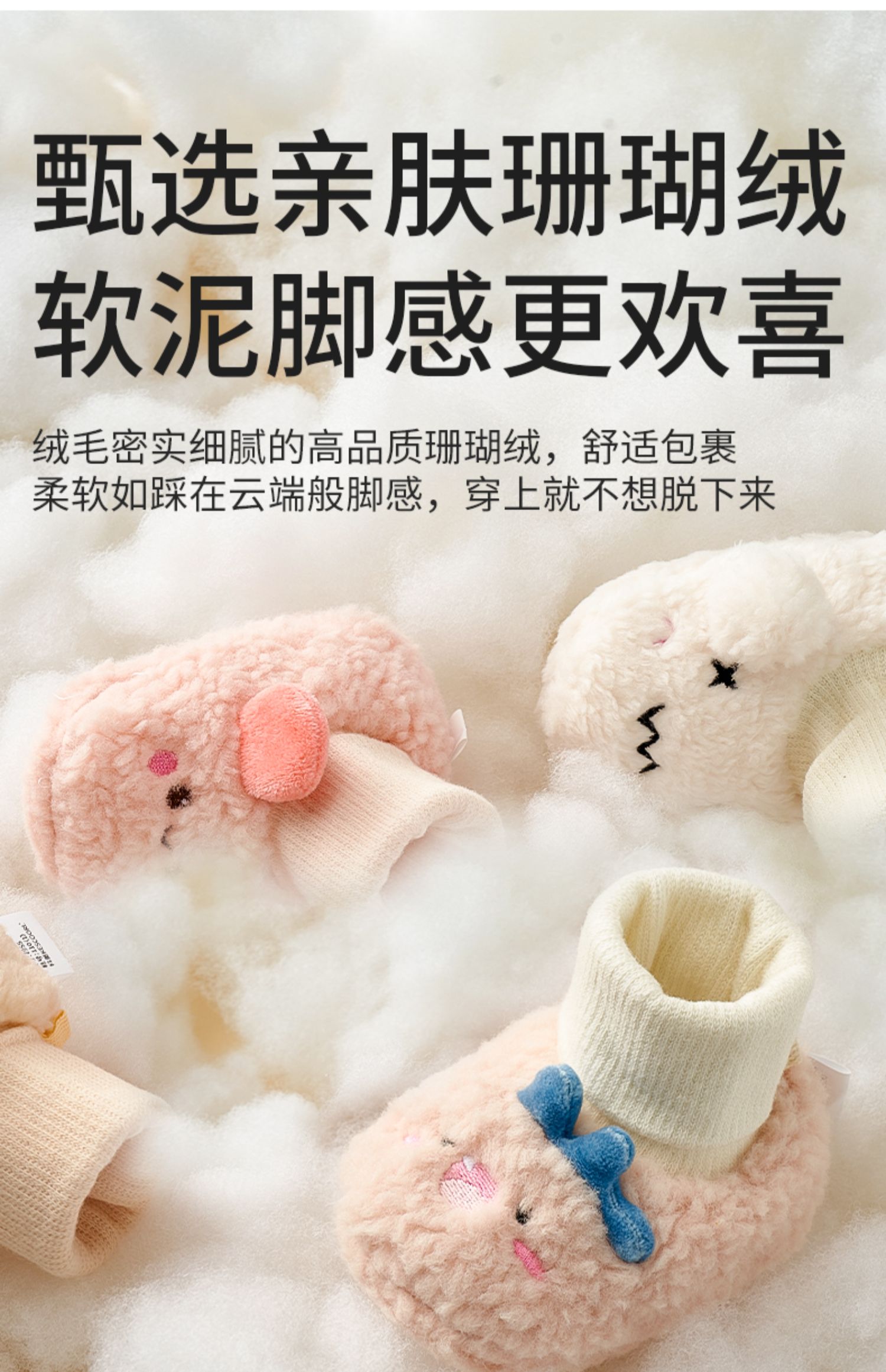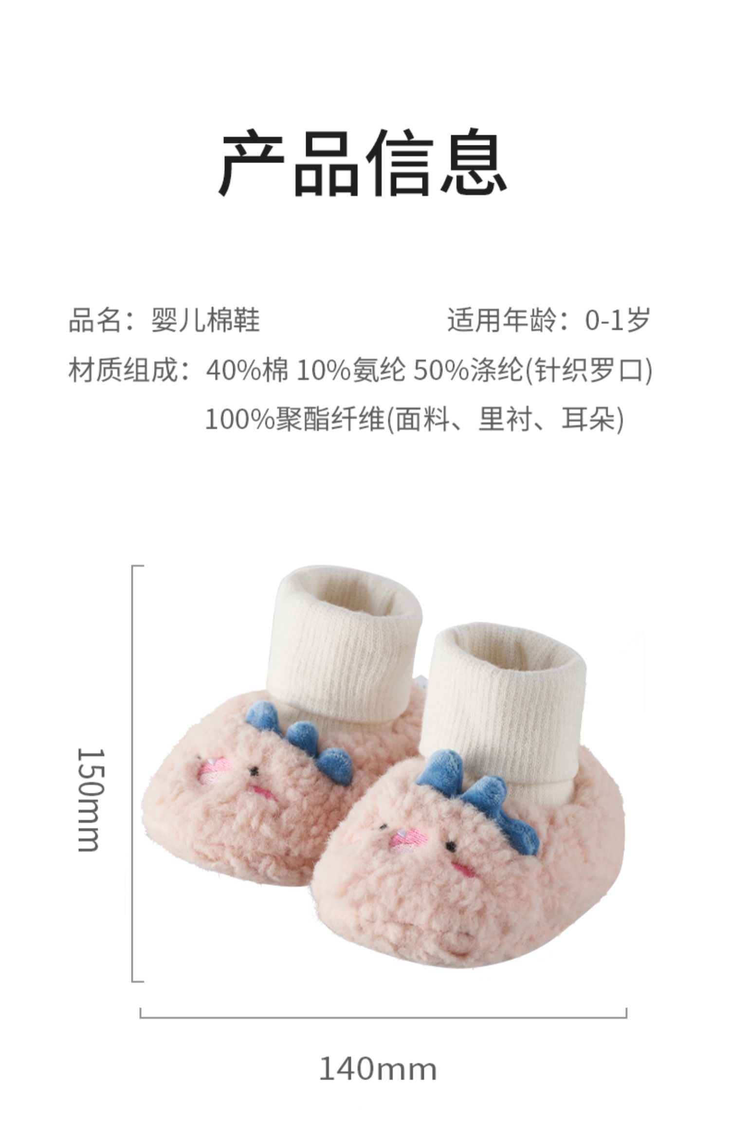 科巢婴儿鞋子秋冬季0-1岁新生儿棉鞋加绒保暖不掉跟鞋袜软底学步防掉1