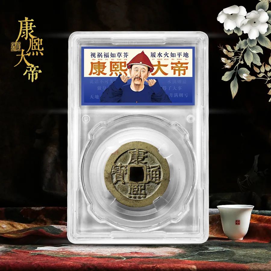 这次封装版康熙通宝最有趣的地方就是它的封装,采用了最流行的康熙表情包,不得不说,康熙大帝不仅造就了一代辉煌王朝,更是火到了现代,火到了年轻人的圈子里。