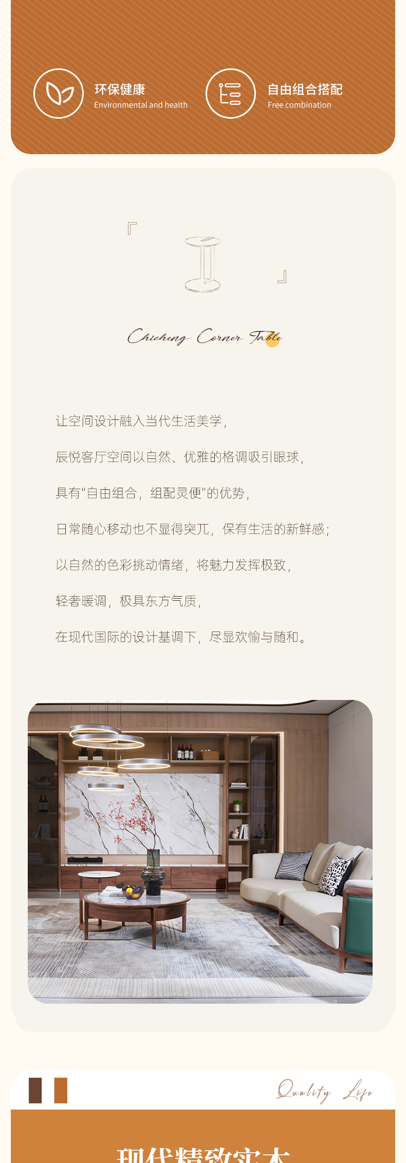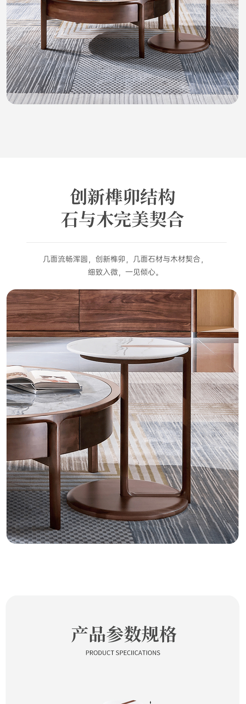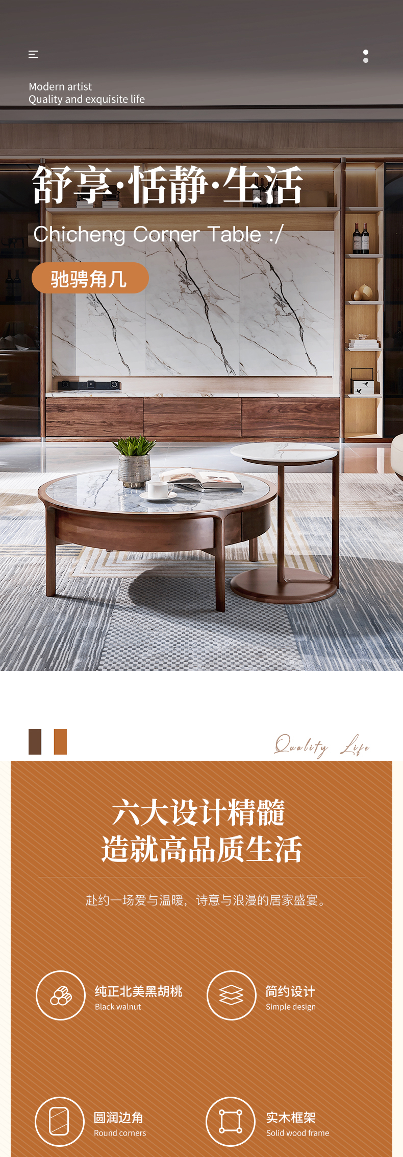 【现代风-CY251休闲几】现代实木/客厅/北美黑胡桃/实木+大理石休闲几
