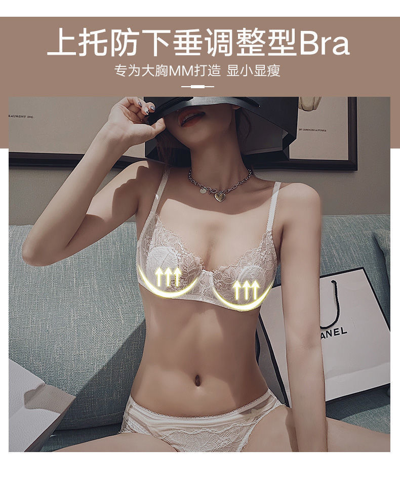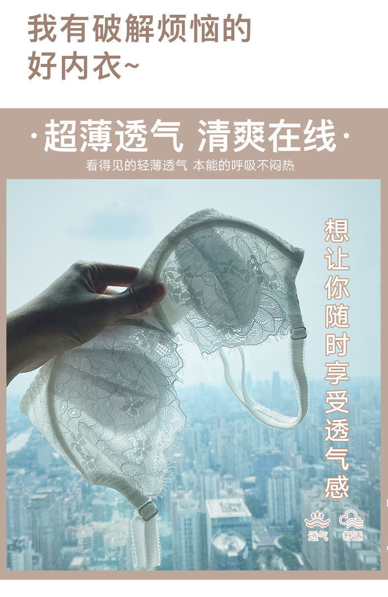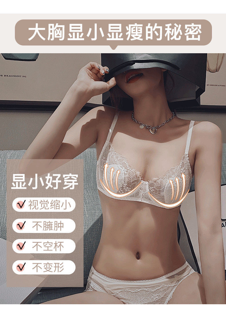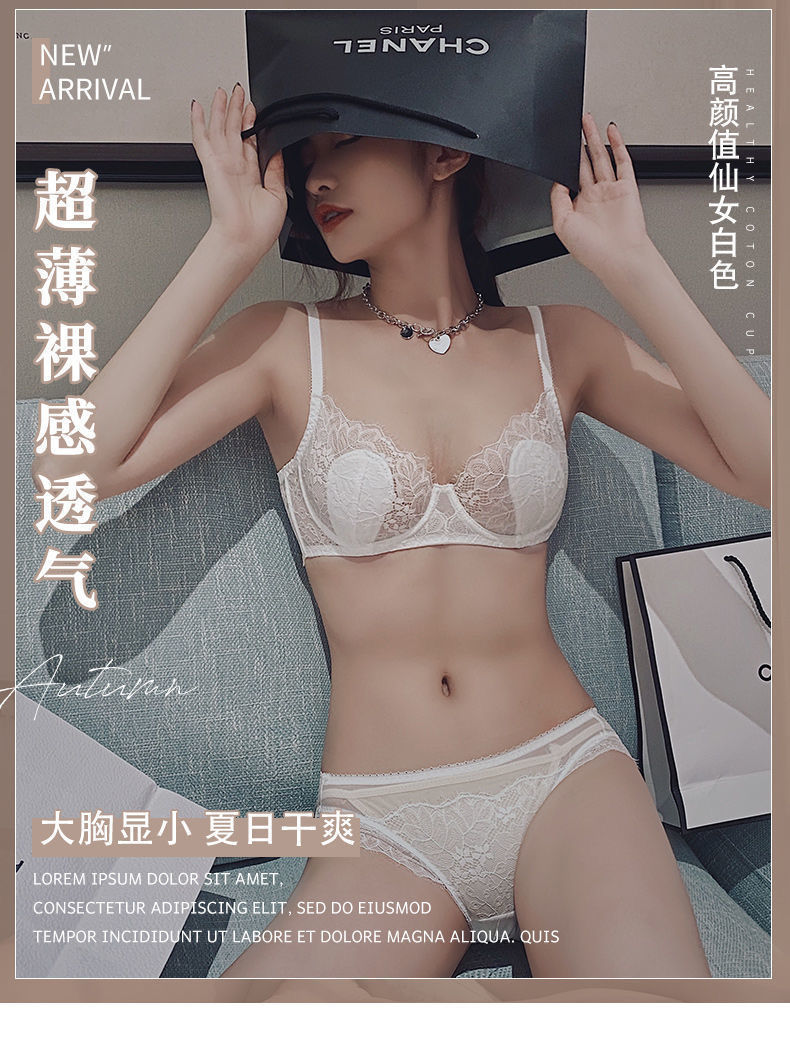 【兔耳朵 性感超薄bra】大胸显胸小无海绵透气白色文胸罩 单件/套装 大码内衣女夏季薄款聚拢