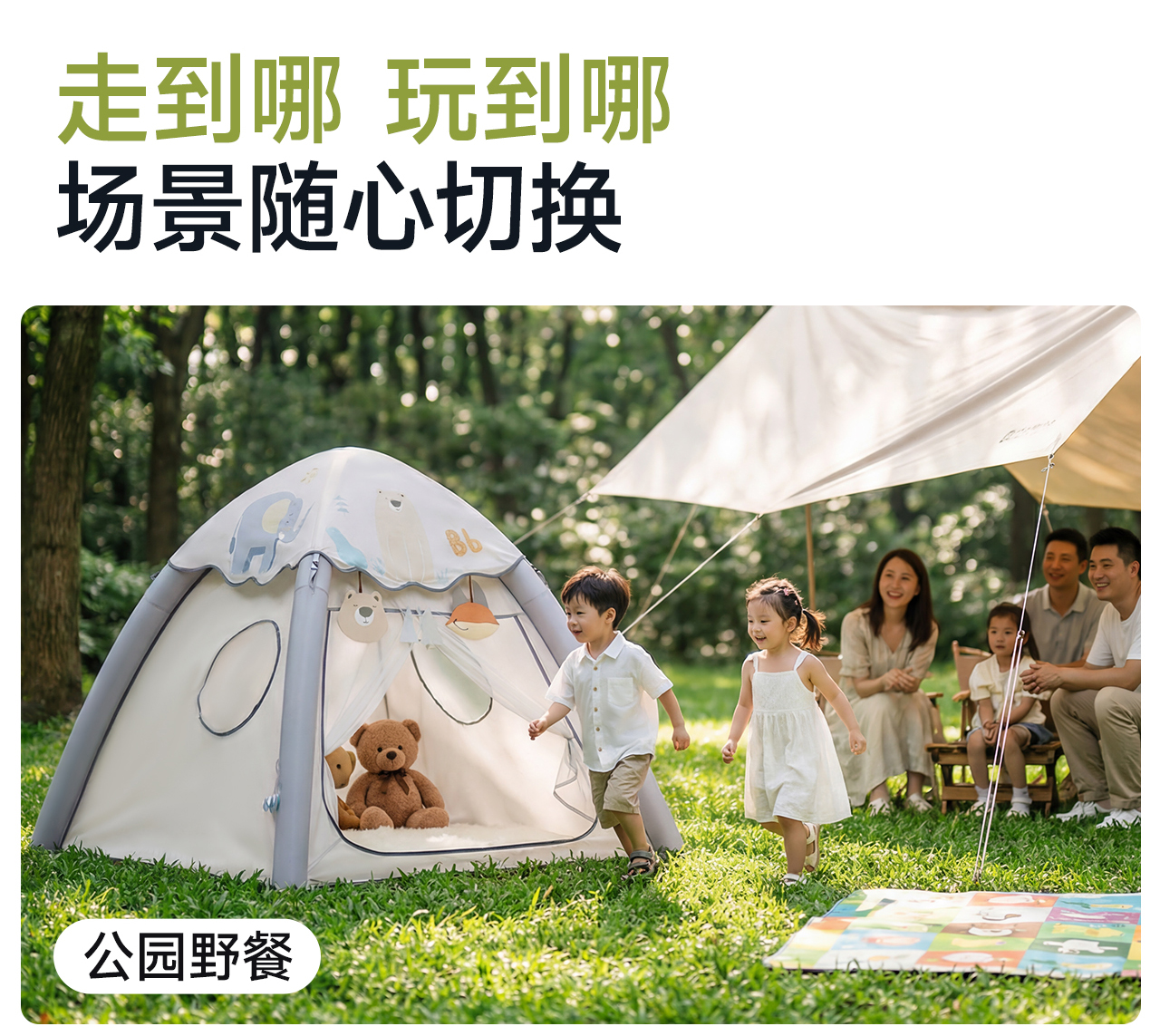 【春日趣玩FUN】曼龙mloong 趣行充气帐篷户 户外便携可折叠轻松收纳露营装备 室内宝宝专属主题房玩具屋