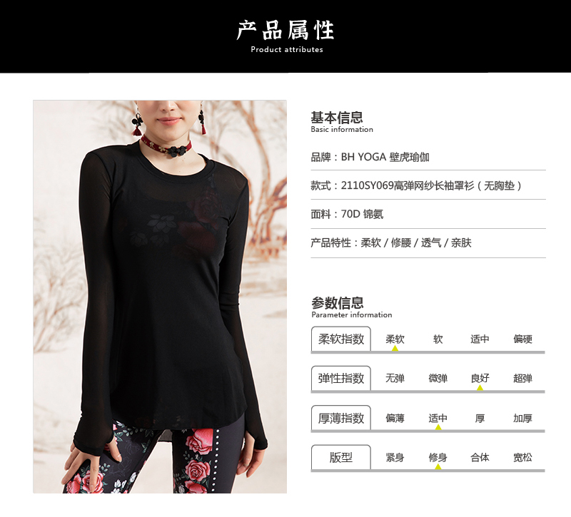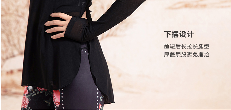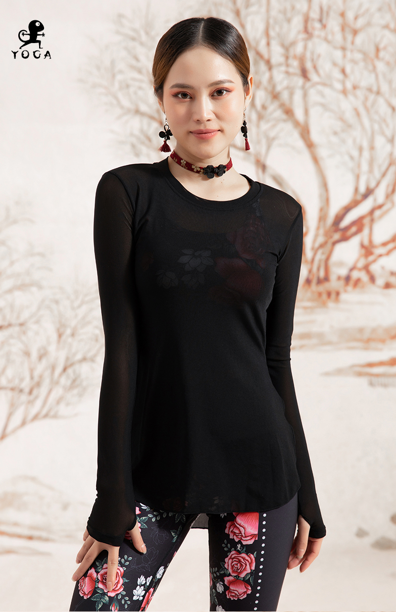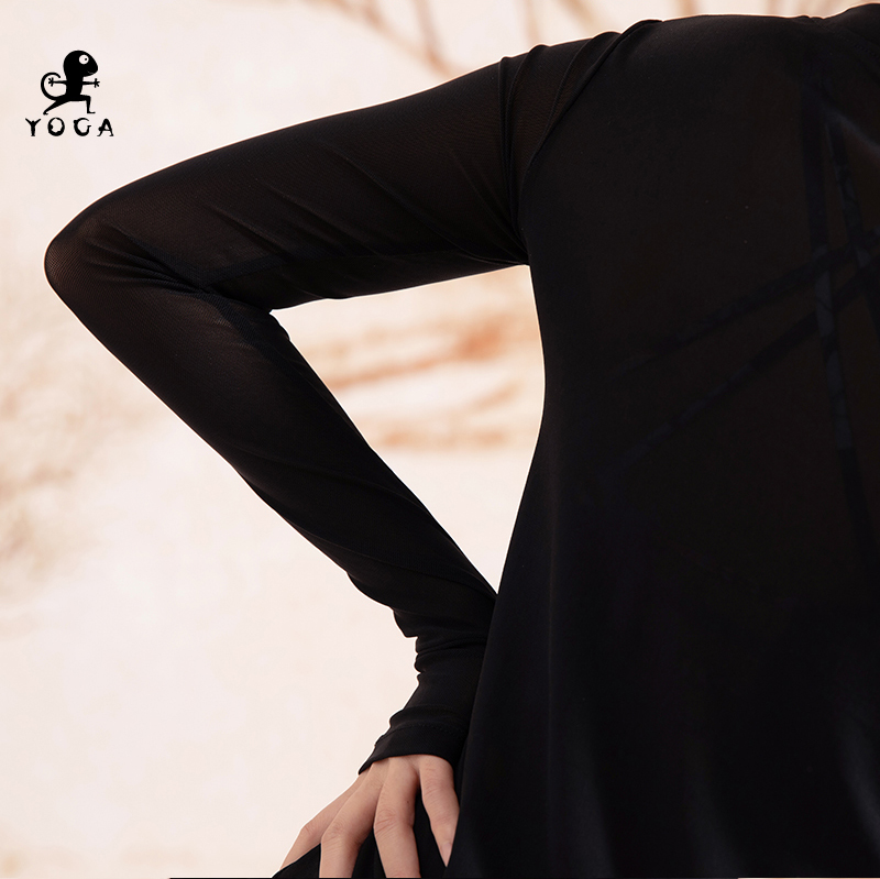 壁虎瑜伽【2110SY069-黑色】高弹网纱长袖罩衫(无胸垫)