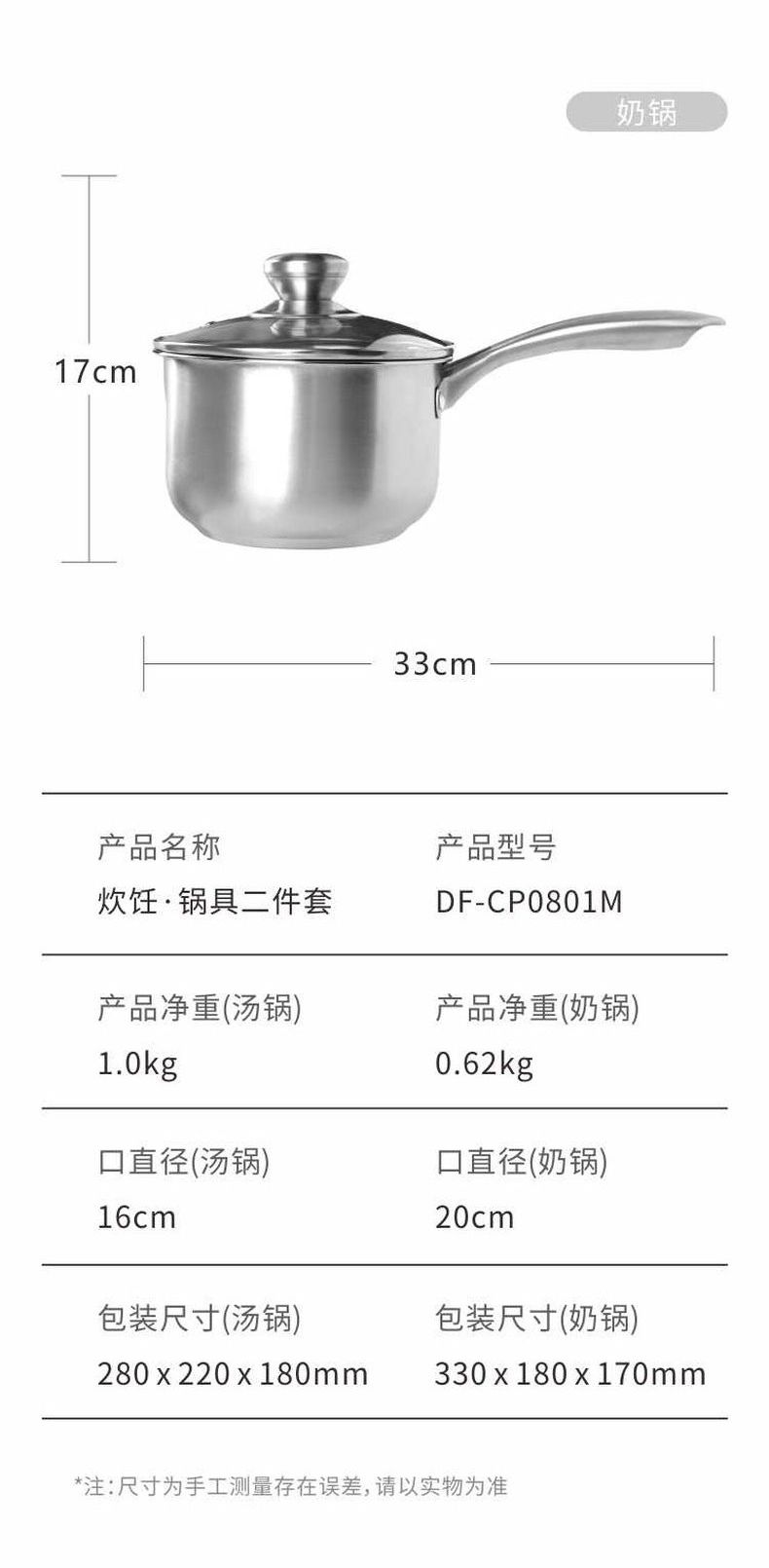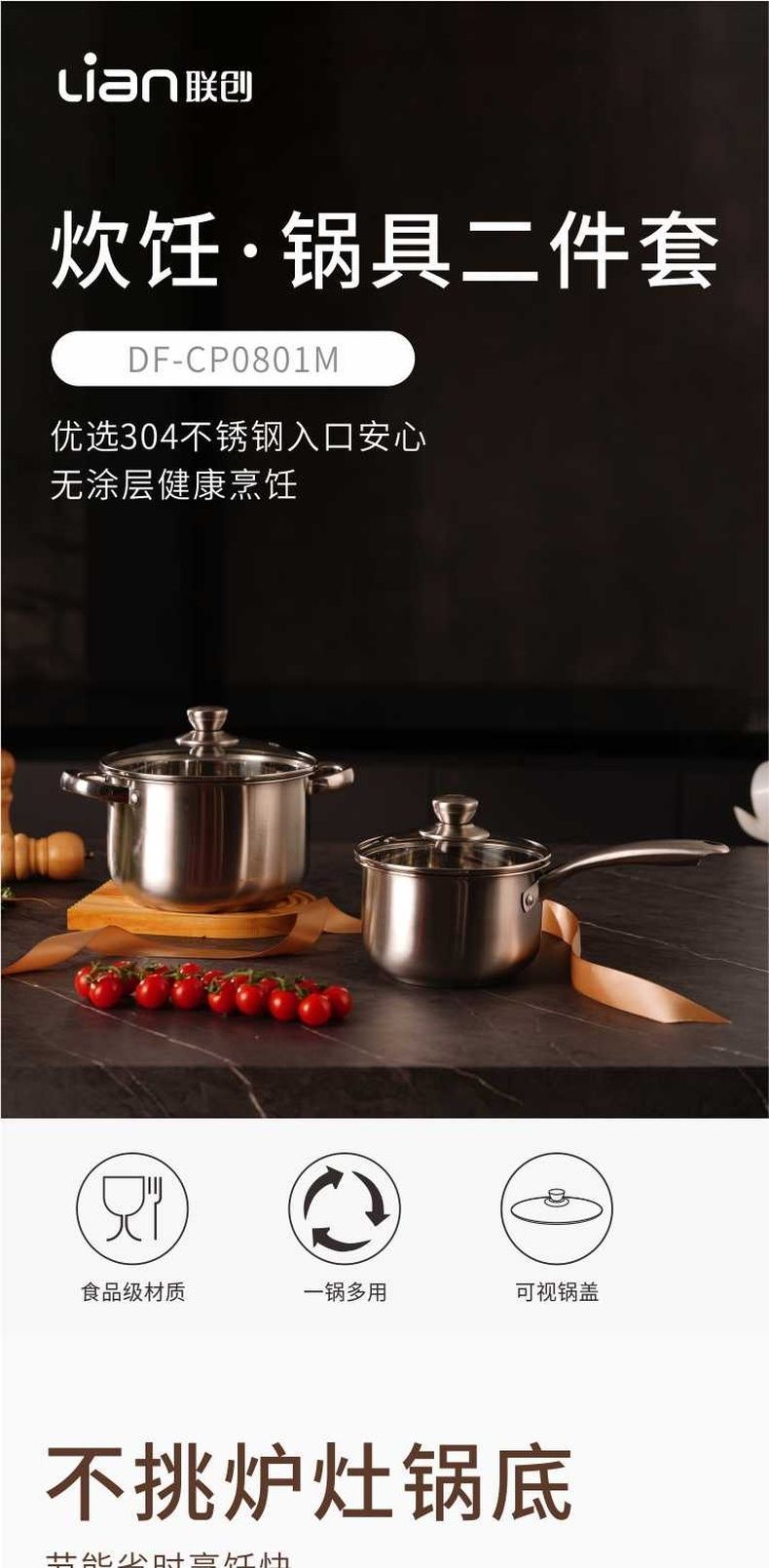 联创 炊饪·锅具二件套 DF-CP0801M 炒锅汤锅组合家用不粘锅