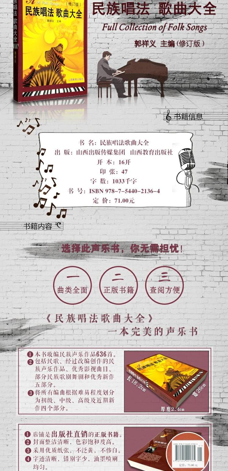 民族唱法歌曲大全(修订版)声乐郭祥义 高等艺术院校声乐培训教材 歌曲歌词简谱乐谱音乐书