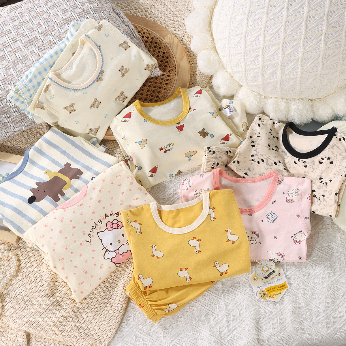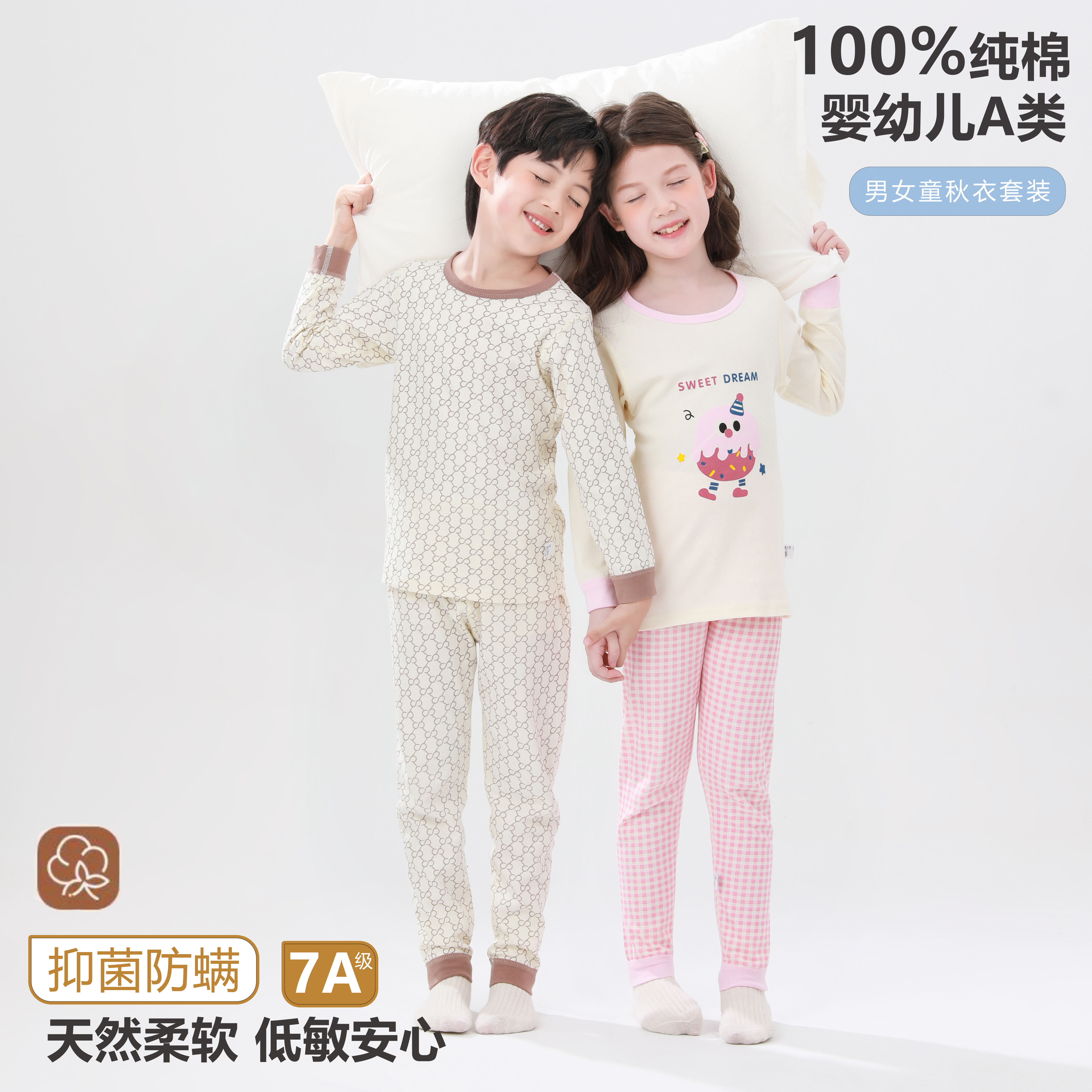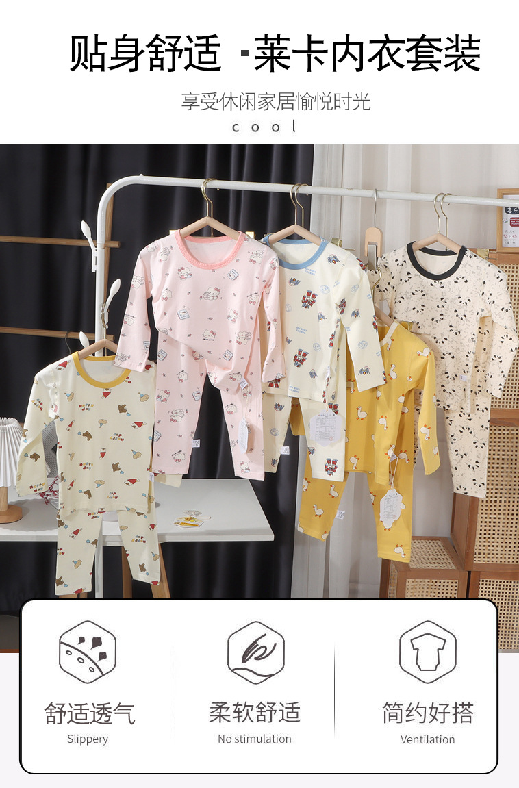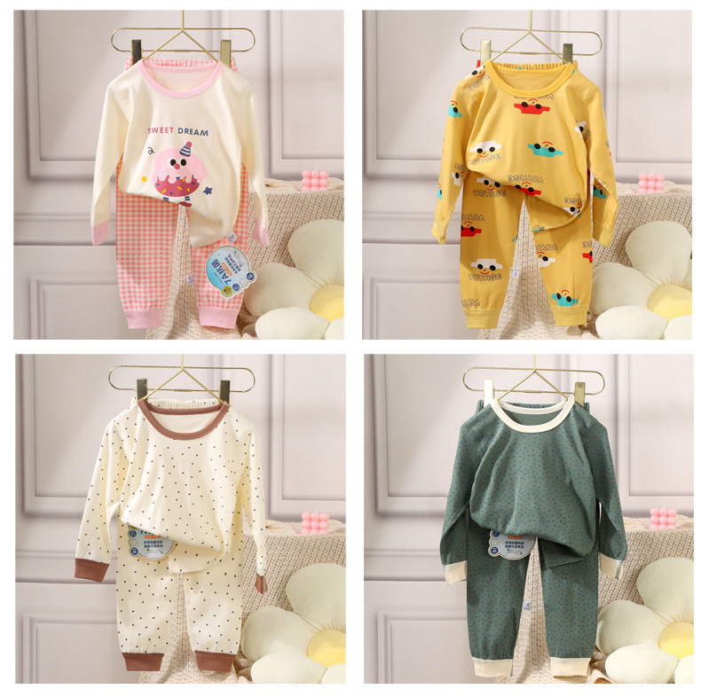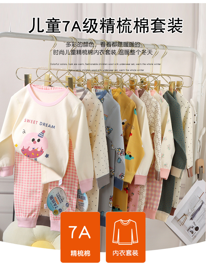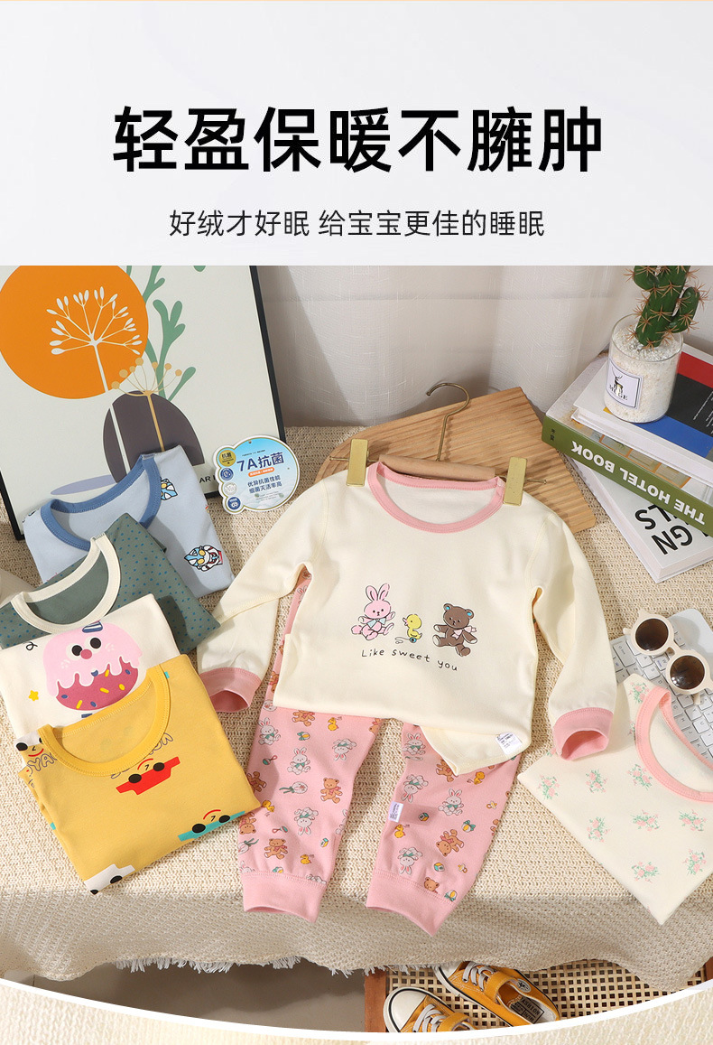 【🔥A类7A级抗菌69元/任选2套】80-160码儿童韩版无骨内衣秋冬男女童卡通纯棉家居服宝宝睡衣秋衣秋裤套装聚