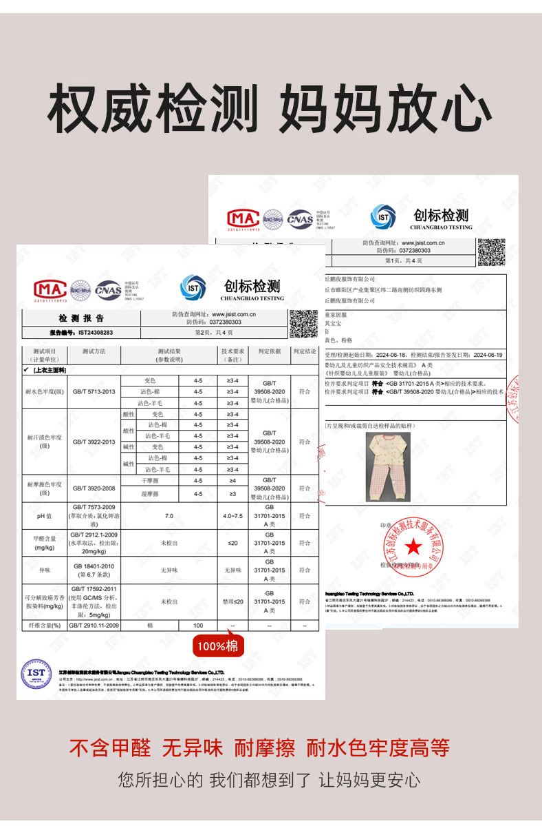 婴幼儿专用·A类·纯棉/莱卡面料