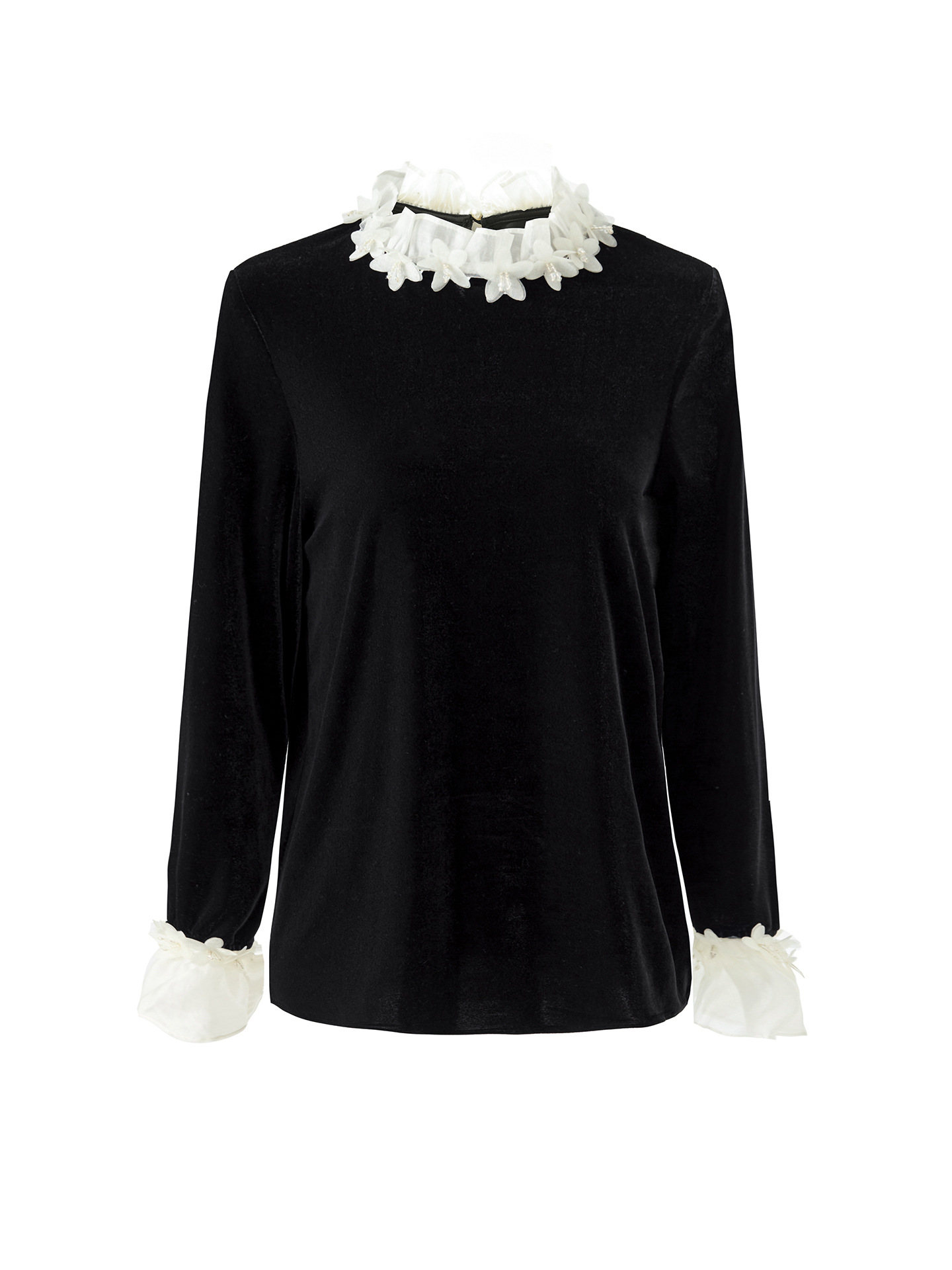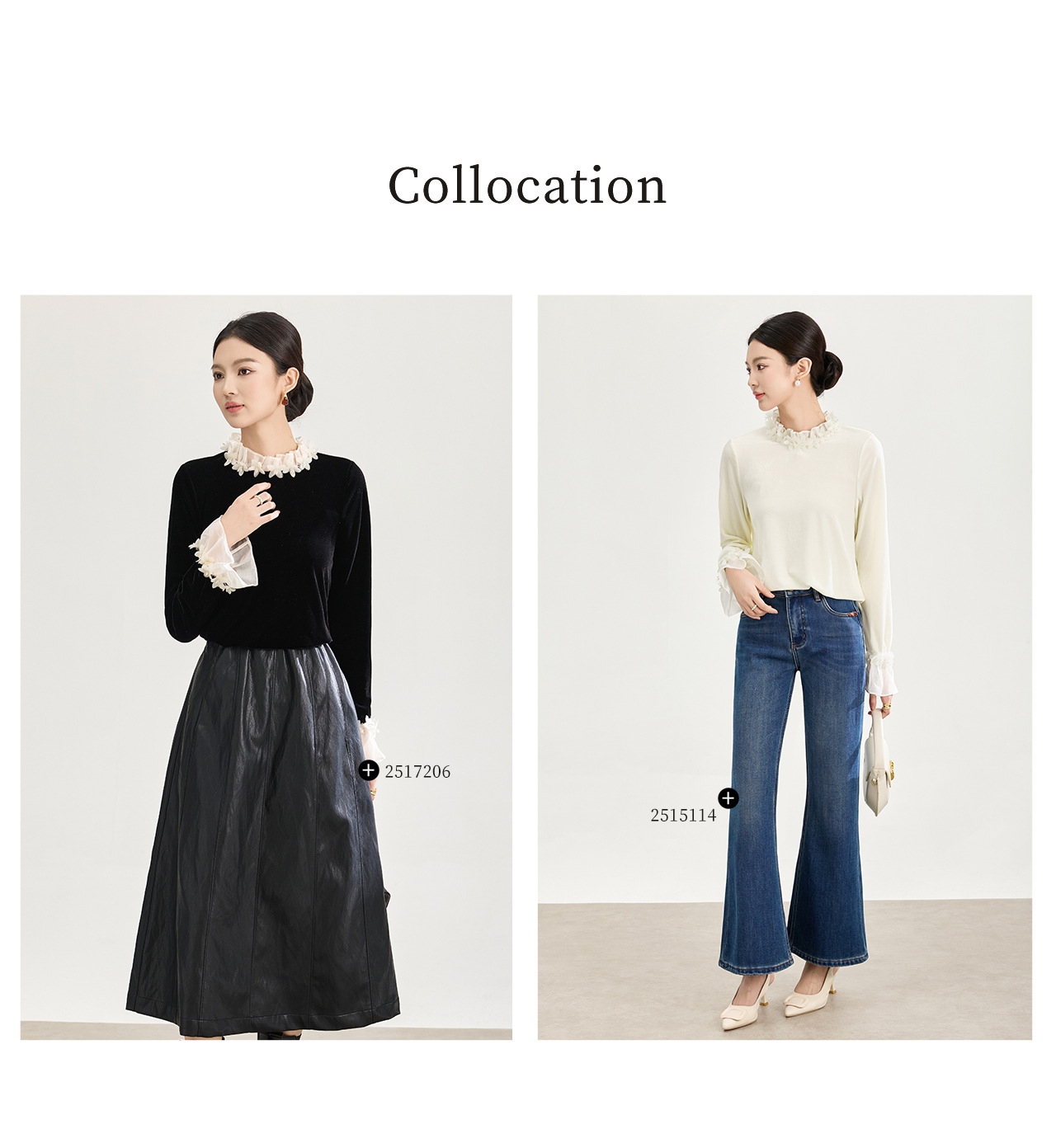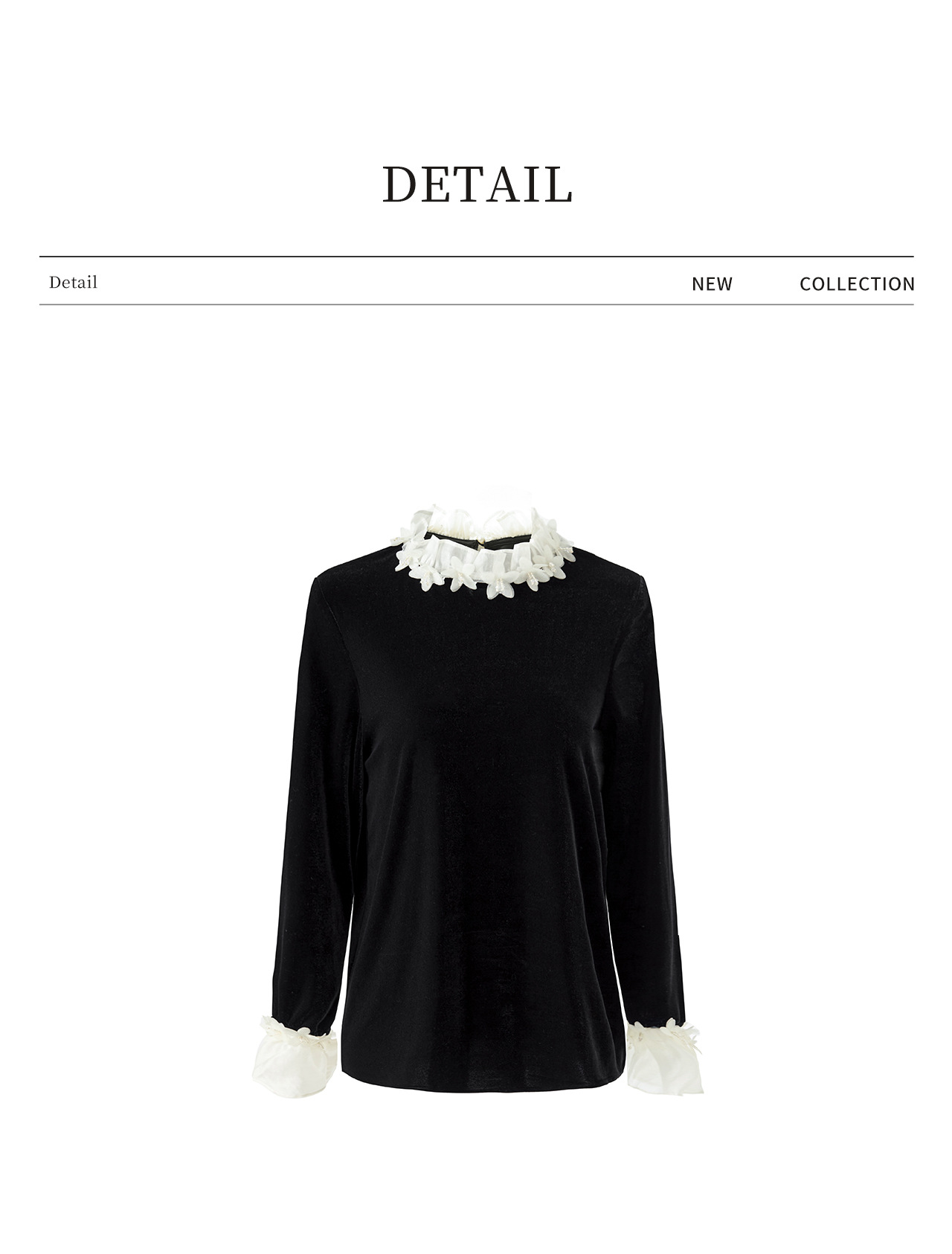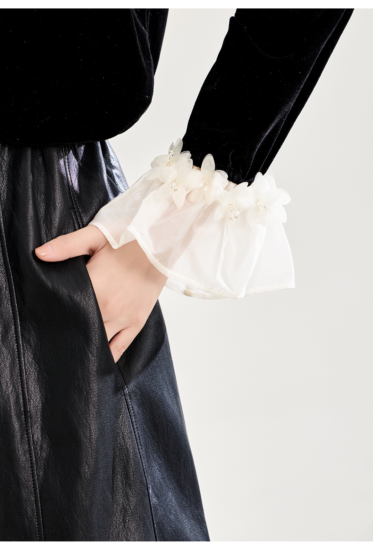 2026春装法式浪漫高贵洋气四方立绒衬衫蕾丝花瓣领上装