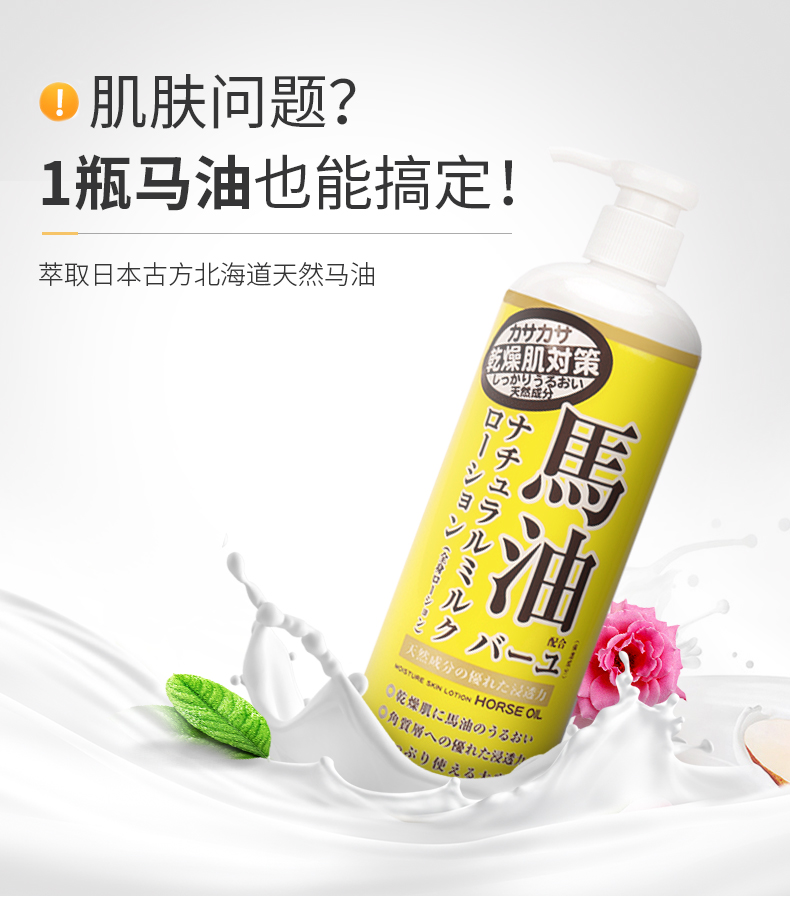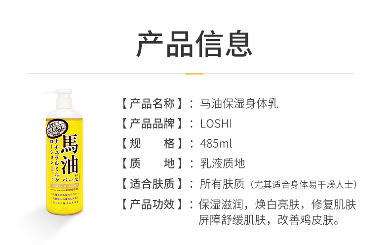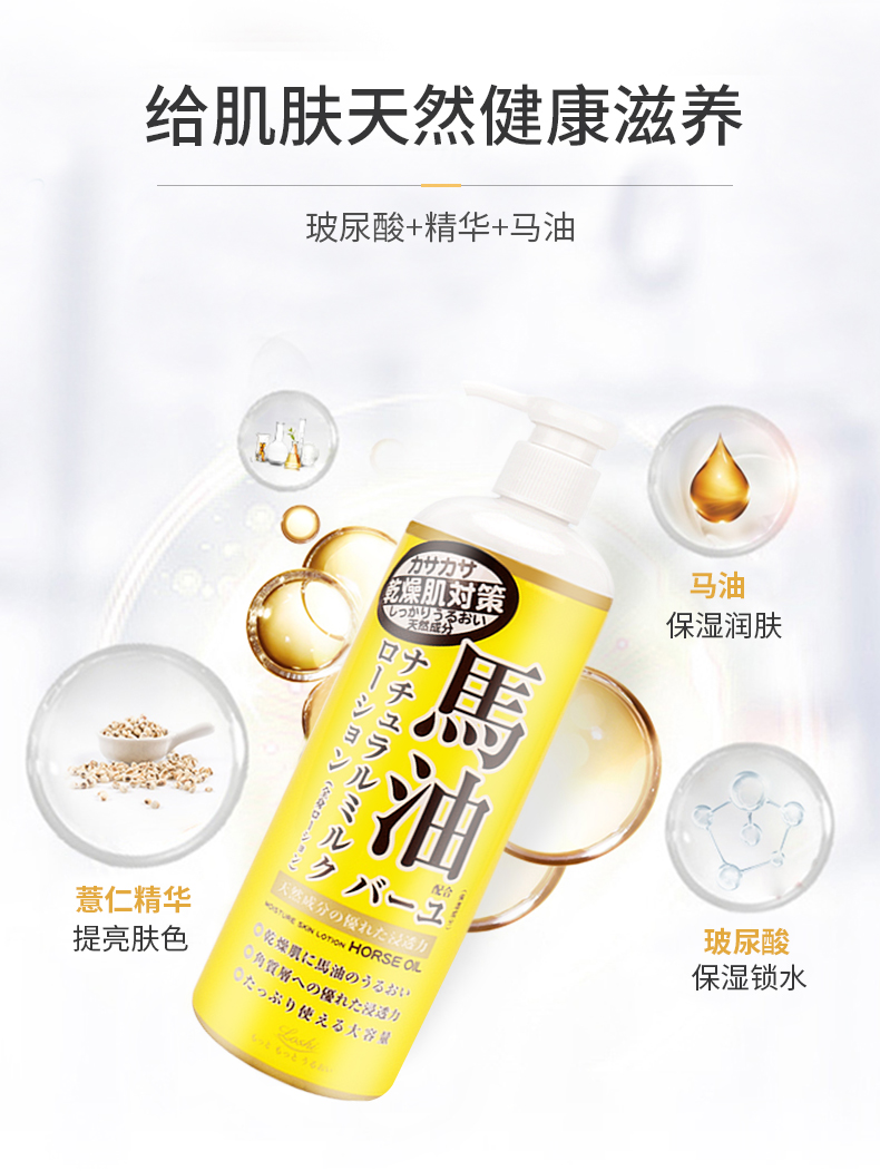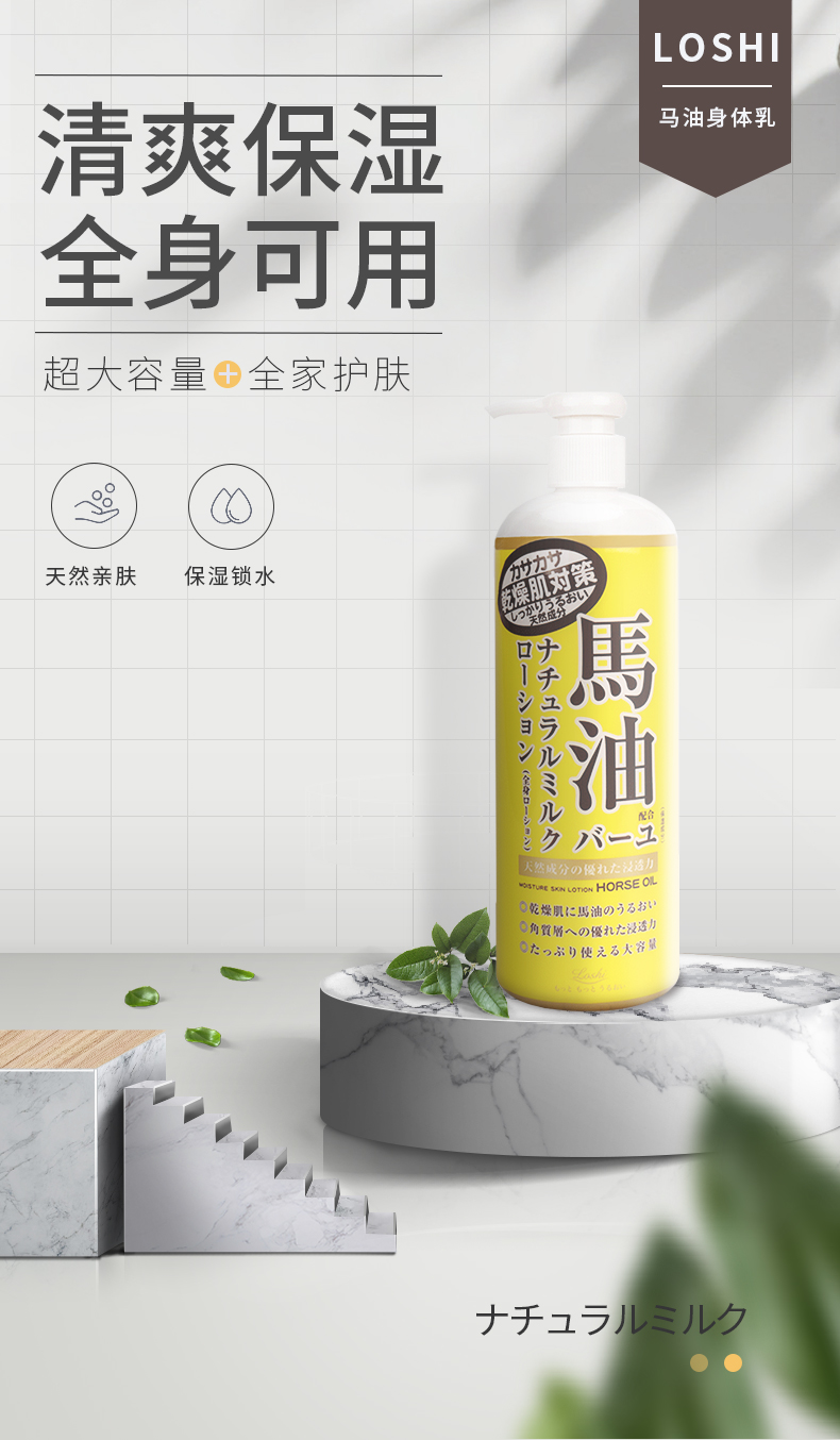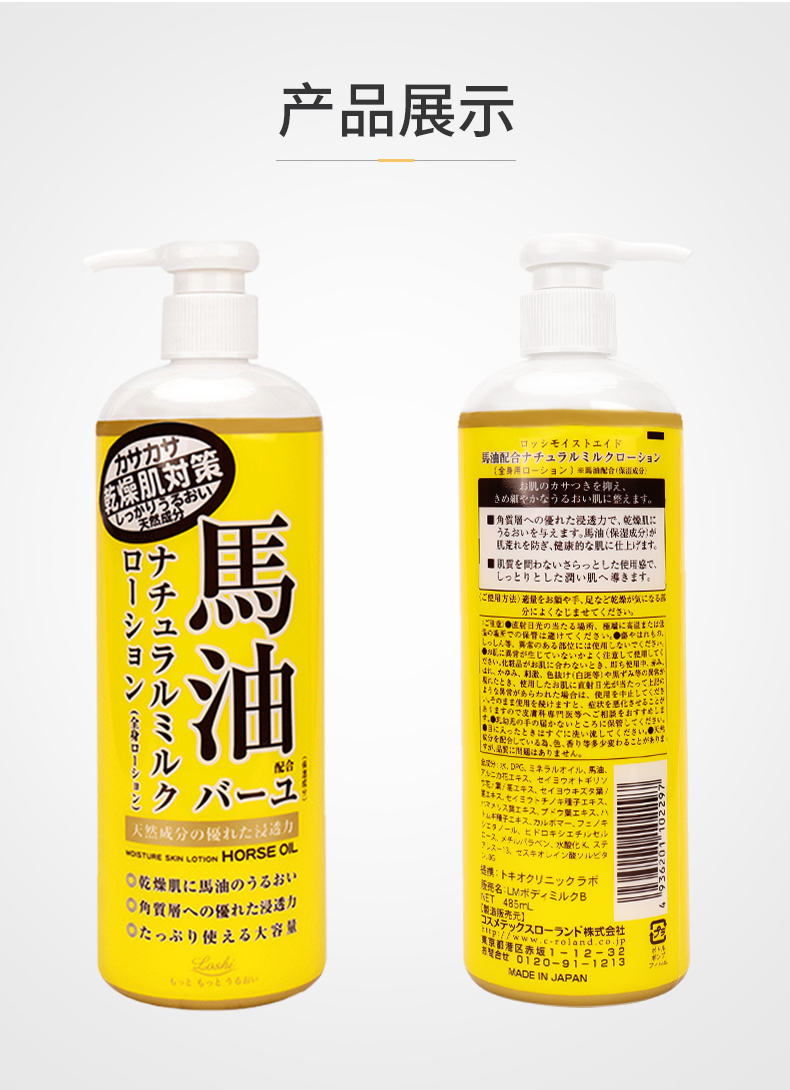 【日本直邮】 LOSHI北海道 天然滋润马油身体乳液 乳霜 485ml