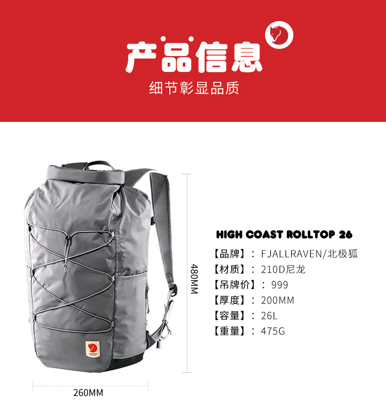 Fjallraven/北极狐新款轻便*户外登山背包防泼双肩背包 23224