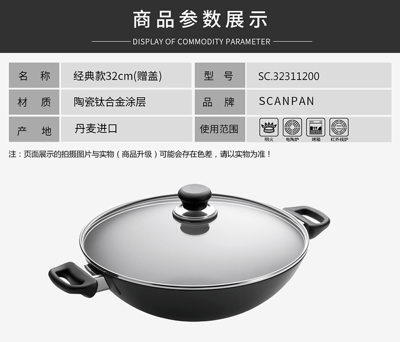 丹麦原装进口SCANPAN经典系列双耳不粘炒锅32cm+电陶炉2000w