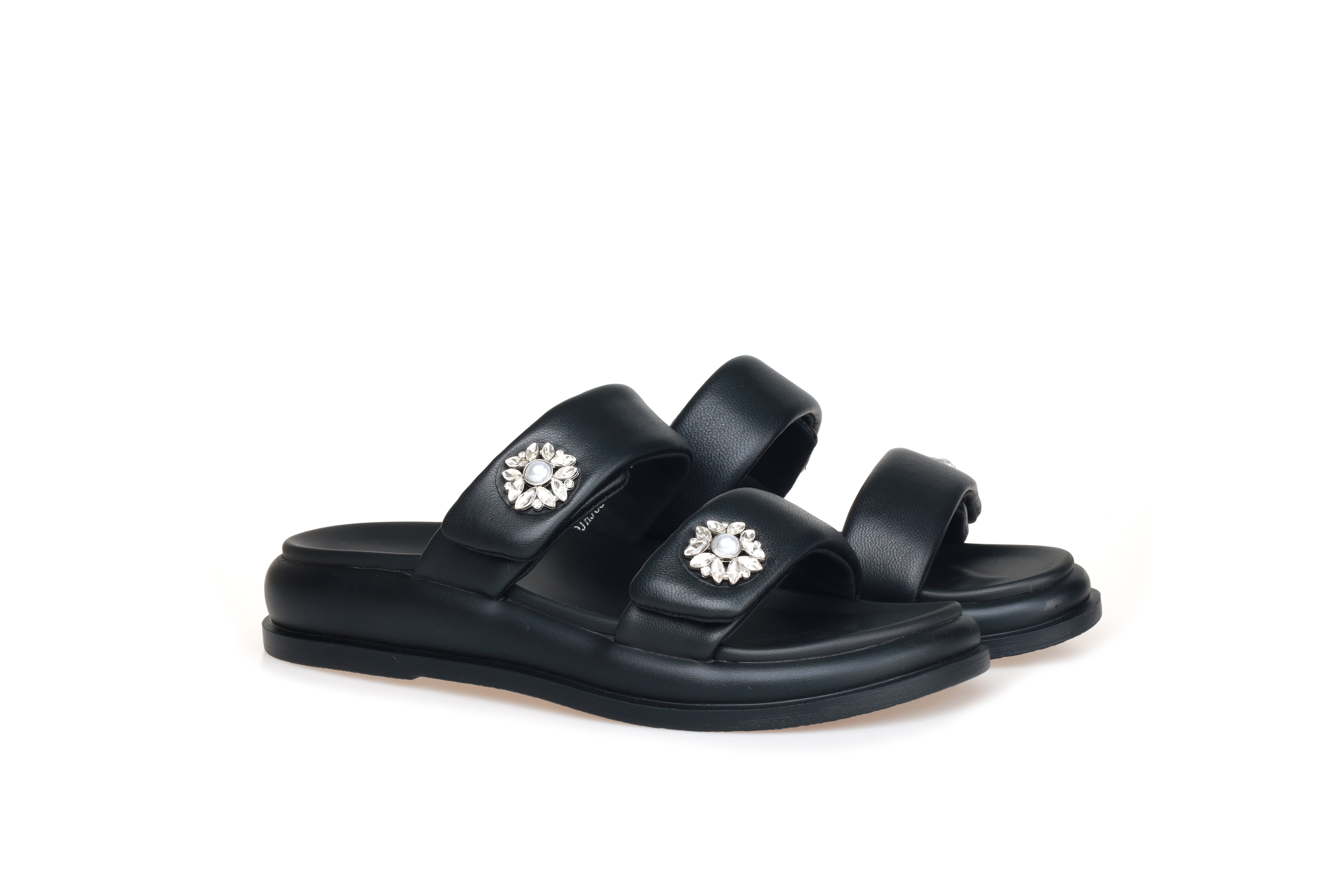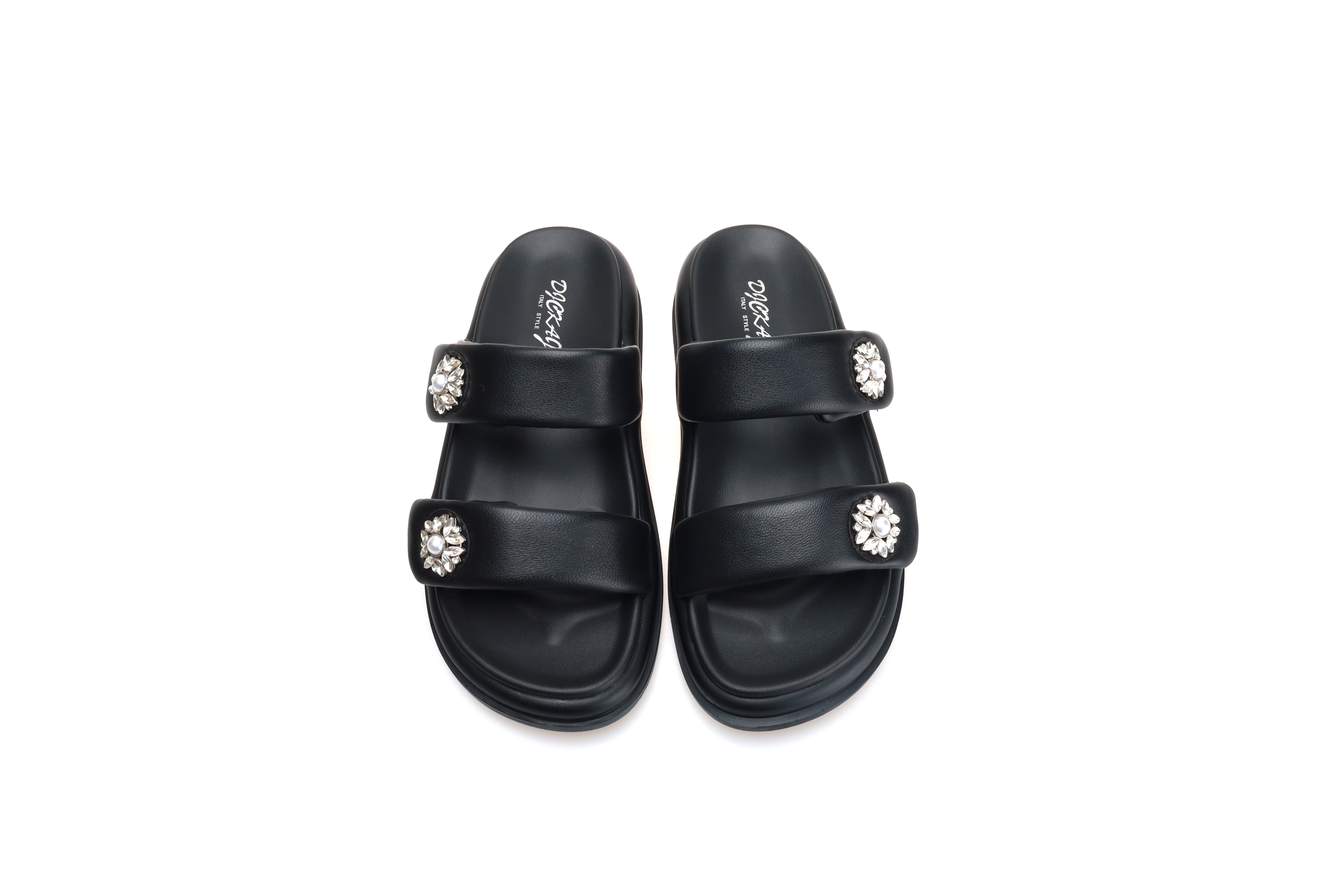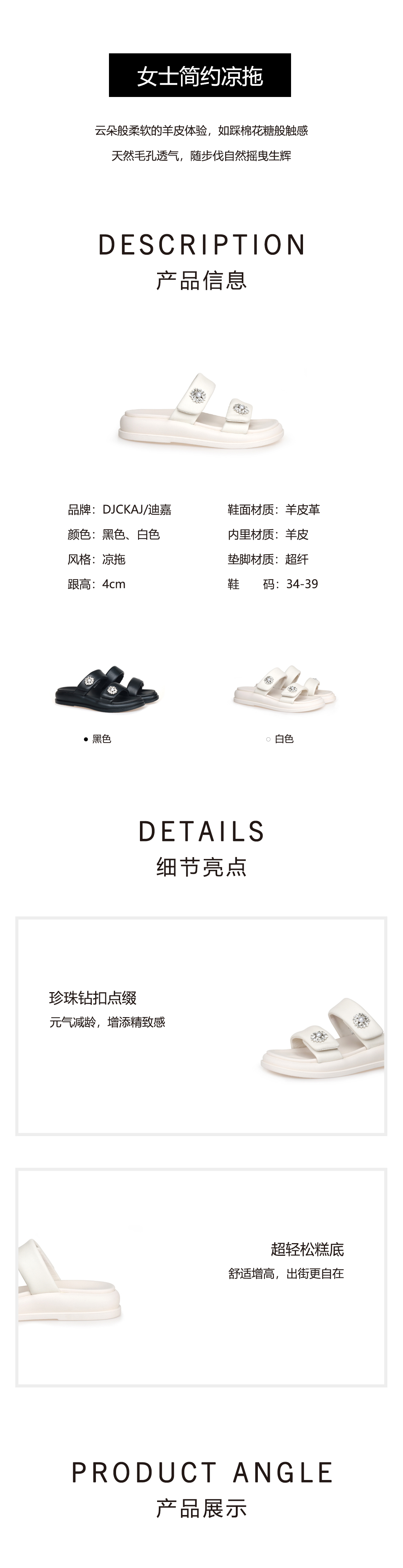 豪麟名鞋奥莱迪嘉女鞋凉拖羊皮革DJHJO51WL202黑色 原价1660元