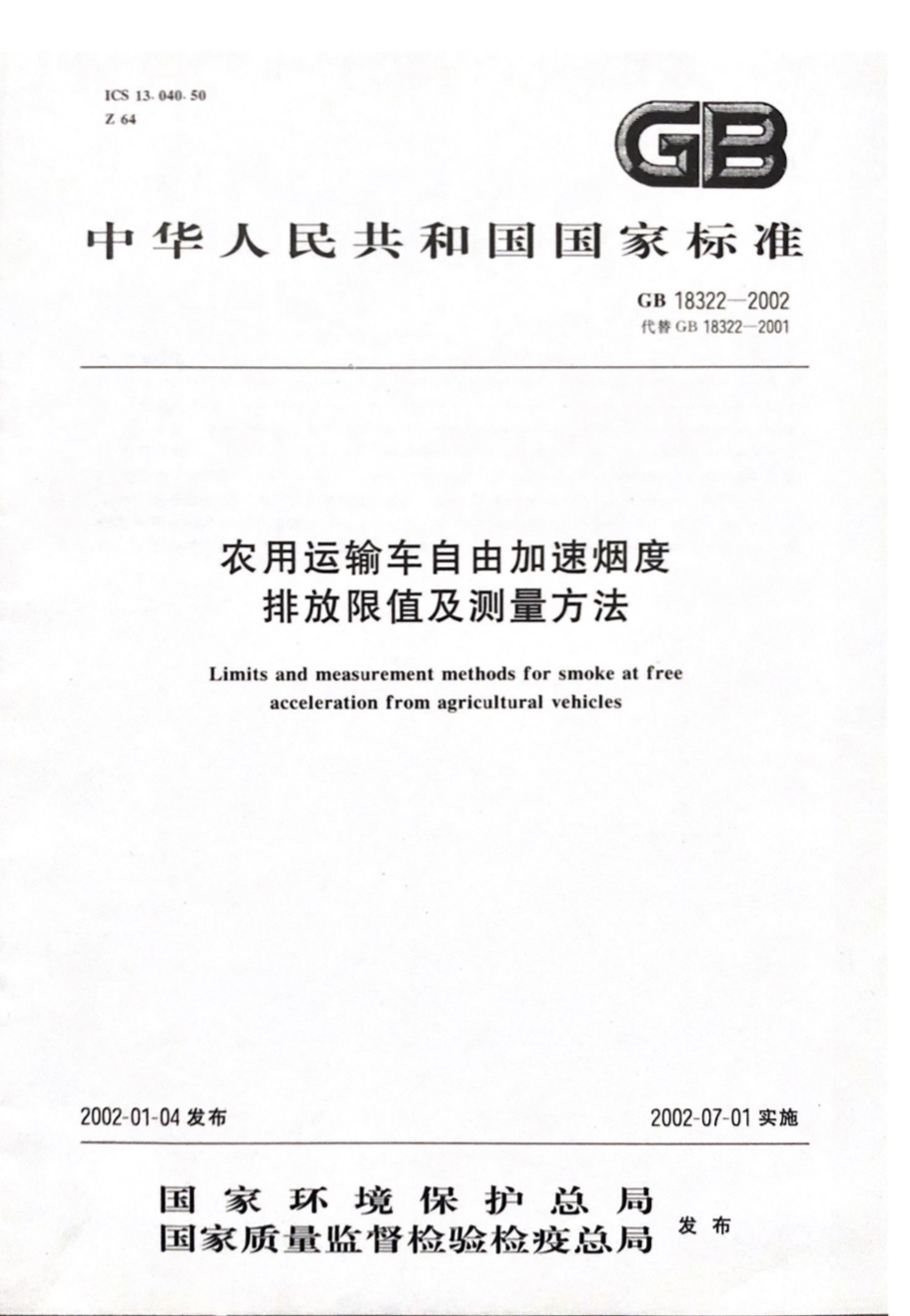 GB 18322-2002 农用运输车自由加速烟度排放限值及测量方法