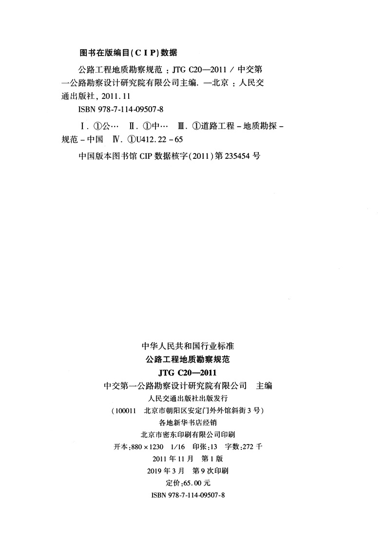 书名:公路工程地质勘察规范(JTG C20—2011)