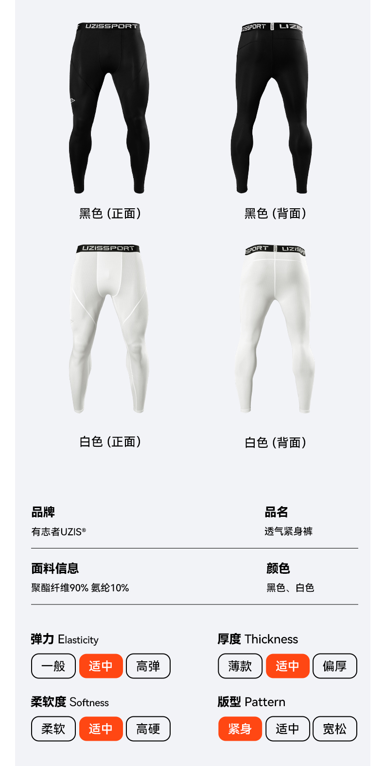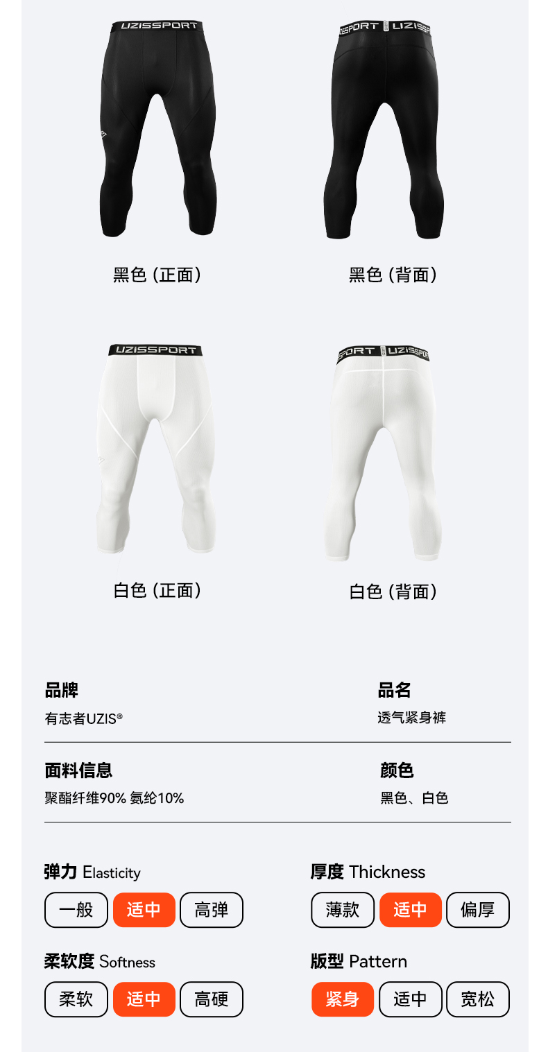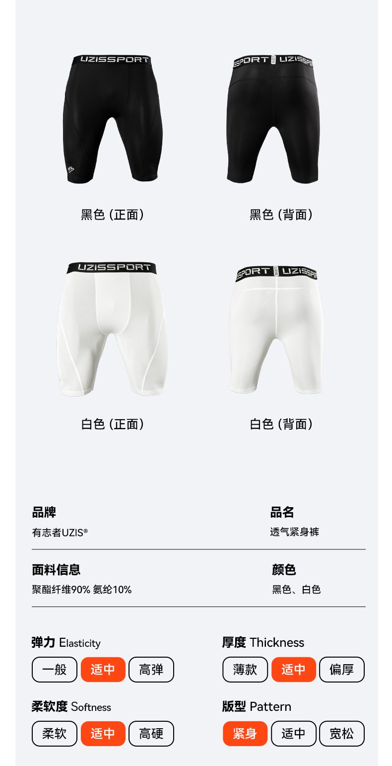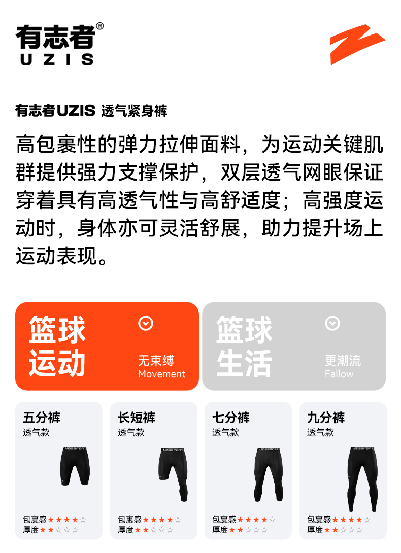 有志者UZIS 透气紧身裤篮球运动男健身打底裤专业训练装备长短裤