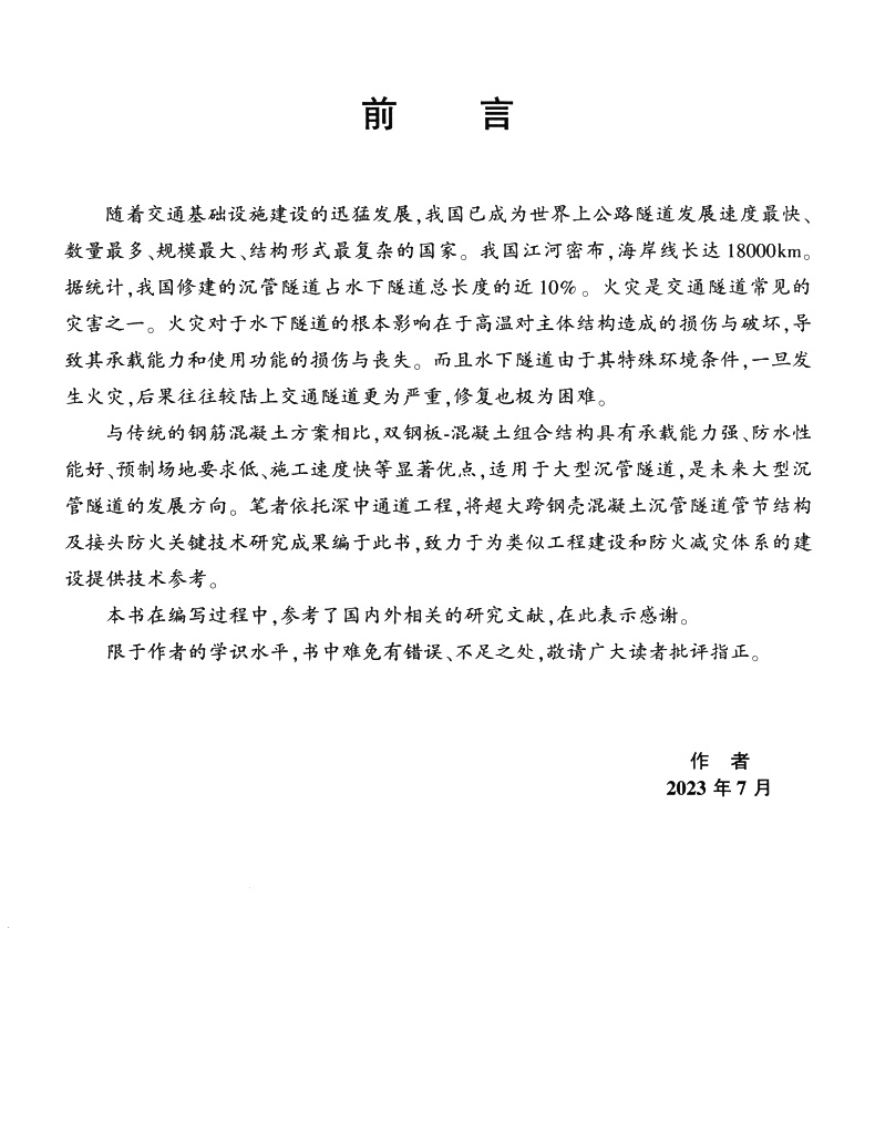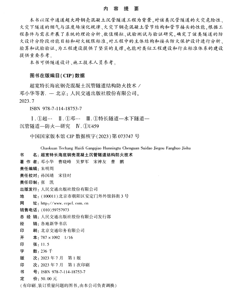 书名:超宽特长海底钢壳混凝土沉管隧道结构防火技术