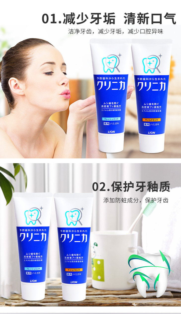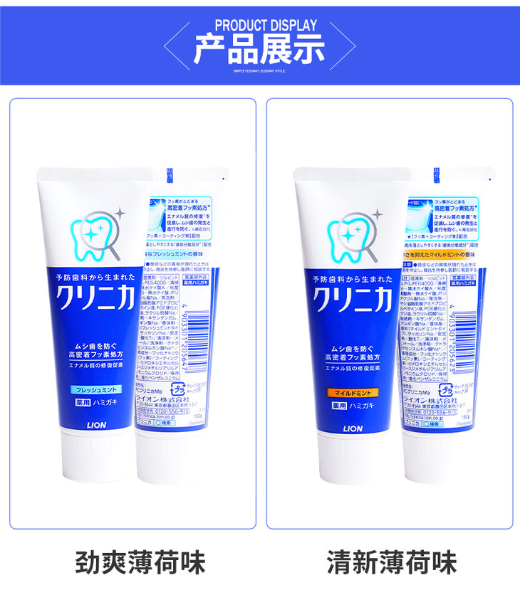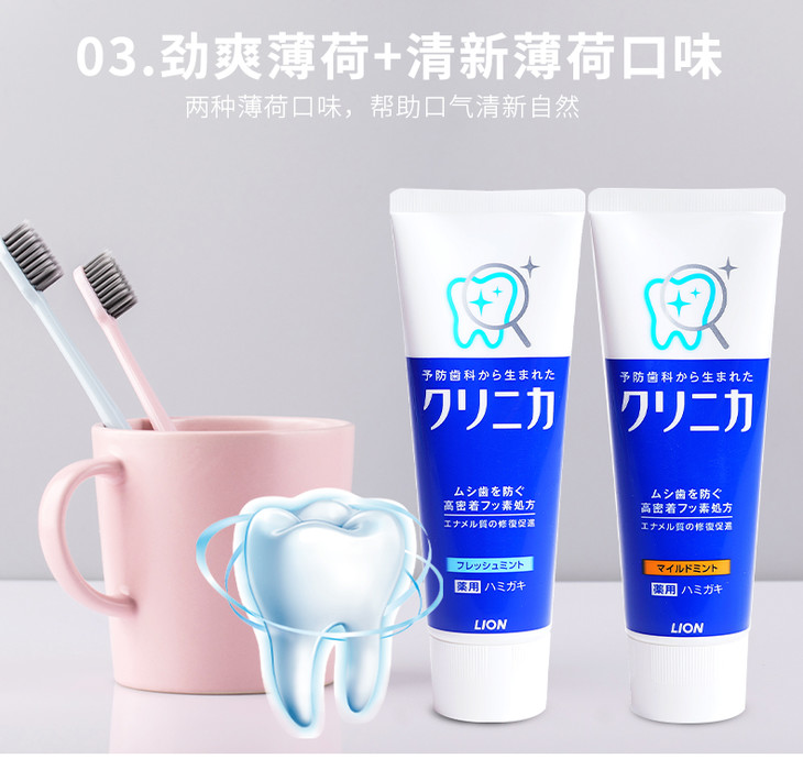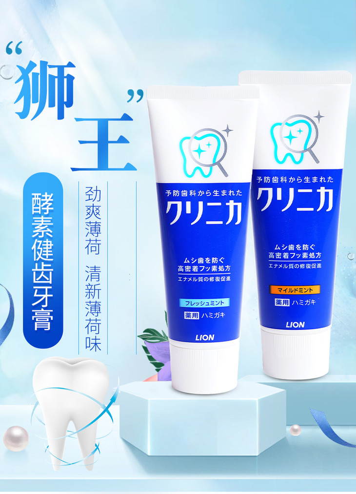 日本LION狮王酵素牙膏薄荷柑橘去垢健齿清新口气130g