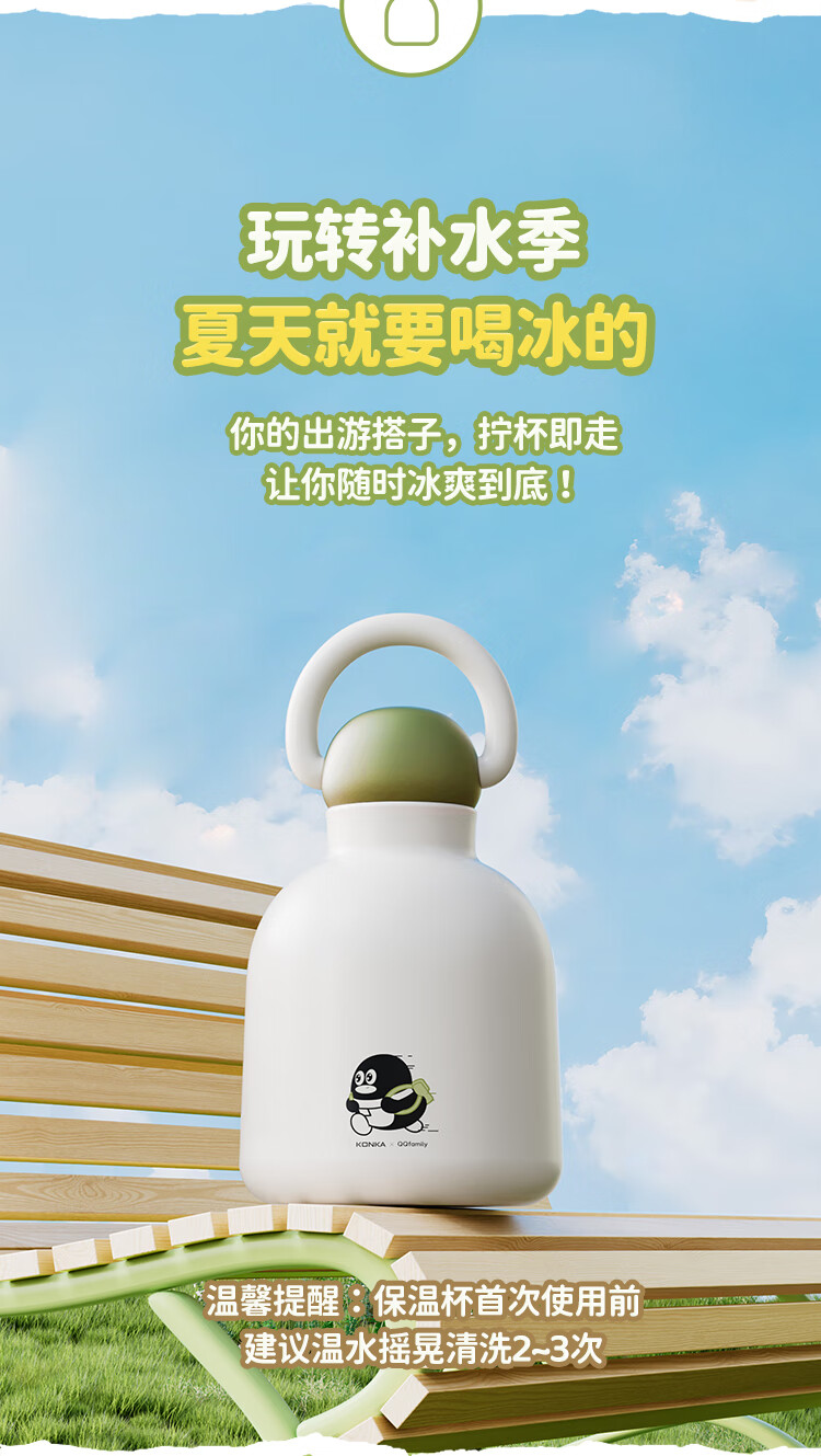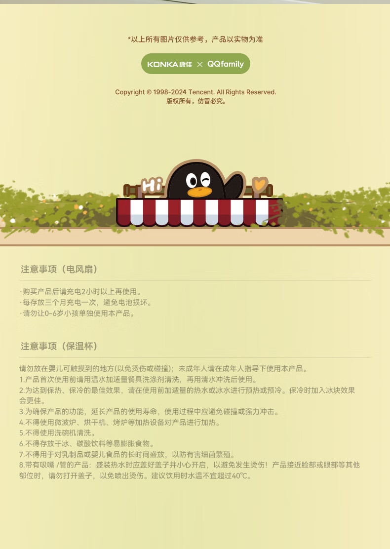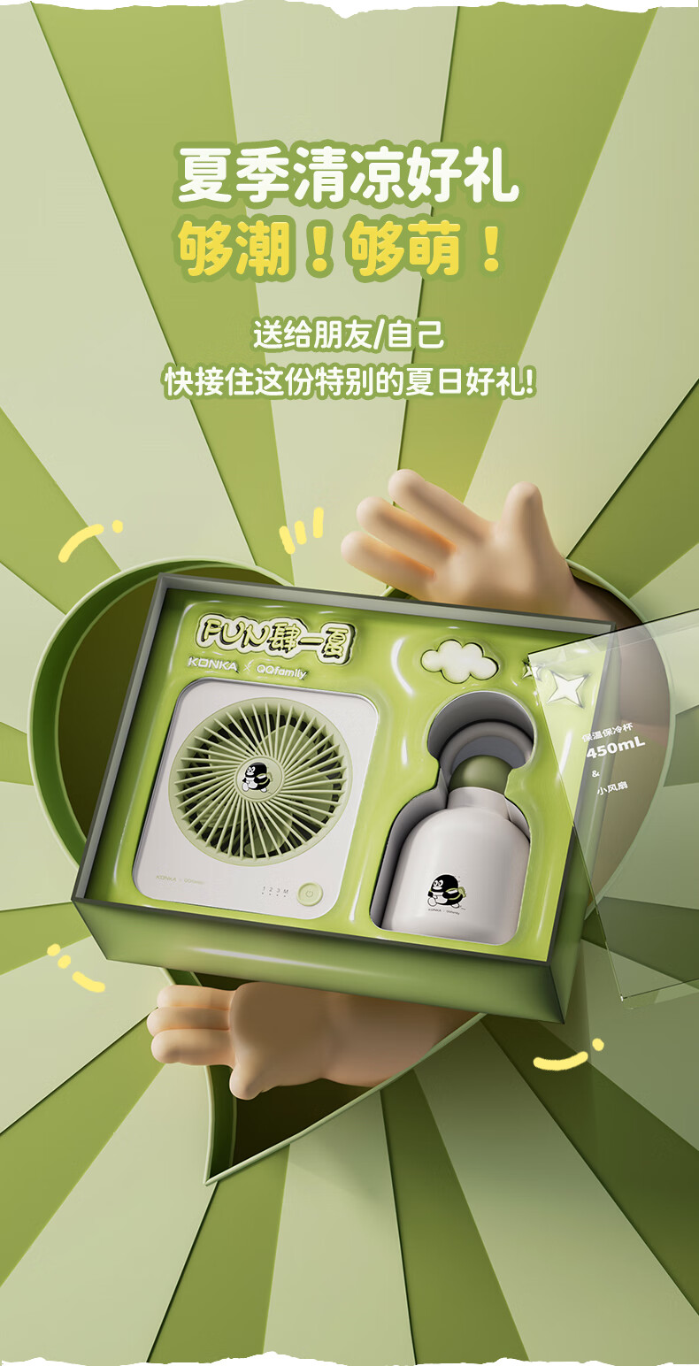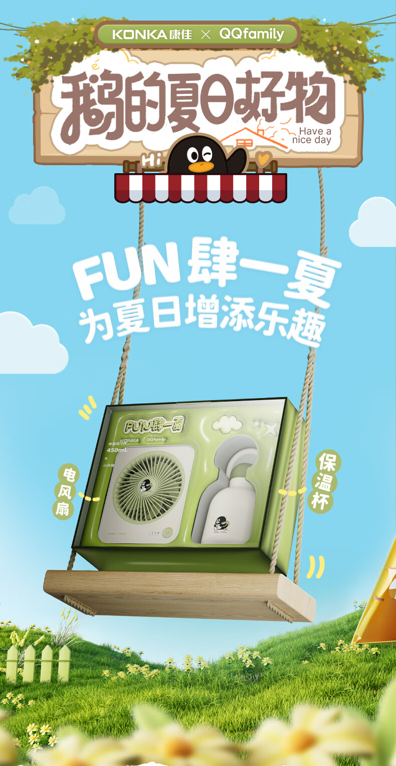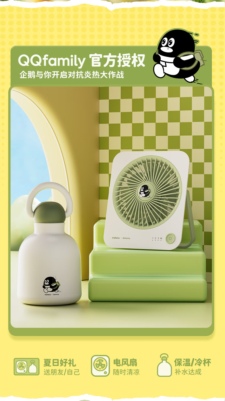 康佳(KONKA)QQfamily联名超薄电风扇卡片扇夹扇桌面扇304不锈钢随身保温杯夏日礼盒KFB-0202T-QQ