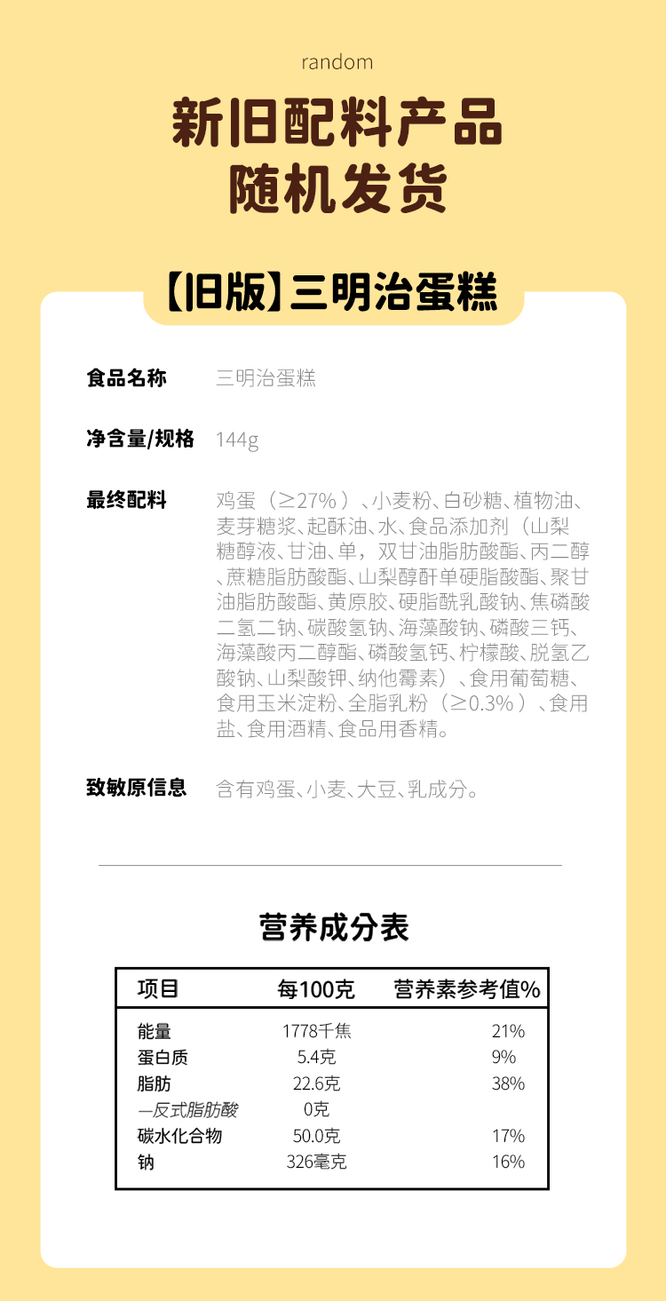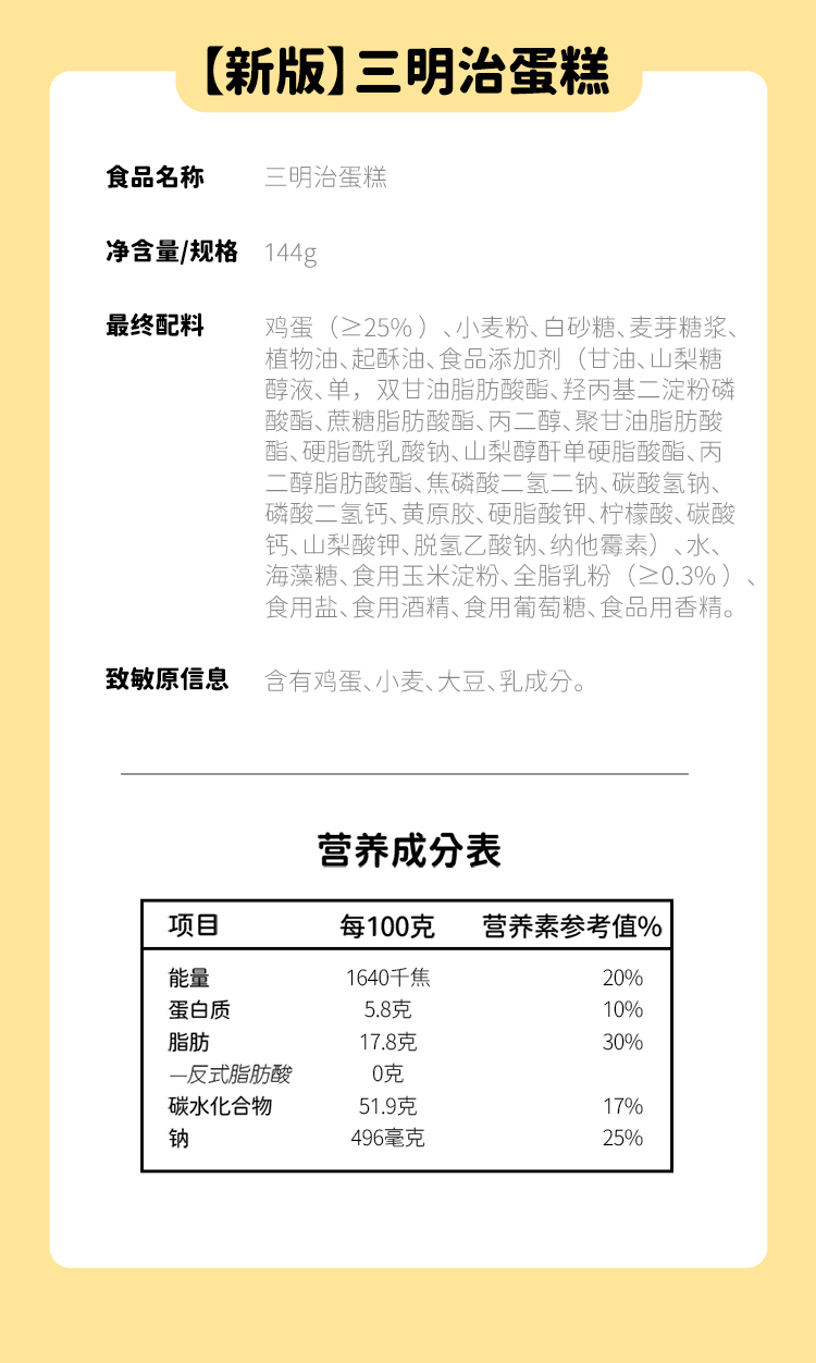 【69元任选10件】三明治蛋糕(奶香味)144g