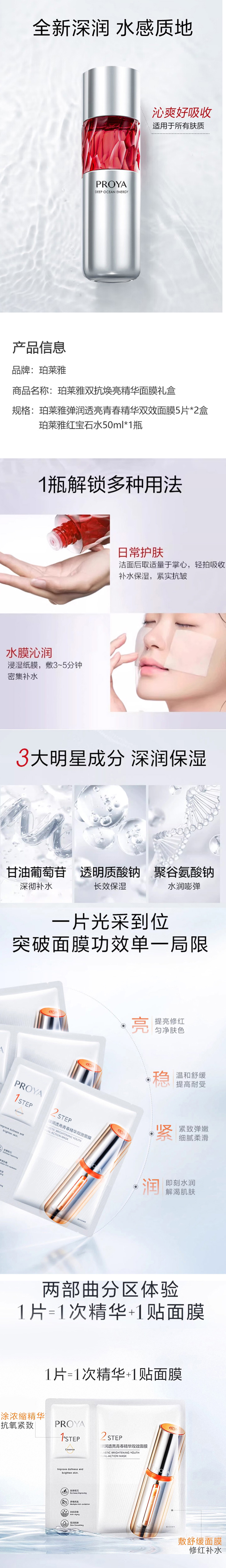 珀莱雅弹润透亮青春精华双效面膜5片*2盒+珀莱雅赋能鲜颜淡纹紧致活肤水2.0版50ml*1瓶