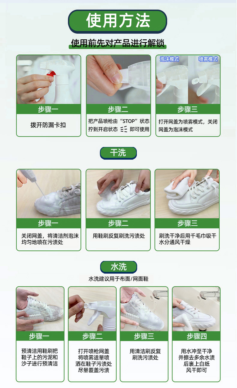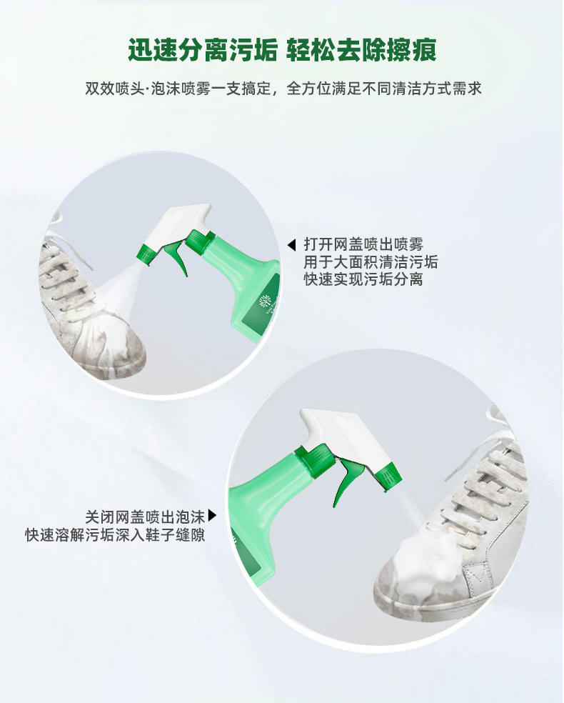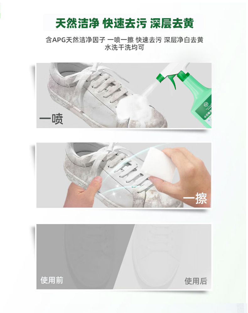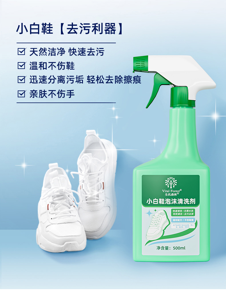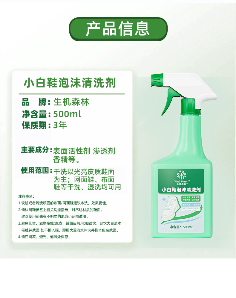 生机森林小白鞋清洁剂去黄去污增白免水洗运动鞋球鞋休闲鞋清洗剂500ml*3瓶+赠ins风高质量鞋刷*1支