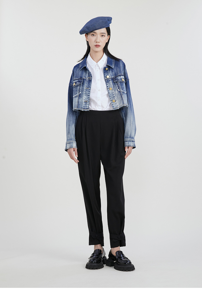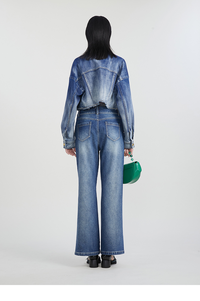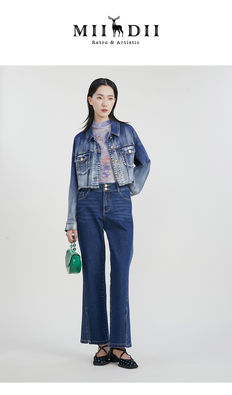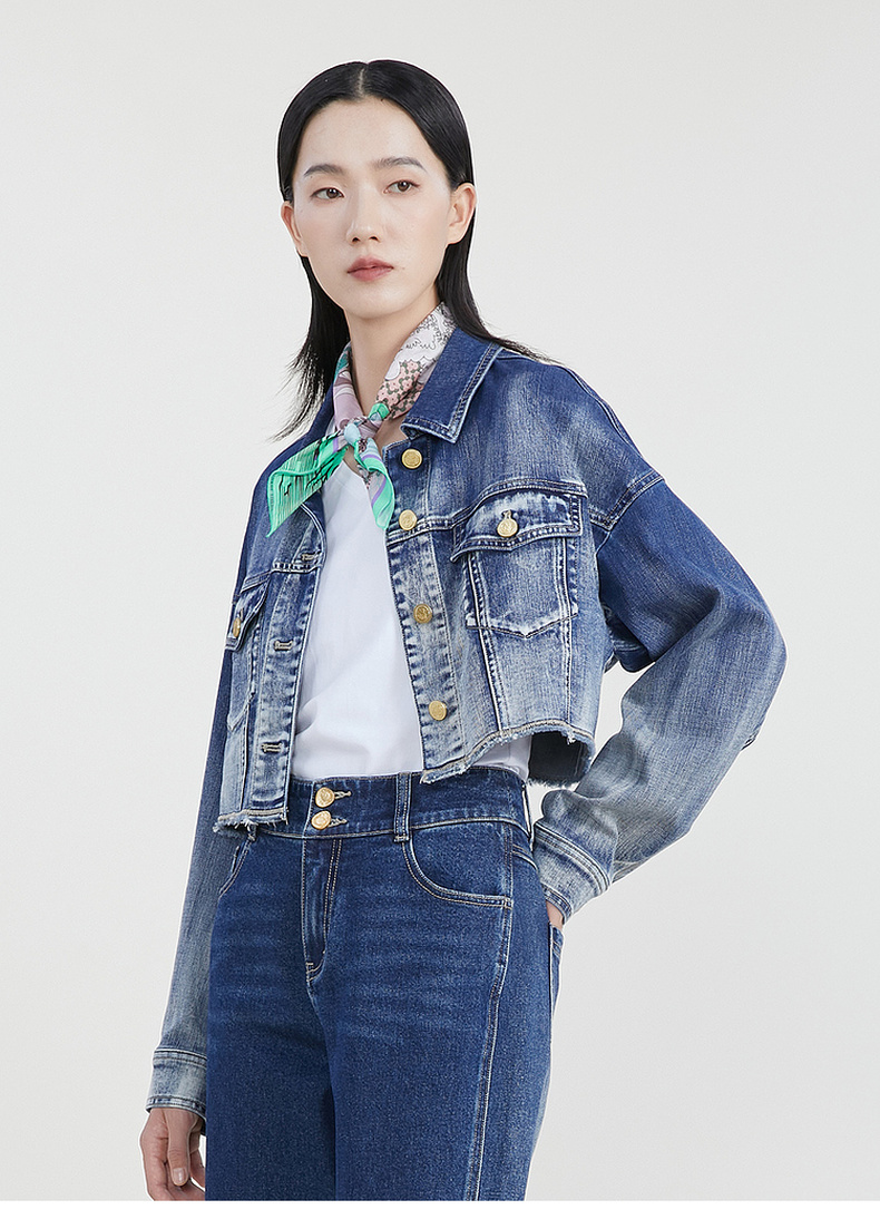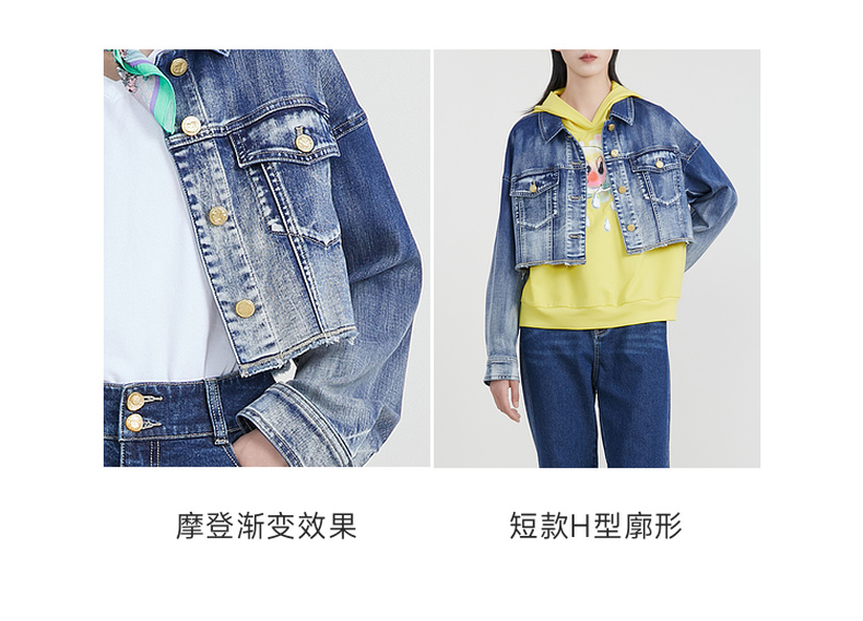 谜底短款牛仔外套女2023春新款复古渐变色洗水牛仔百搭231MW0022