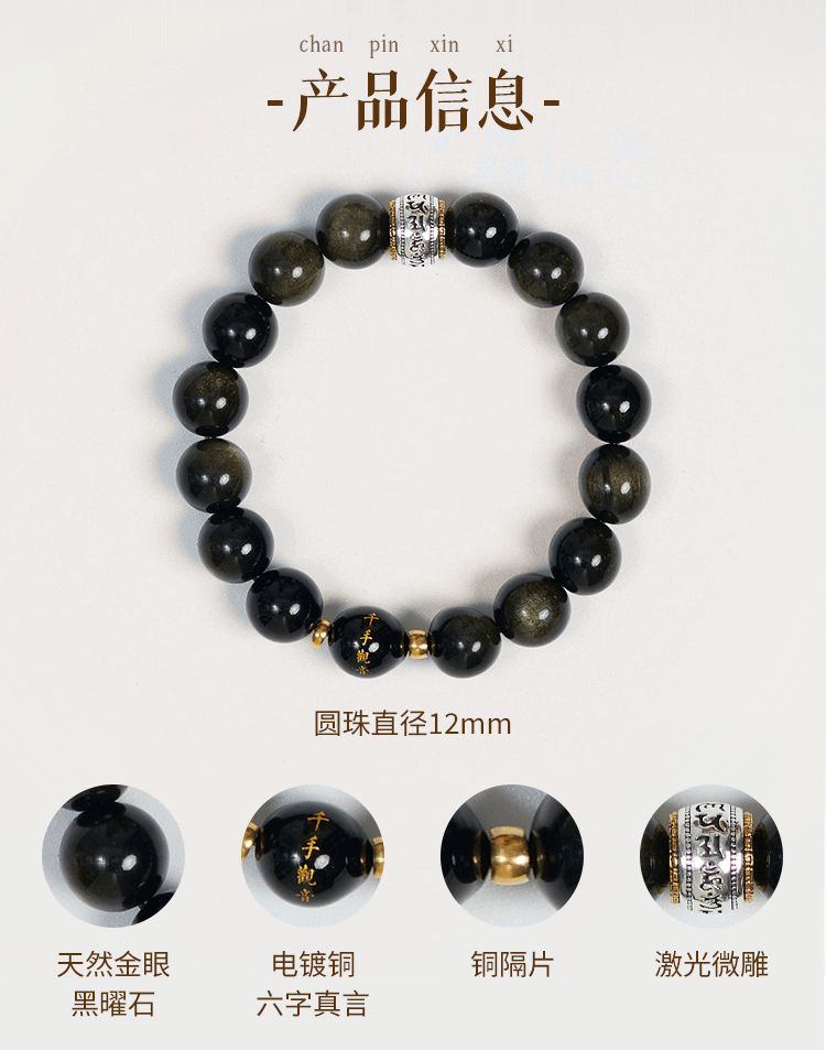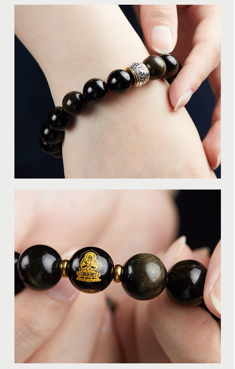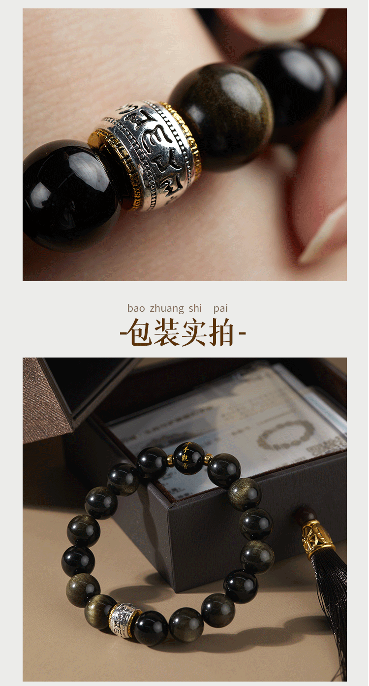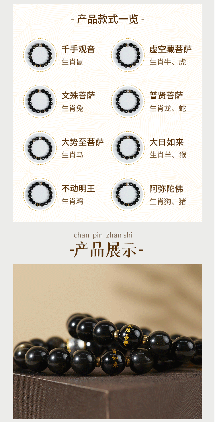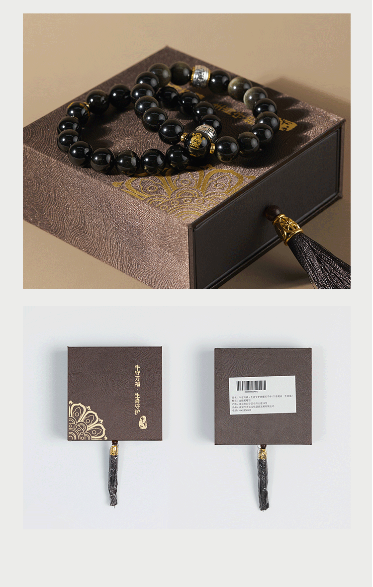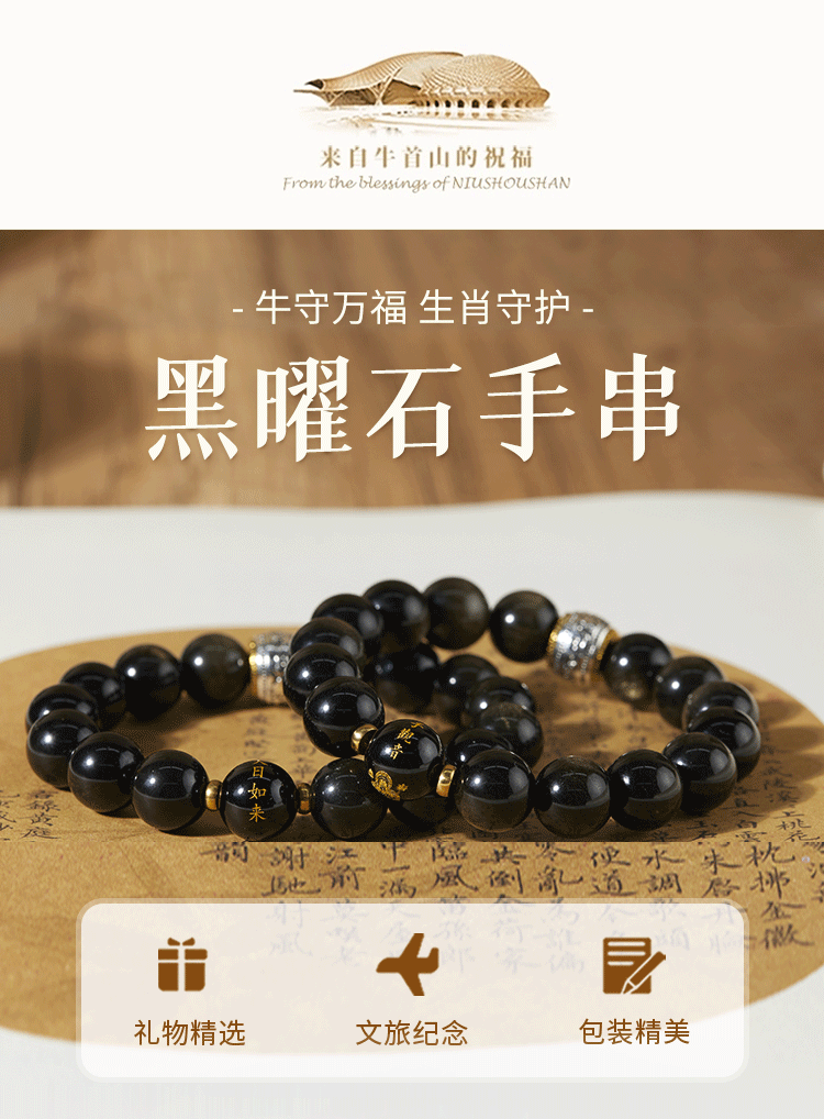 牛首山文创十二生肖黑曜石手串手链属蛇手串高档送礼物