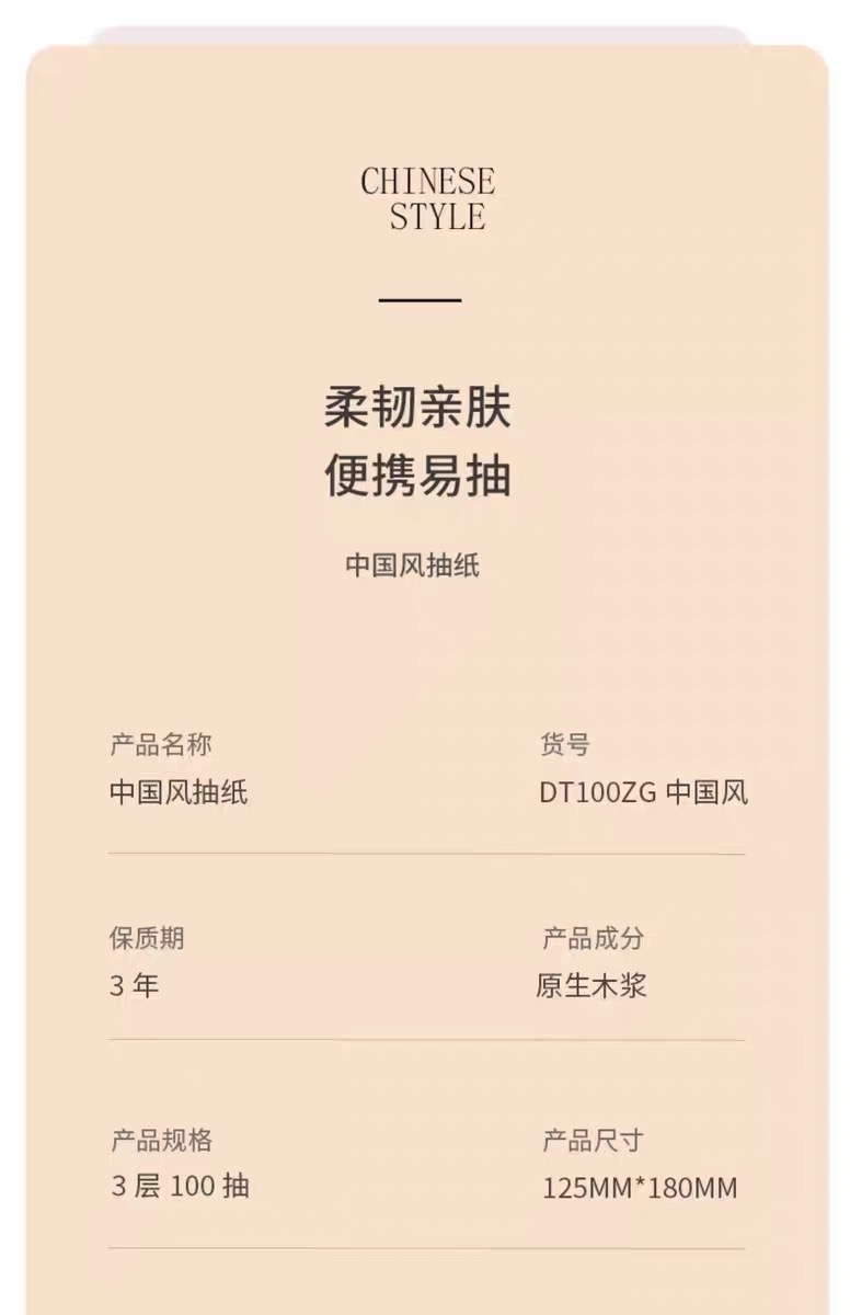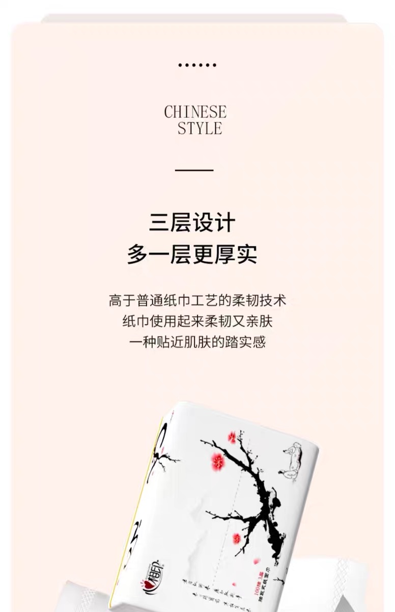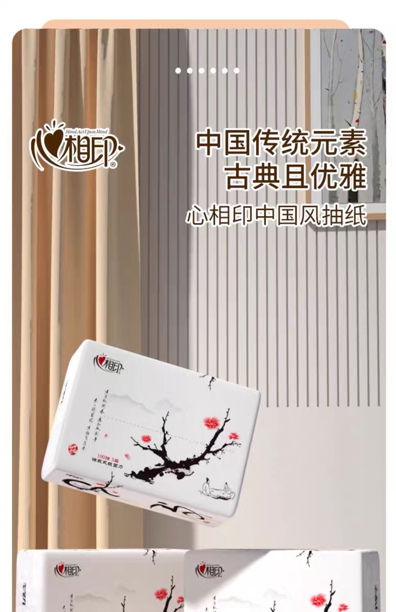 心相印 中国风系列商用抽纸3层100抽1包 6提×4包 整箱24包( S码)