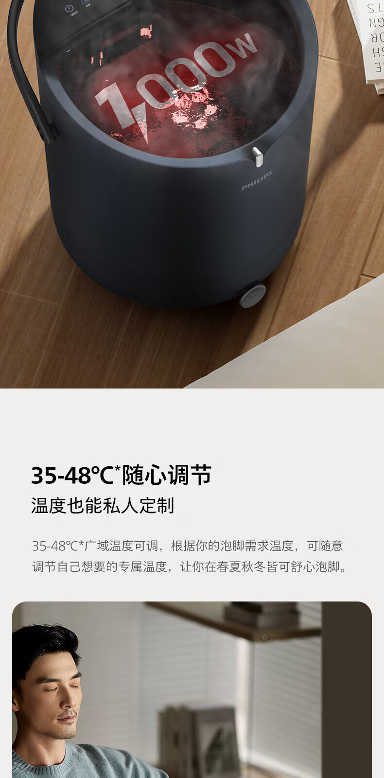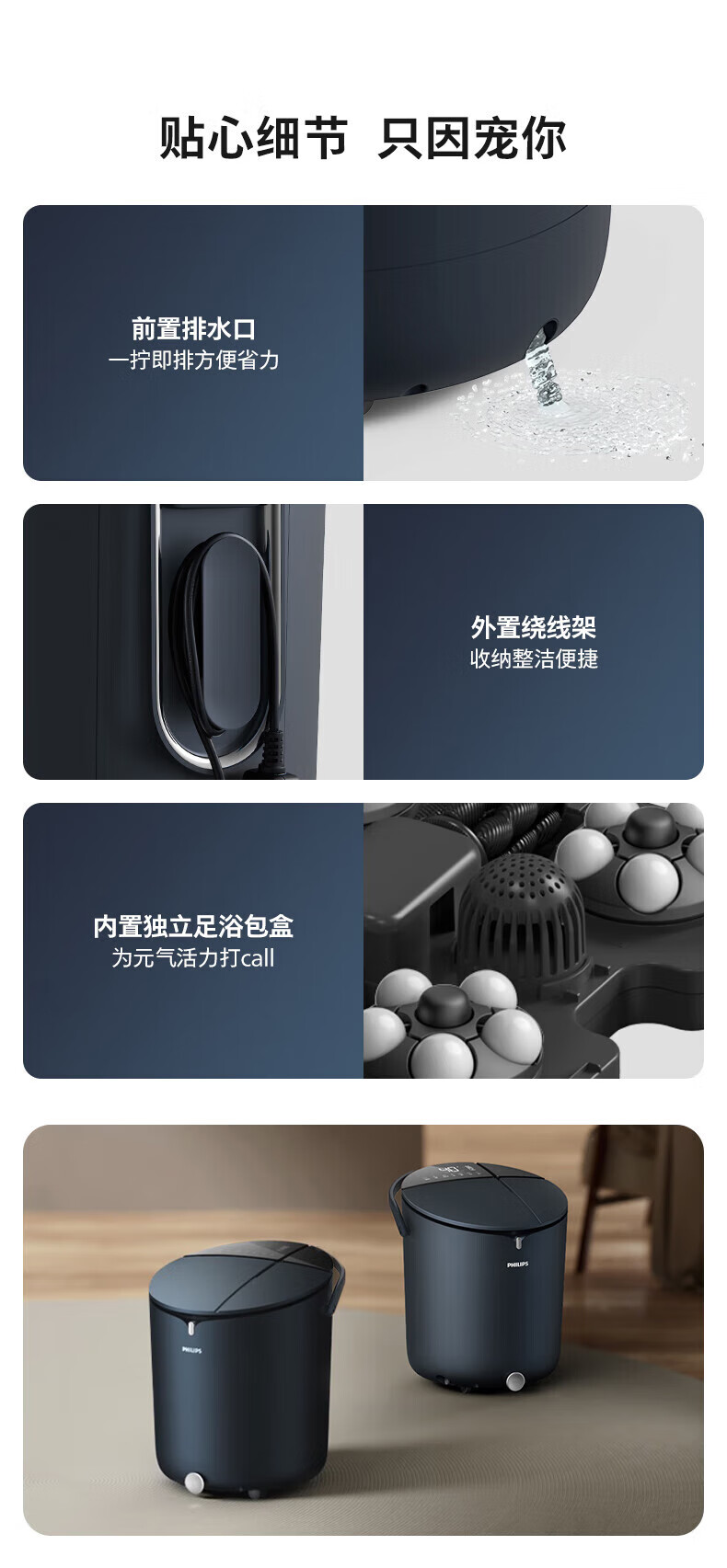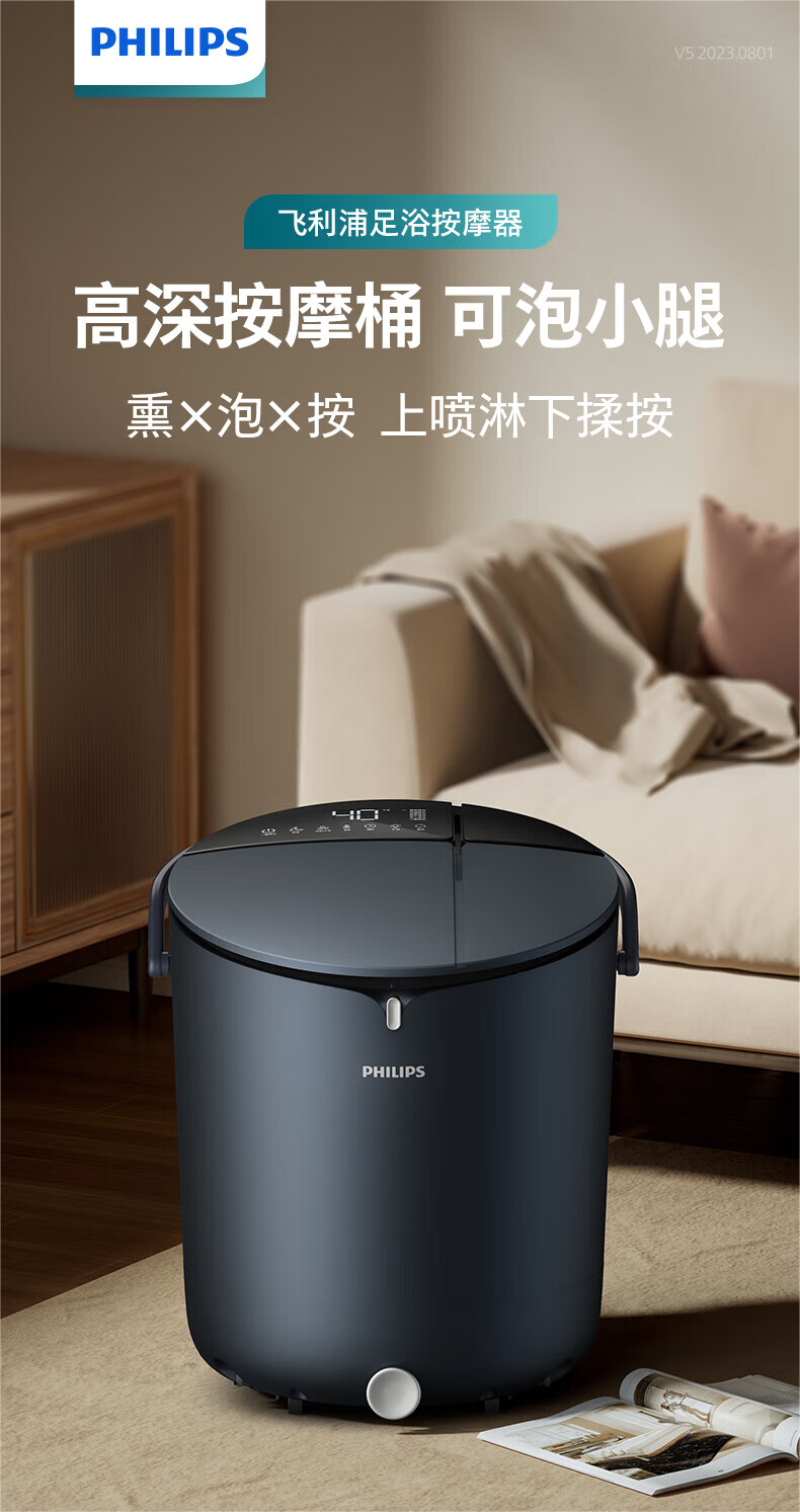【小家电】飞利浦泡脚桶加热全自动按摩洗脚泡脚盆足浴盆按摩家用电动足浴桶 PPM3302FHF