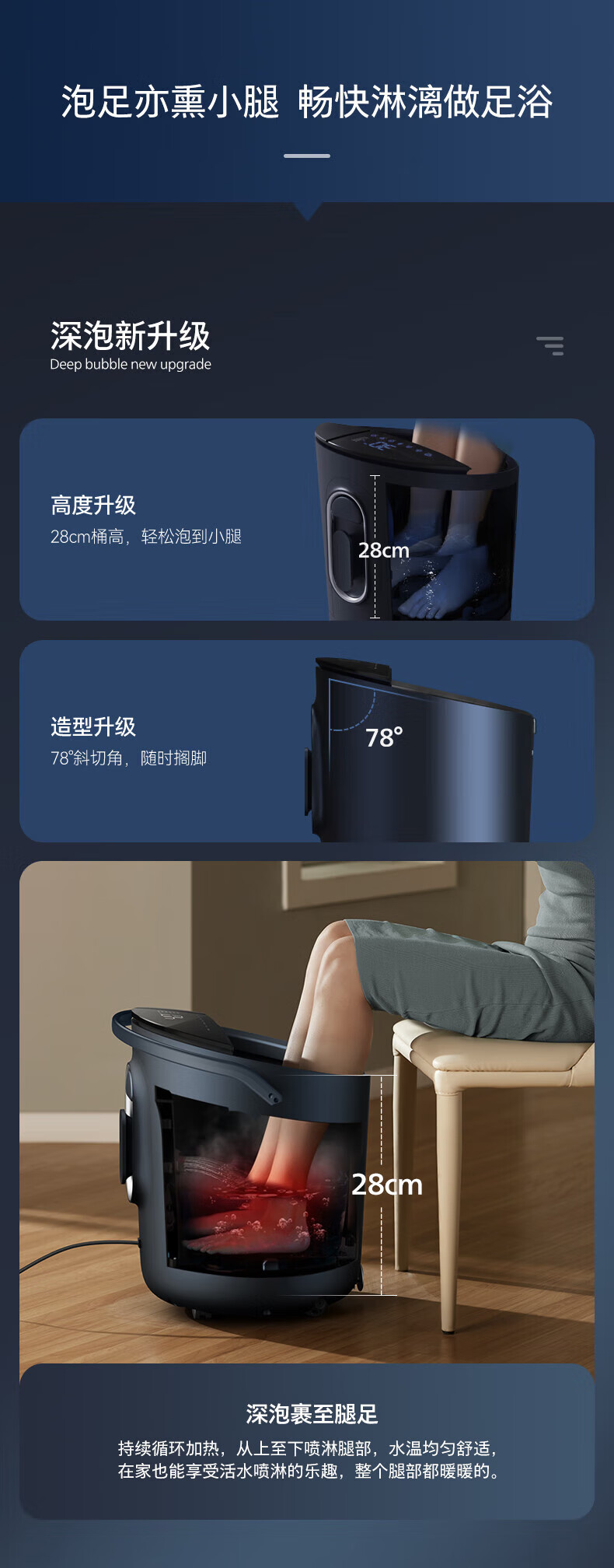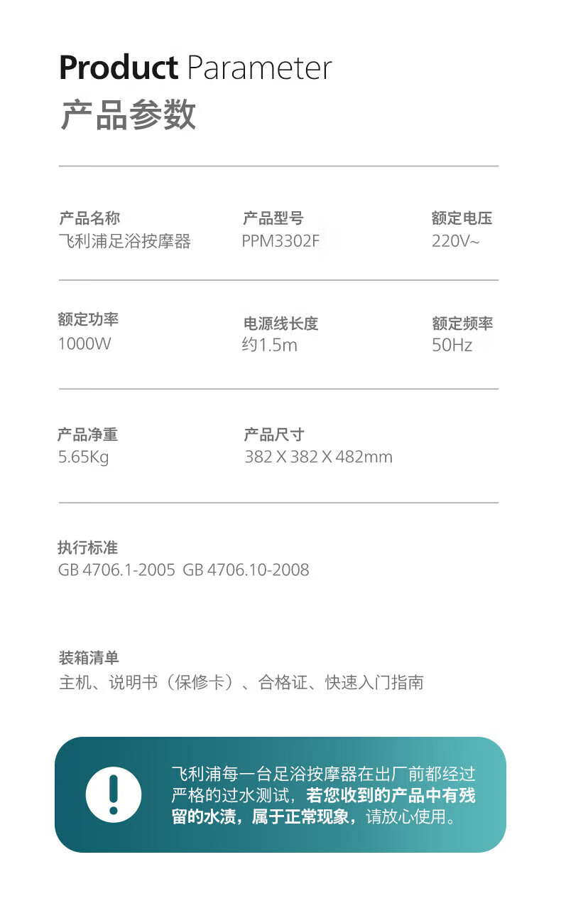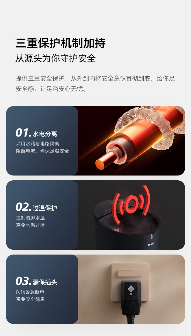 【小家电】飞利浦泡脚桶加热全自动按摩洗脚泡脚盆足浴盆按摩家用电动足浴桶 PPM3302FHF