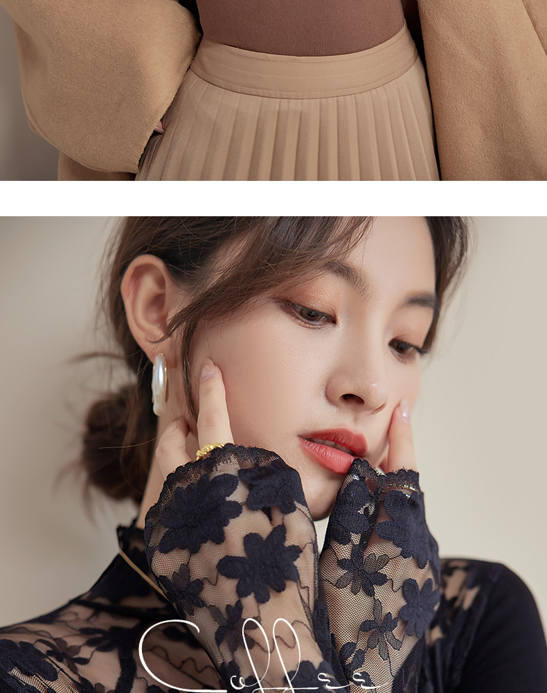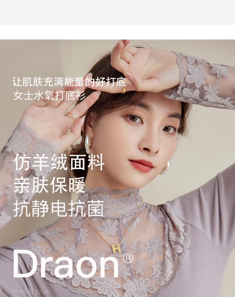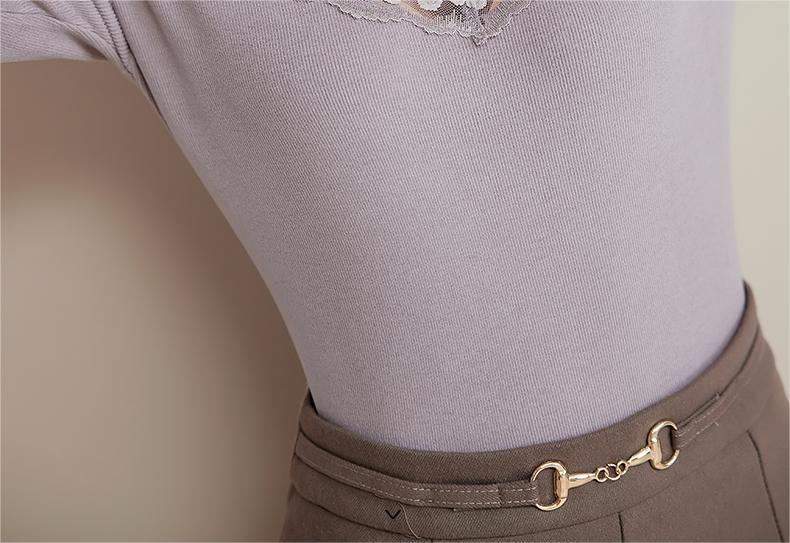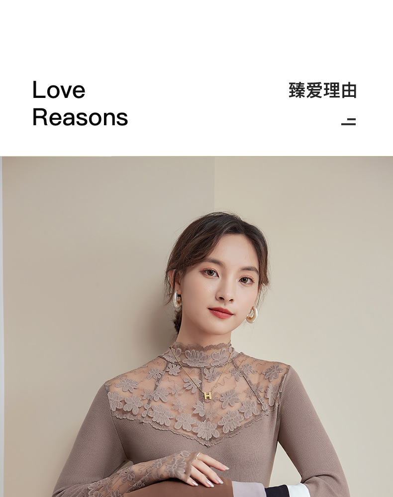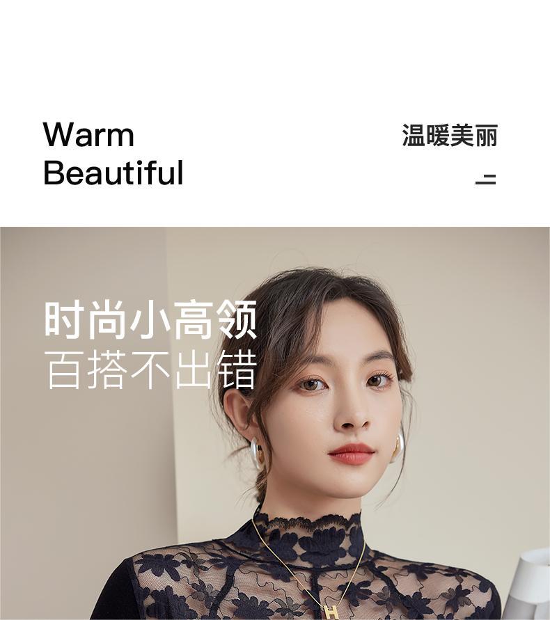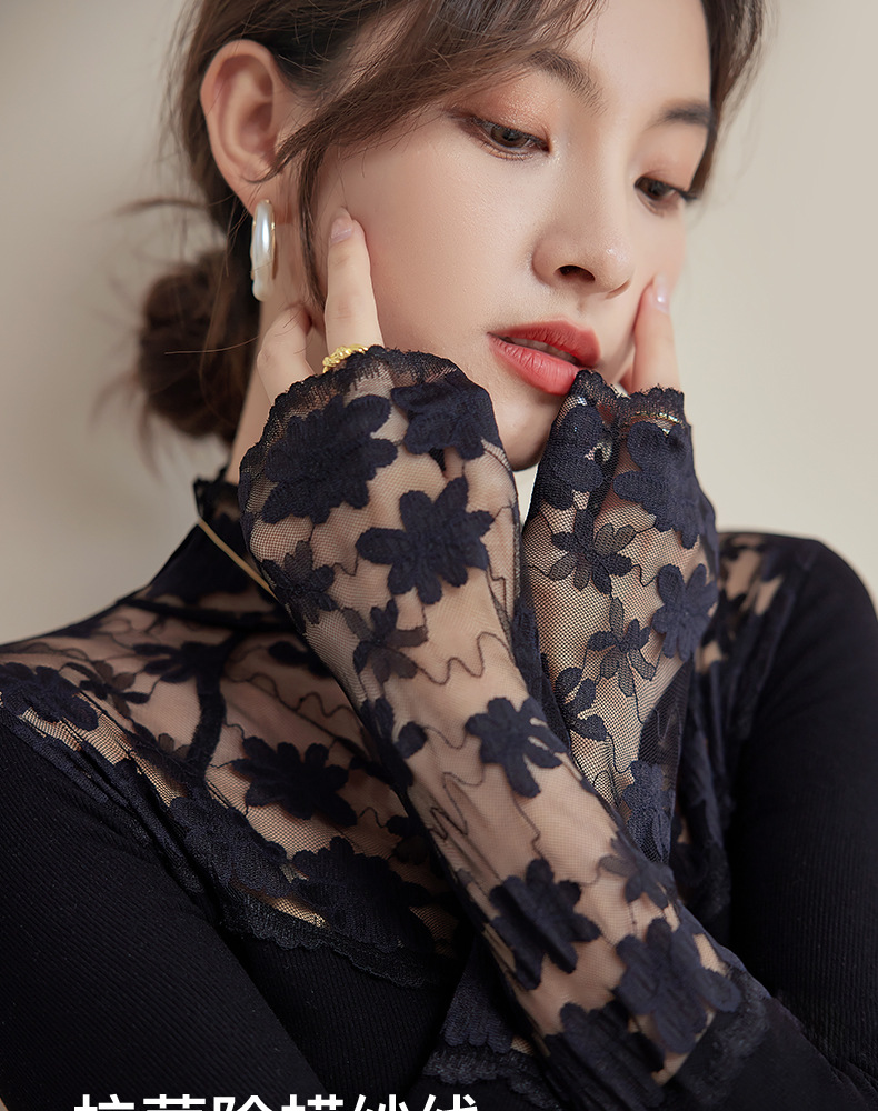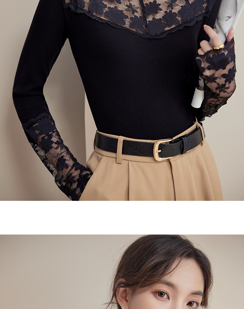2024新款加绒加厚蕾丝半高领打底衫女春秋内搭修身长袖上衣针织衫