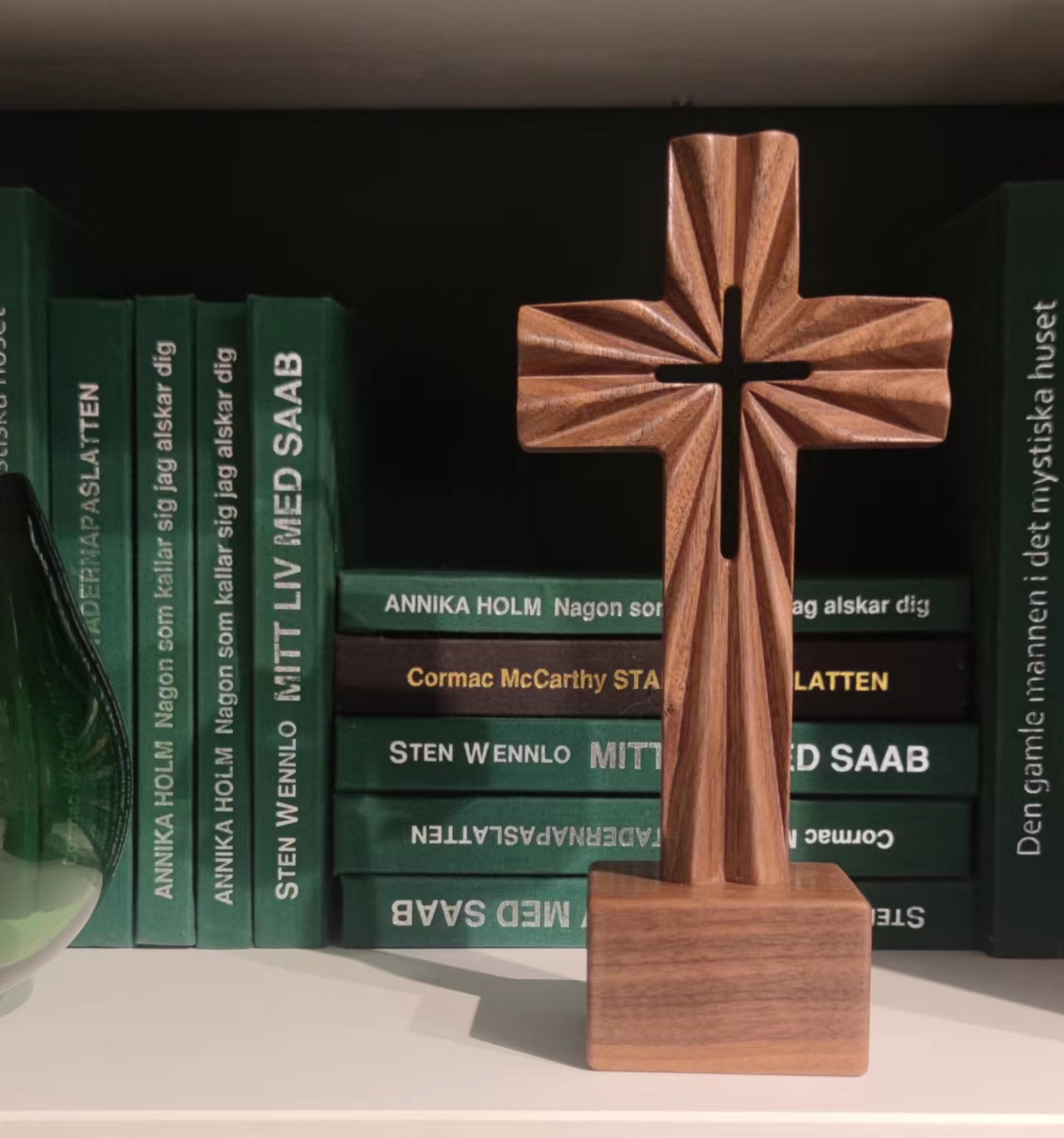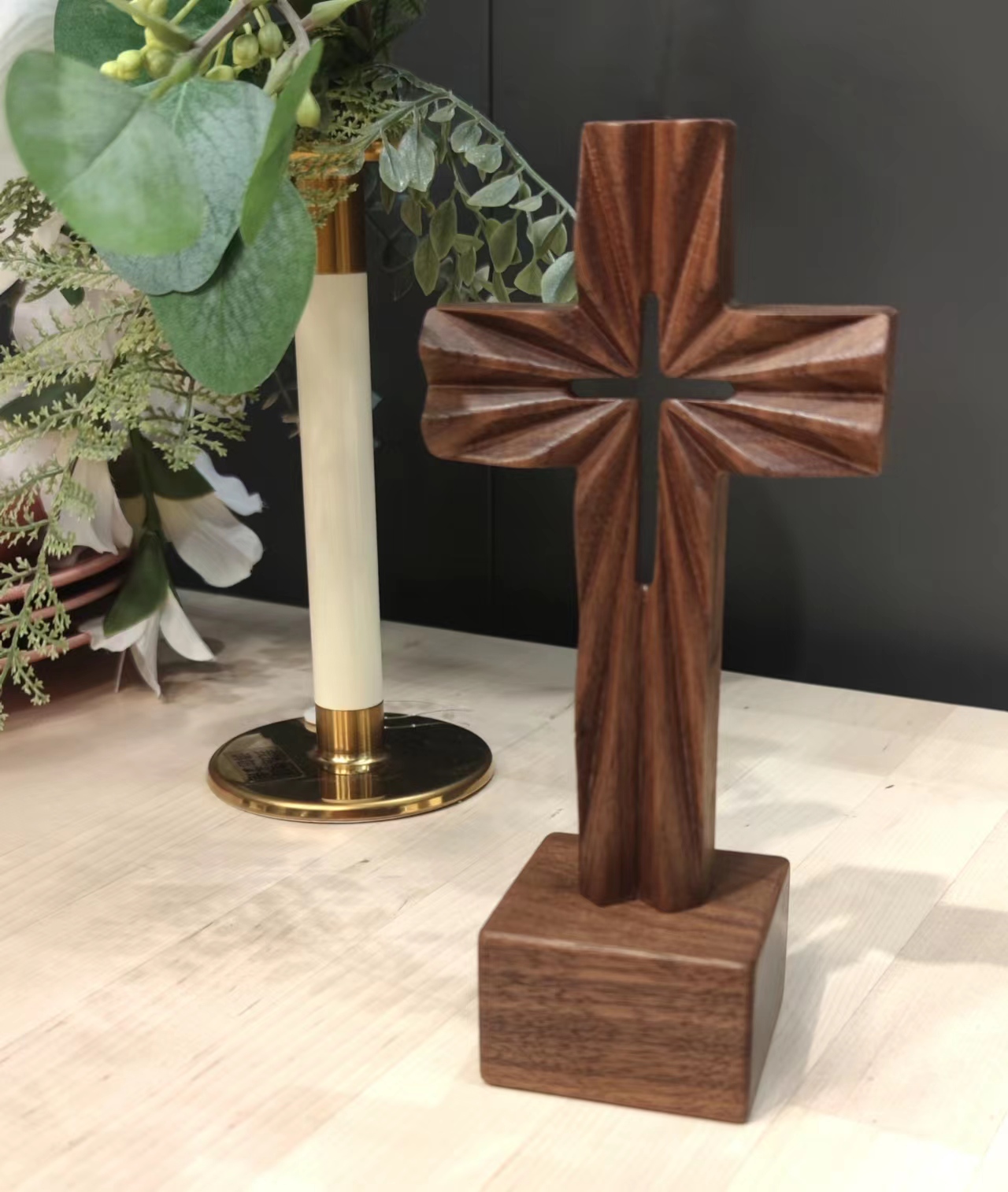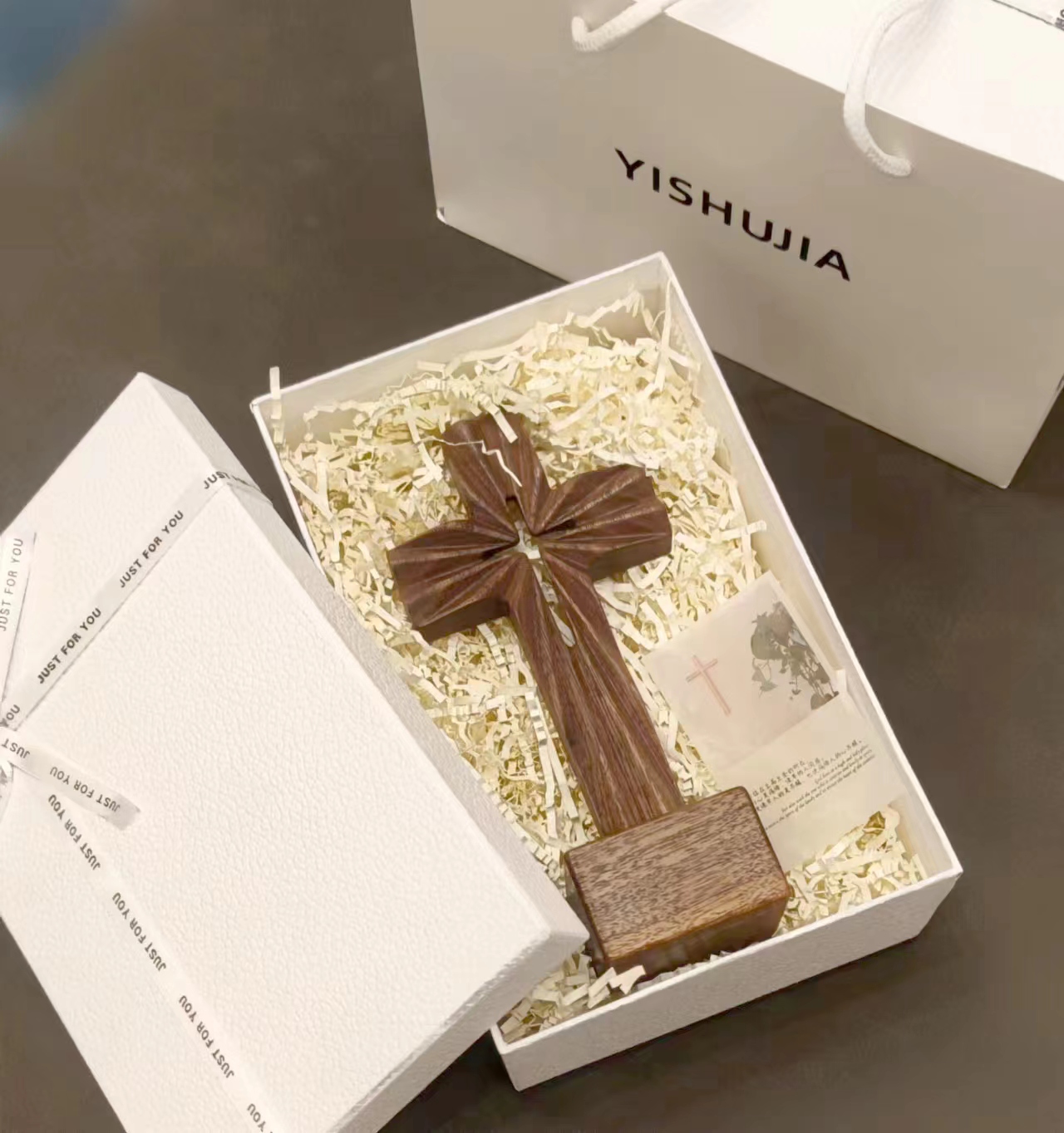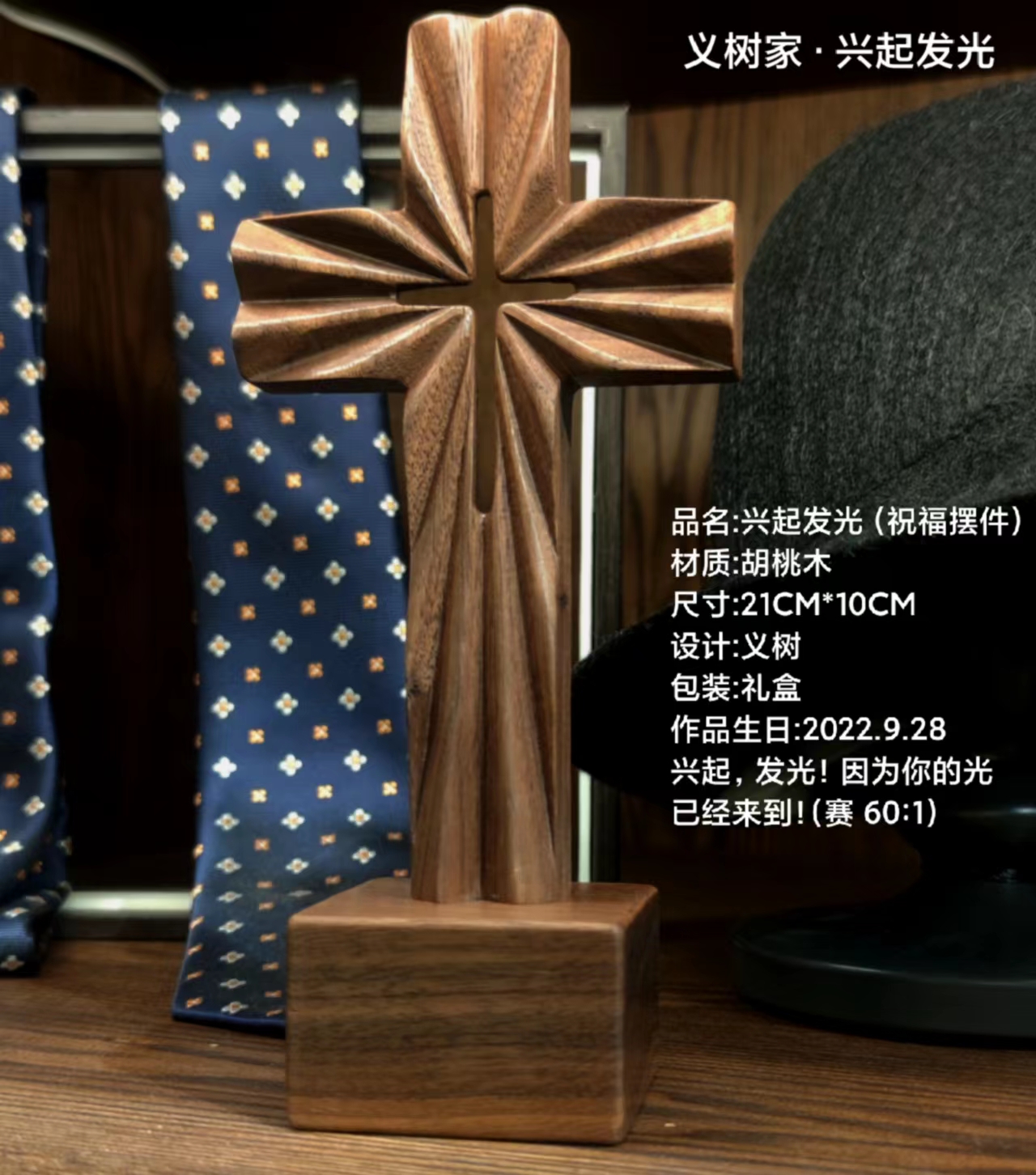 DF【兴起 发光】帐幕,窄门与十字光的抽象雕刻艺术 黑胡桃木雕刻祝福摆件 · 22cm×13cm ·礼盒包装
