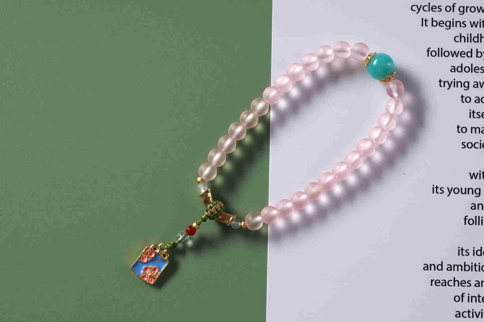 | 配件 | 沙金小花托,天河石,铜珠,白玛瑙,沙金锤纹弯管,平结环,红玛瑙,白水晶,沙金上上签吊牌 |