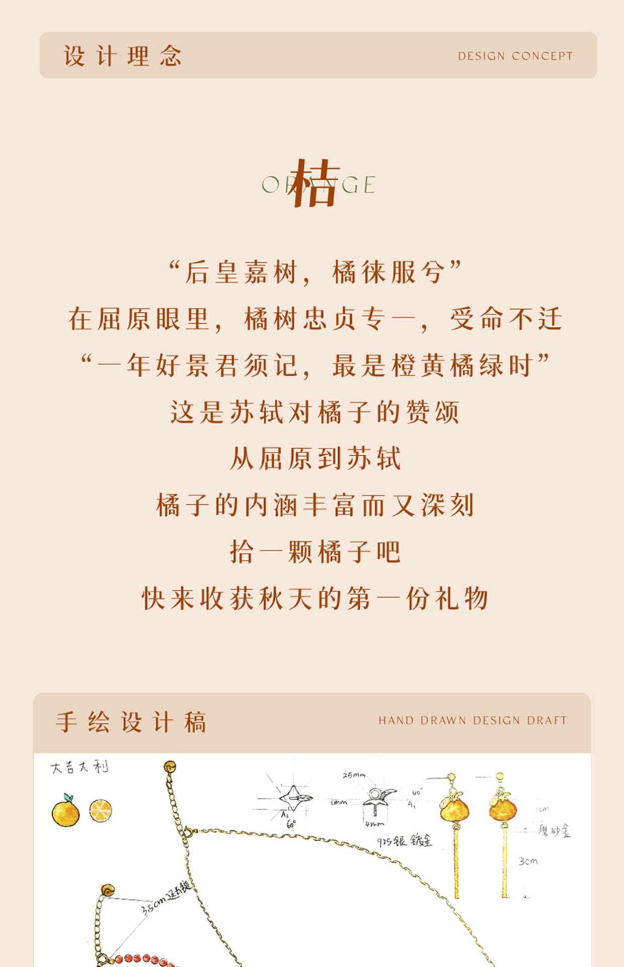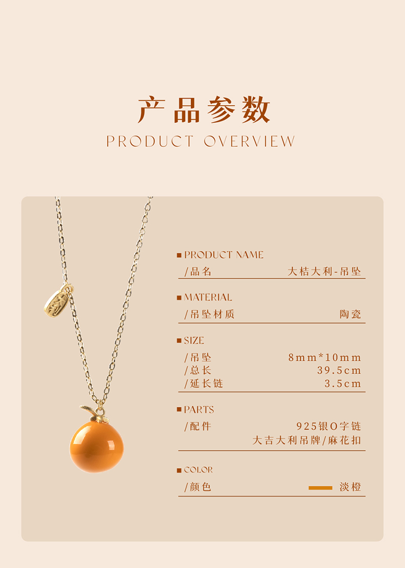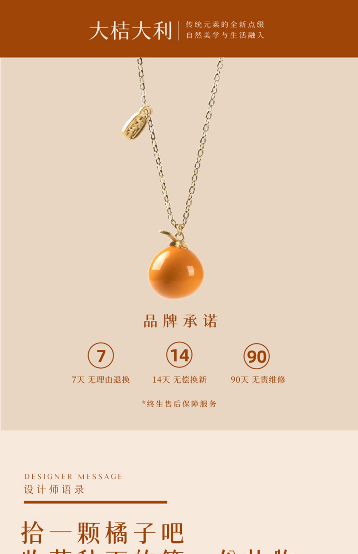 凡华造物大桔大利新中式项链女925银小众陶瓷设计高级感锁骨链大桔大利吊坠
