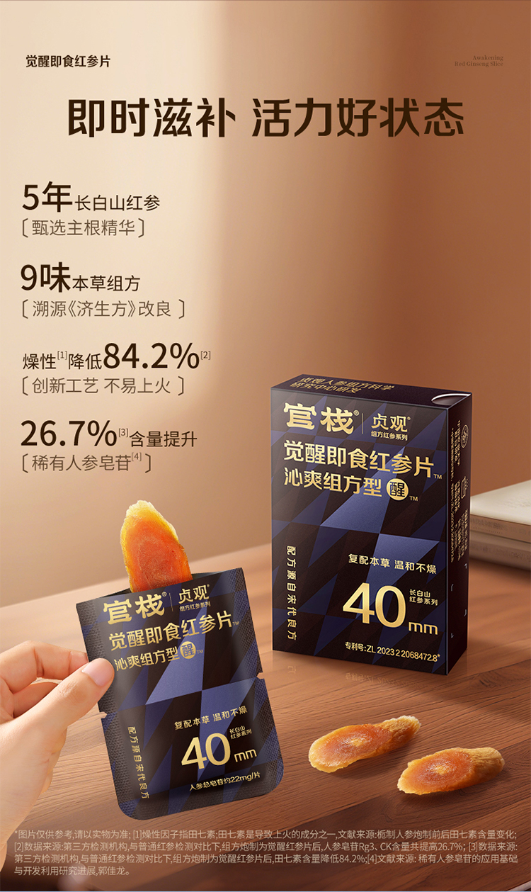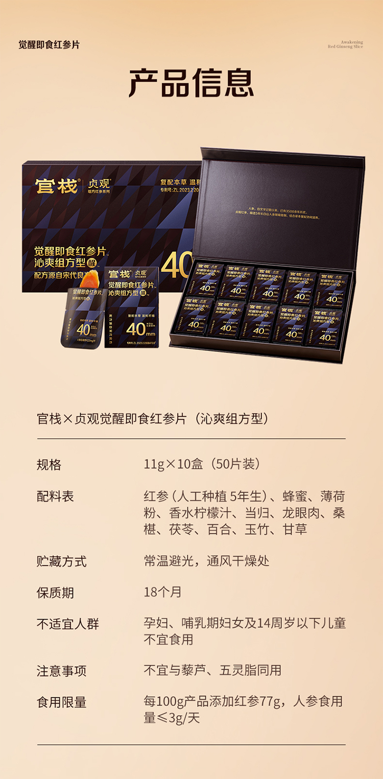 官栈x贞观觉醒即食红参片沁爽组方型40mm-礼盒plus11gx10【首发】