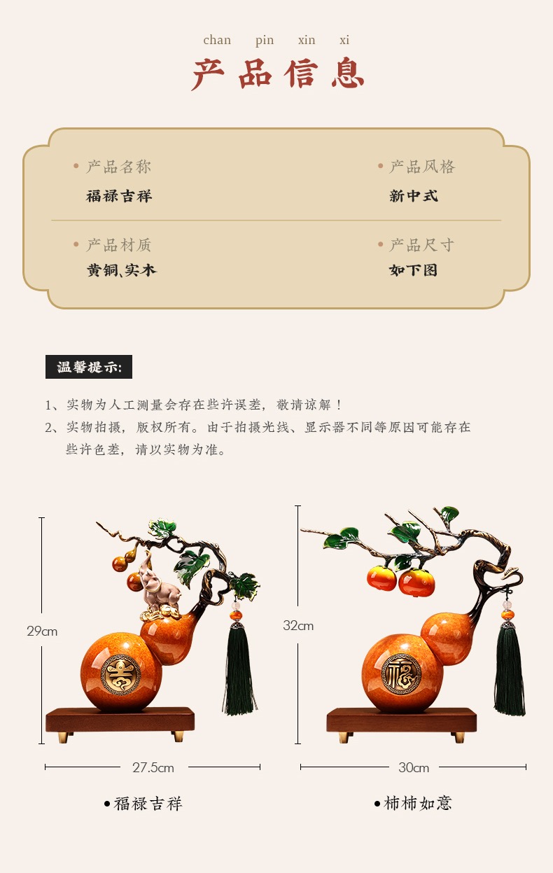 E-QK-BJ1340 太平有象彩铜葫芦摆件 (275*130*295)