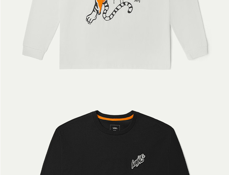 VANS老虎印花男女情侣长袖T恤VN0002BRWHT/VN0002BRBLK