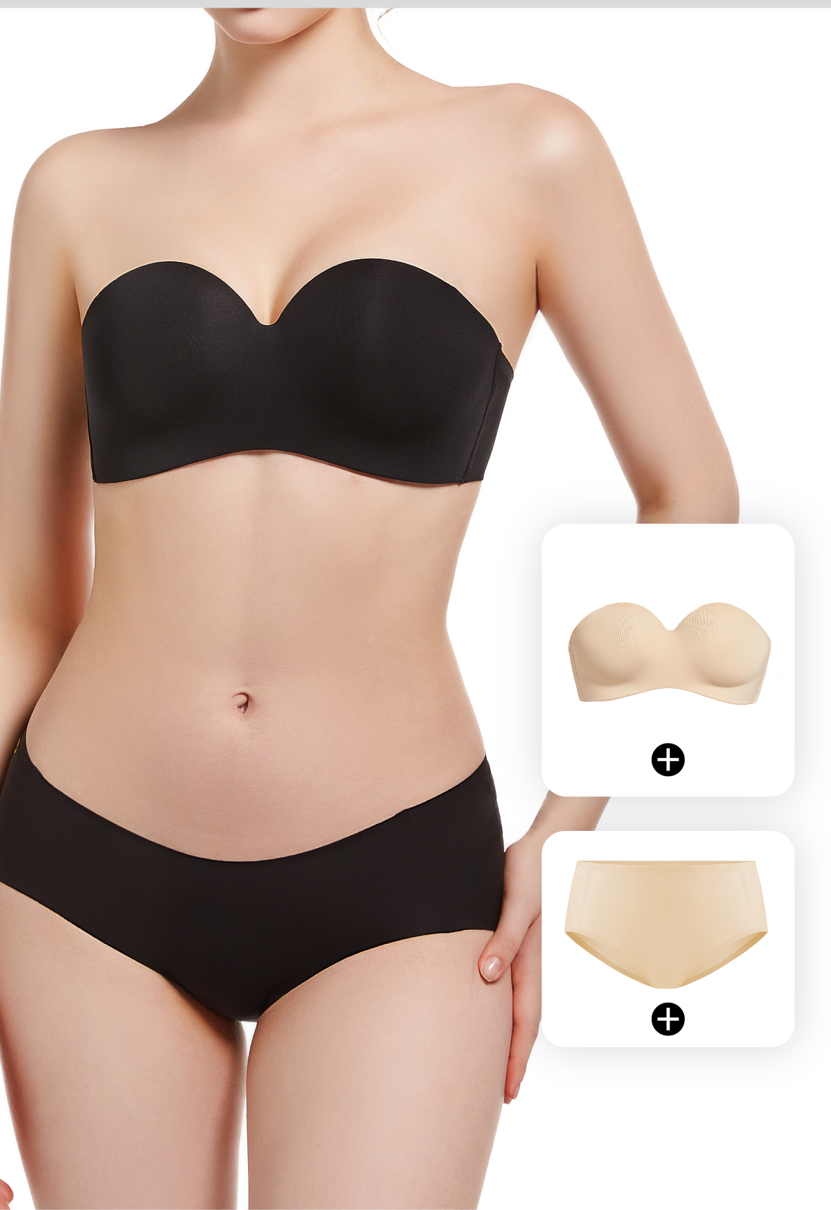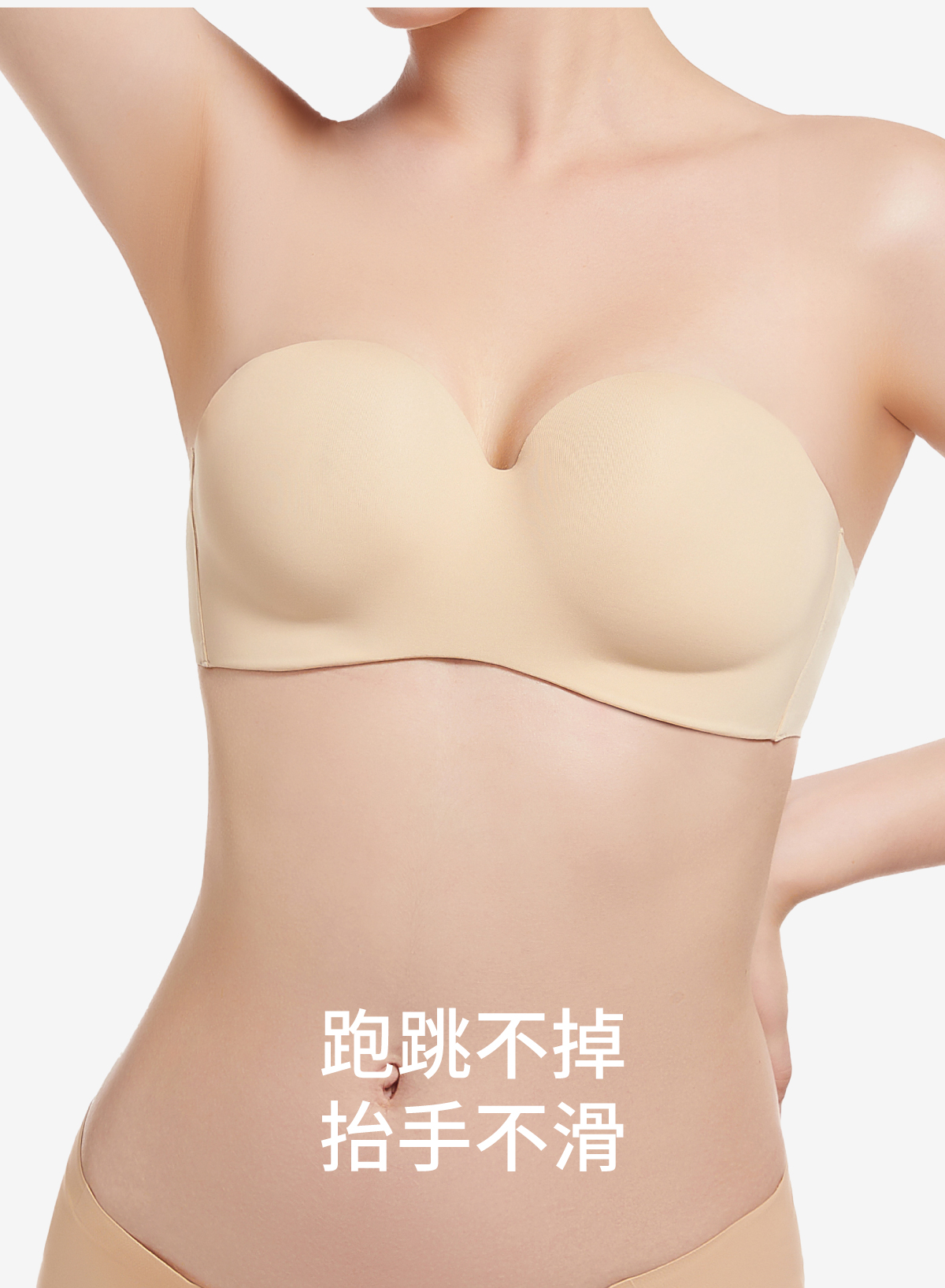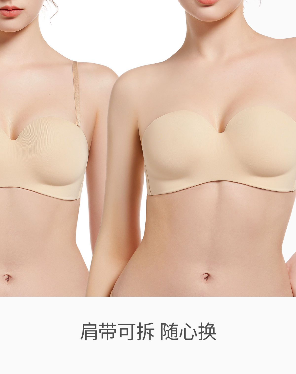 莫妮MONI可拆无肩带内衣女防滑聚拢隐形无痕抹胸薄款小胸显大文胸